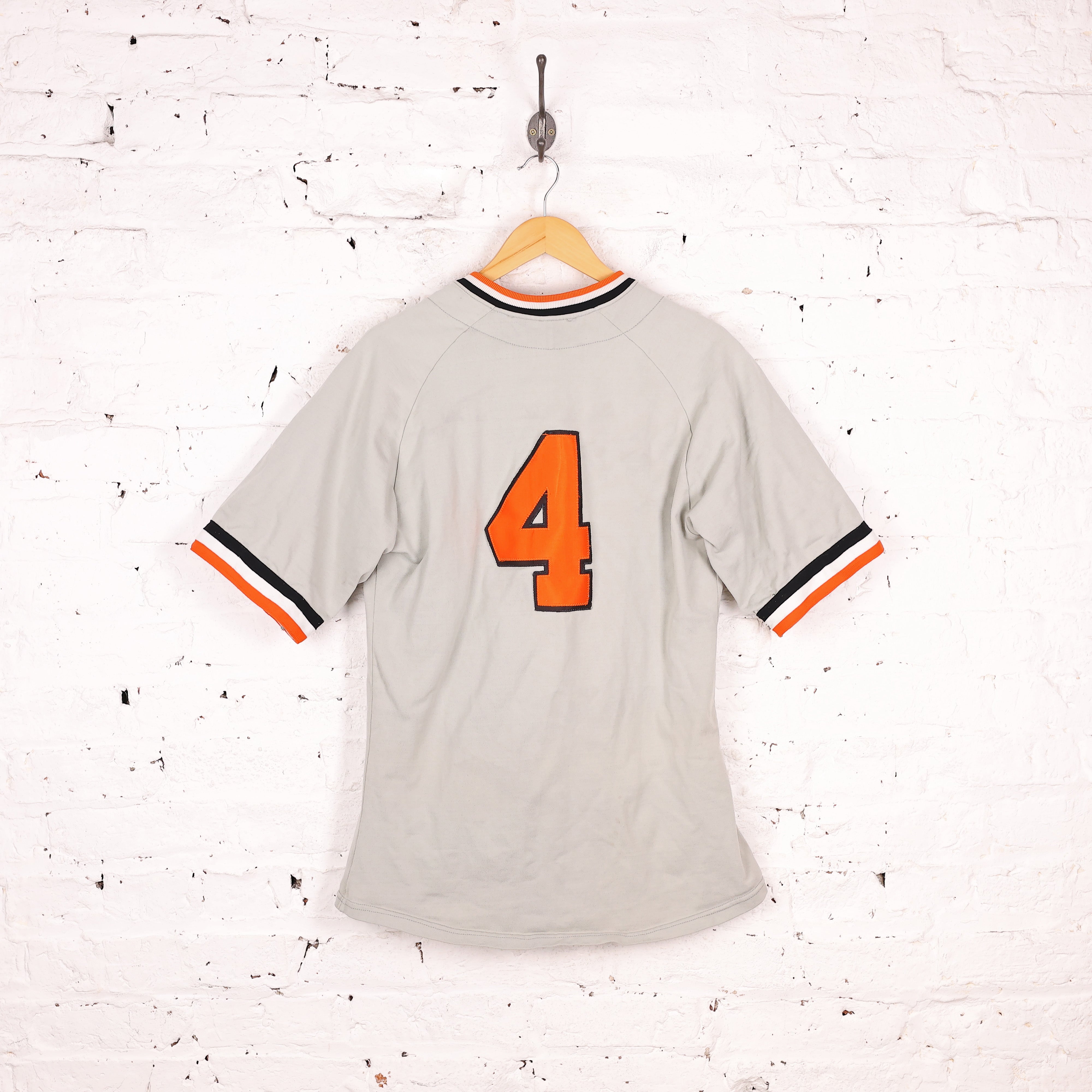 Good condition. NB baseball jersey made by Milwaukee Sporting Goods with no.4 on the front and back.
