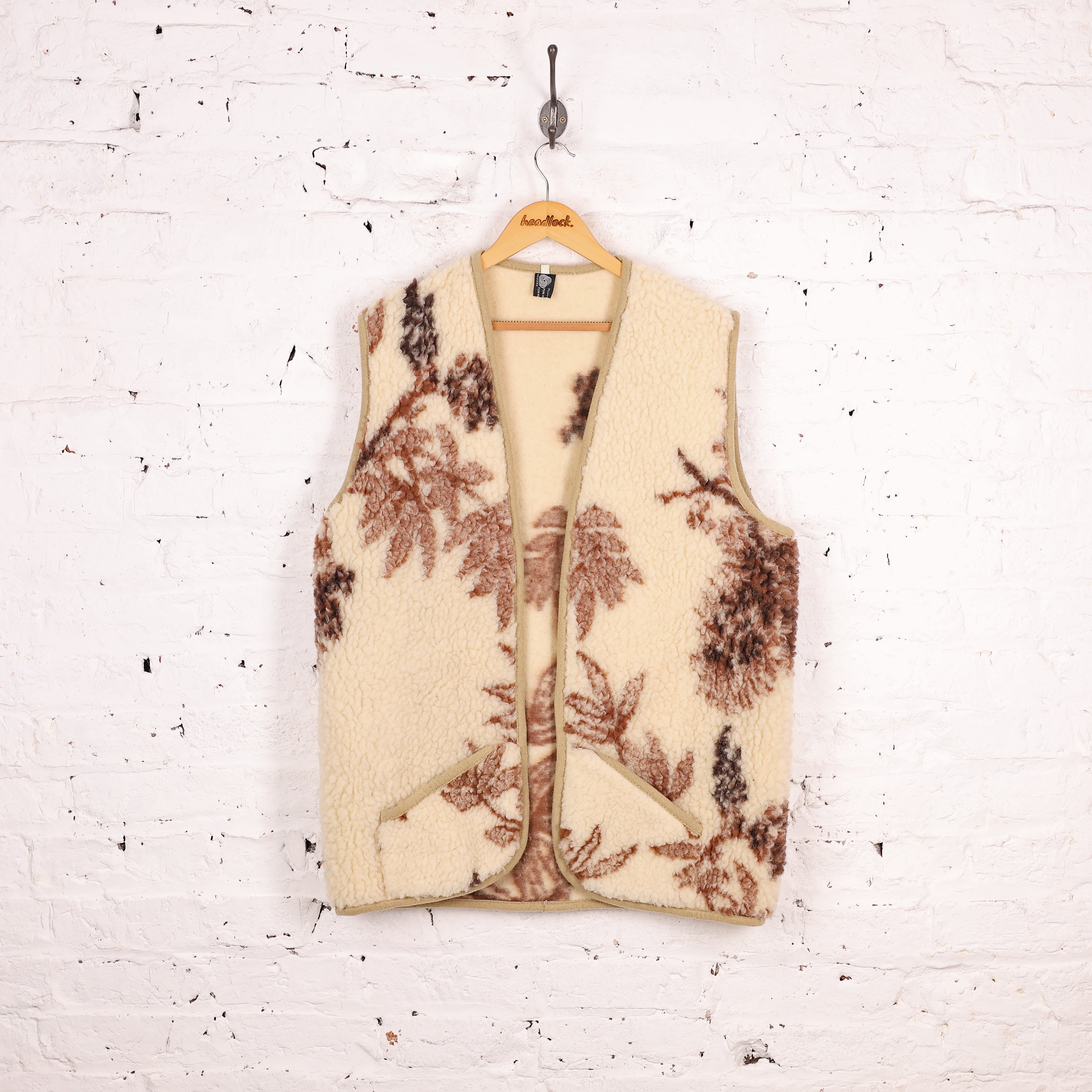 Excellent condition. Pure new wool pile fleece in cream and brown colours, two pockets.