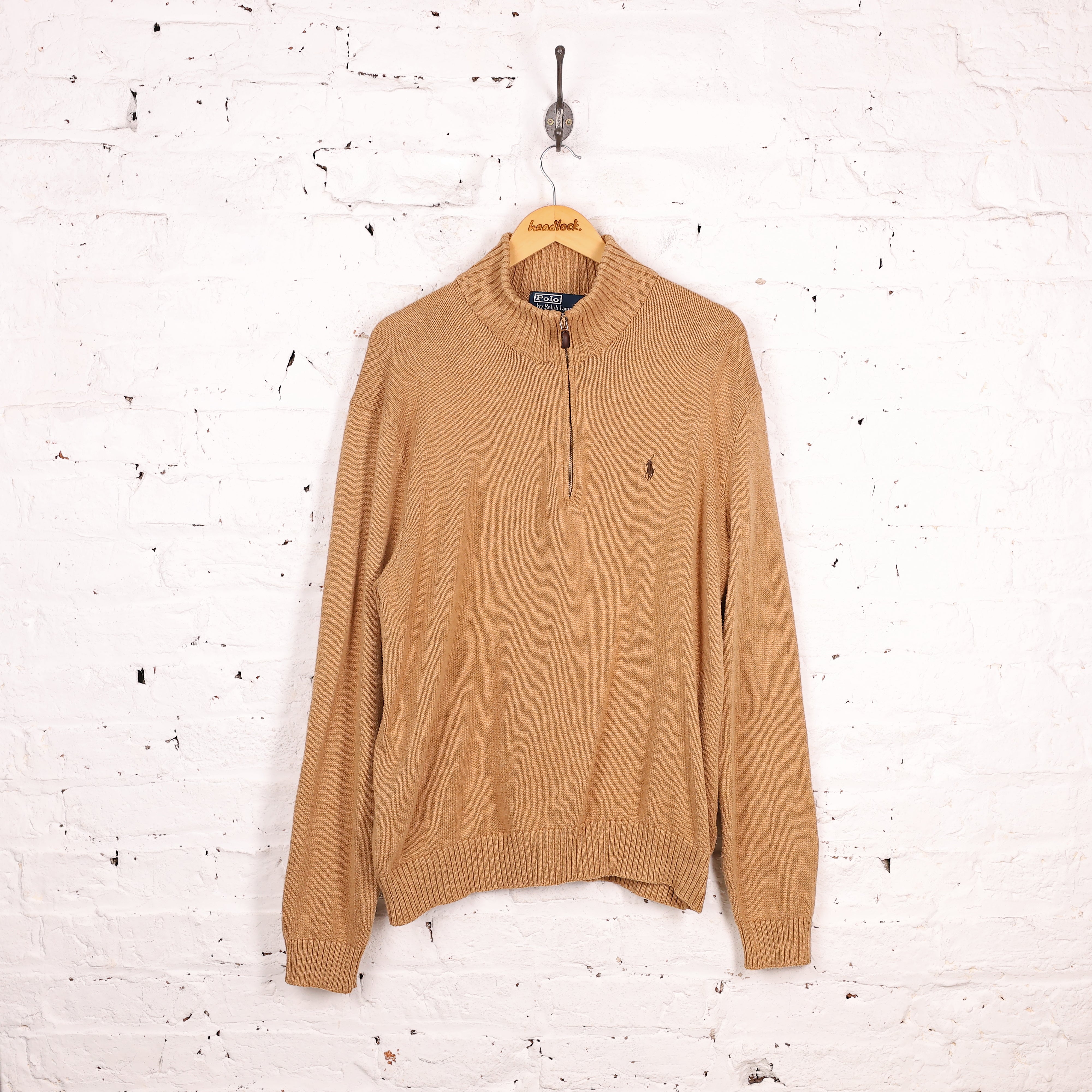 Ralph Lauren Knit 1/4 Zip Jumper - Brown - XL