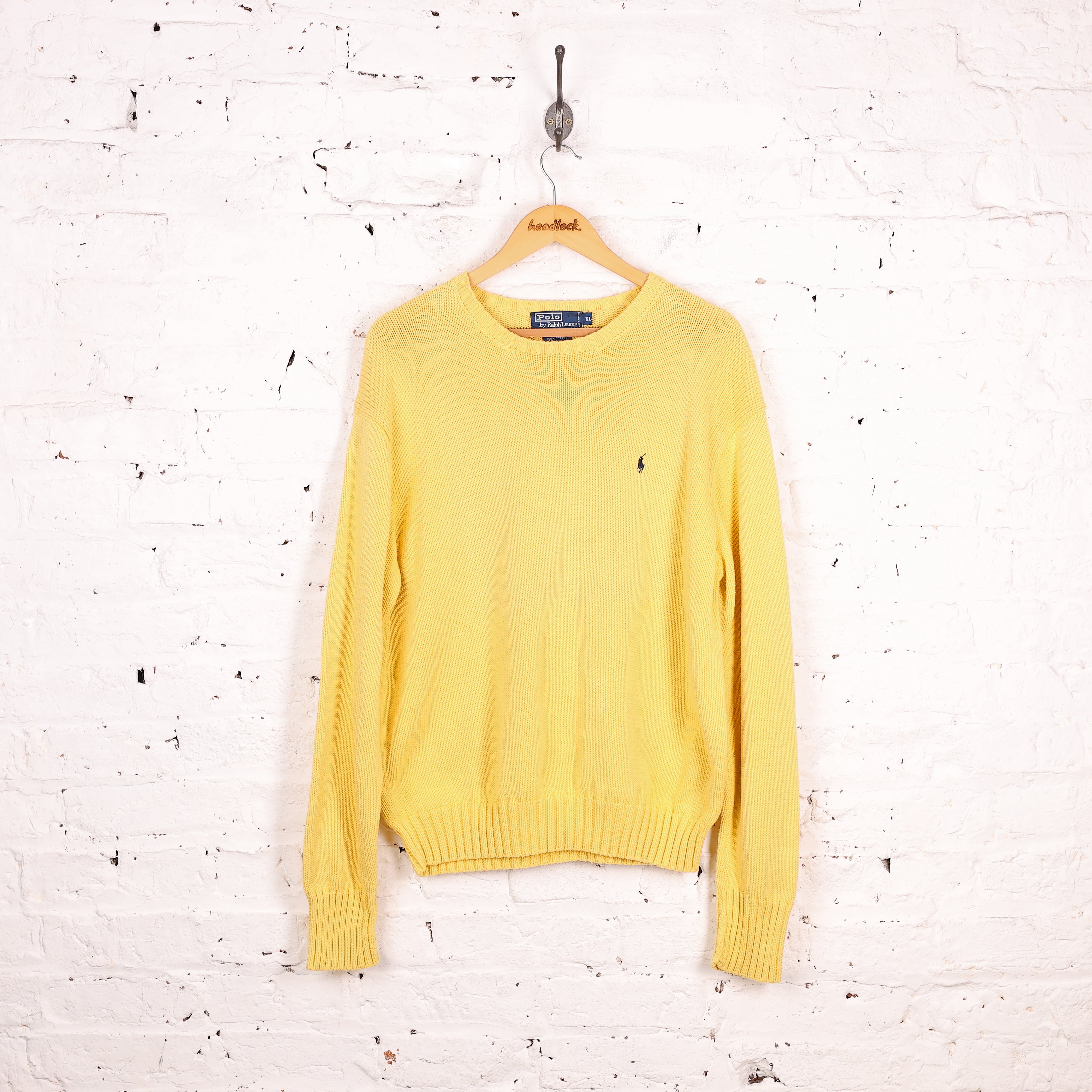 Good condition. Ralph Lauren knit jumper in yellow with stitched logo on the chest.
