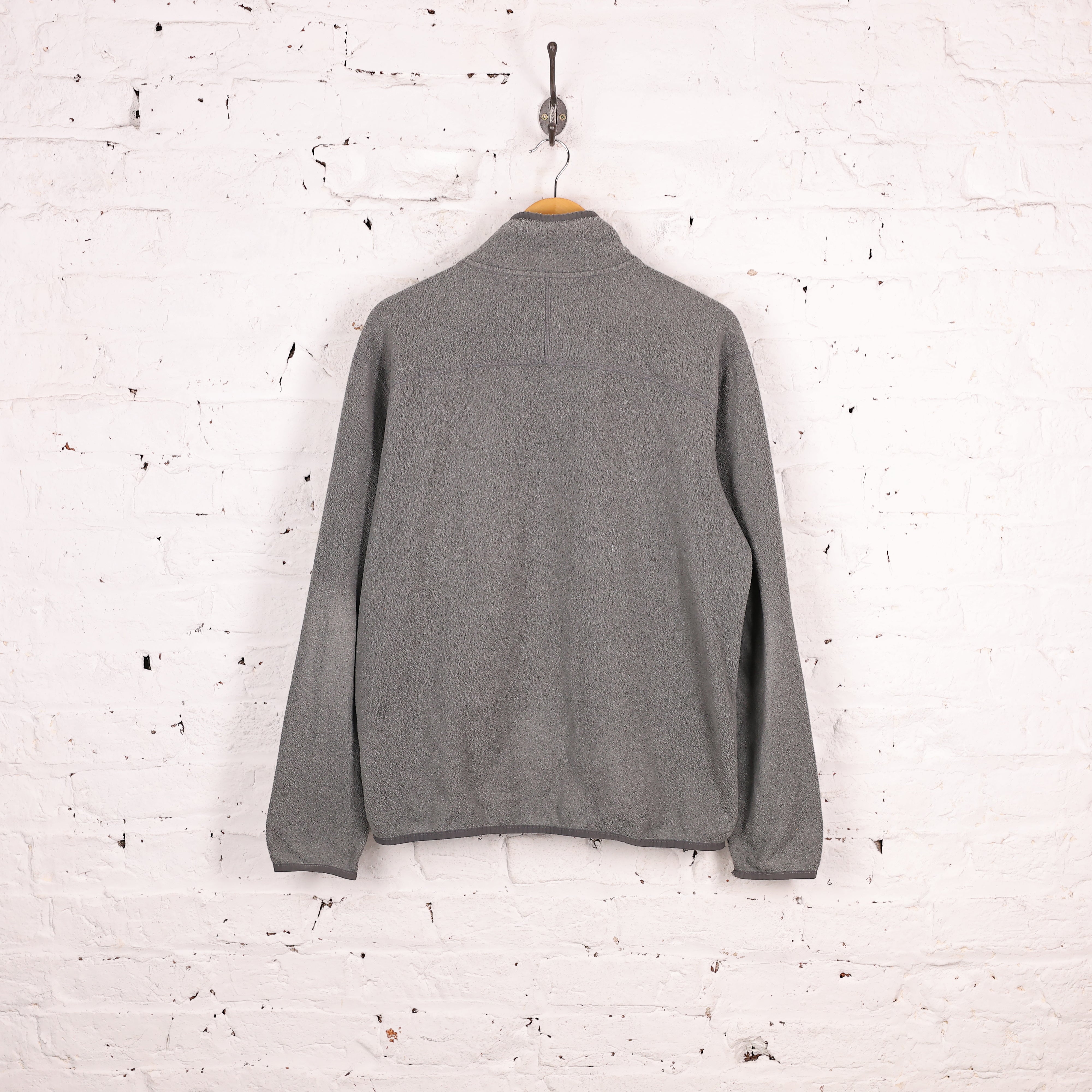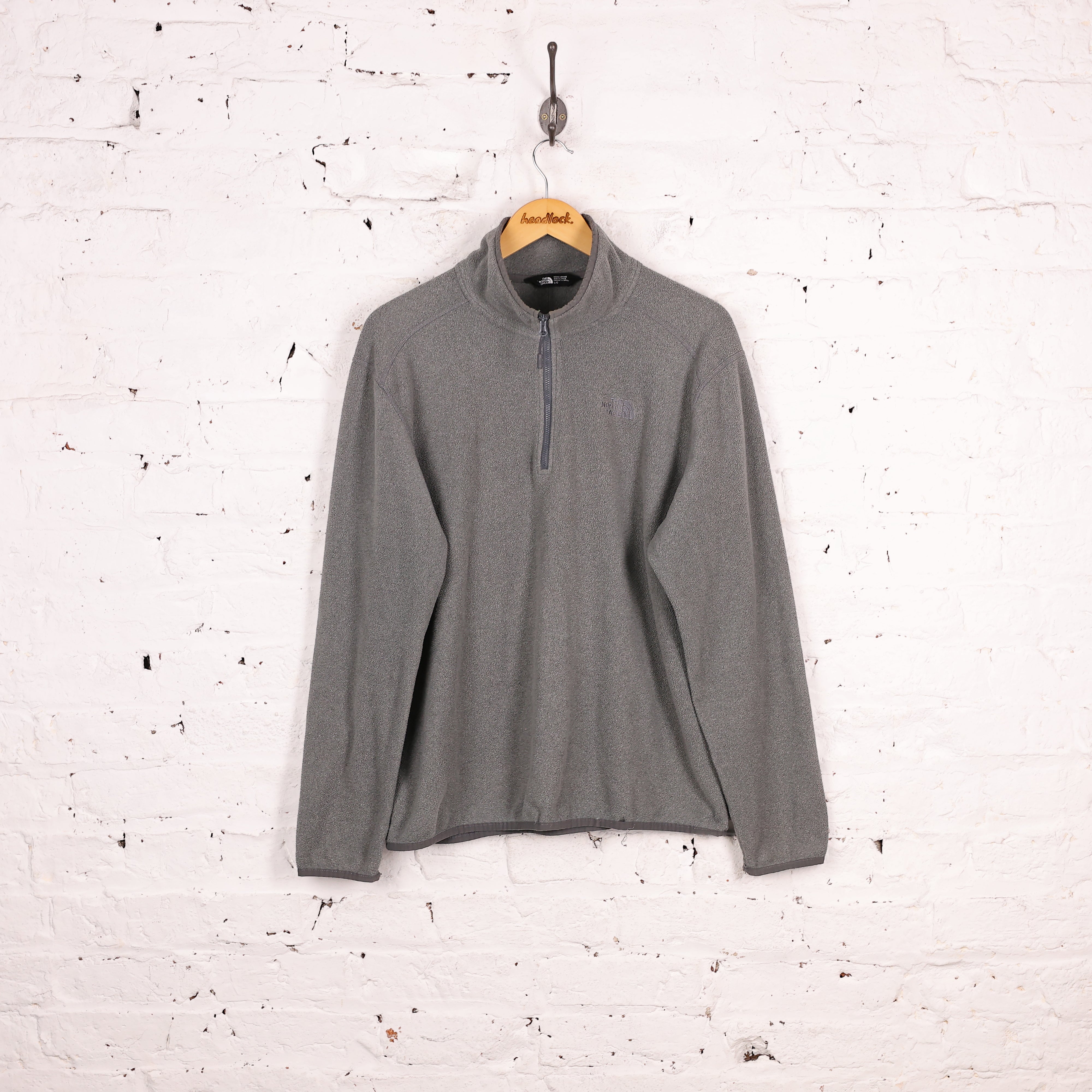 Good condition, some slight loose stitching at the bottom. The North Face 1/4 zip fleece in grey with stitched logo.