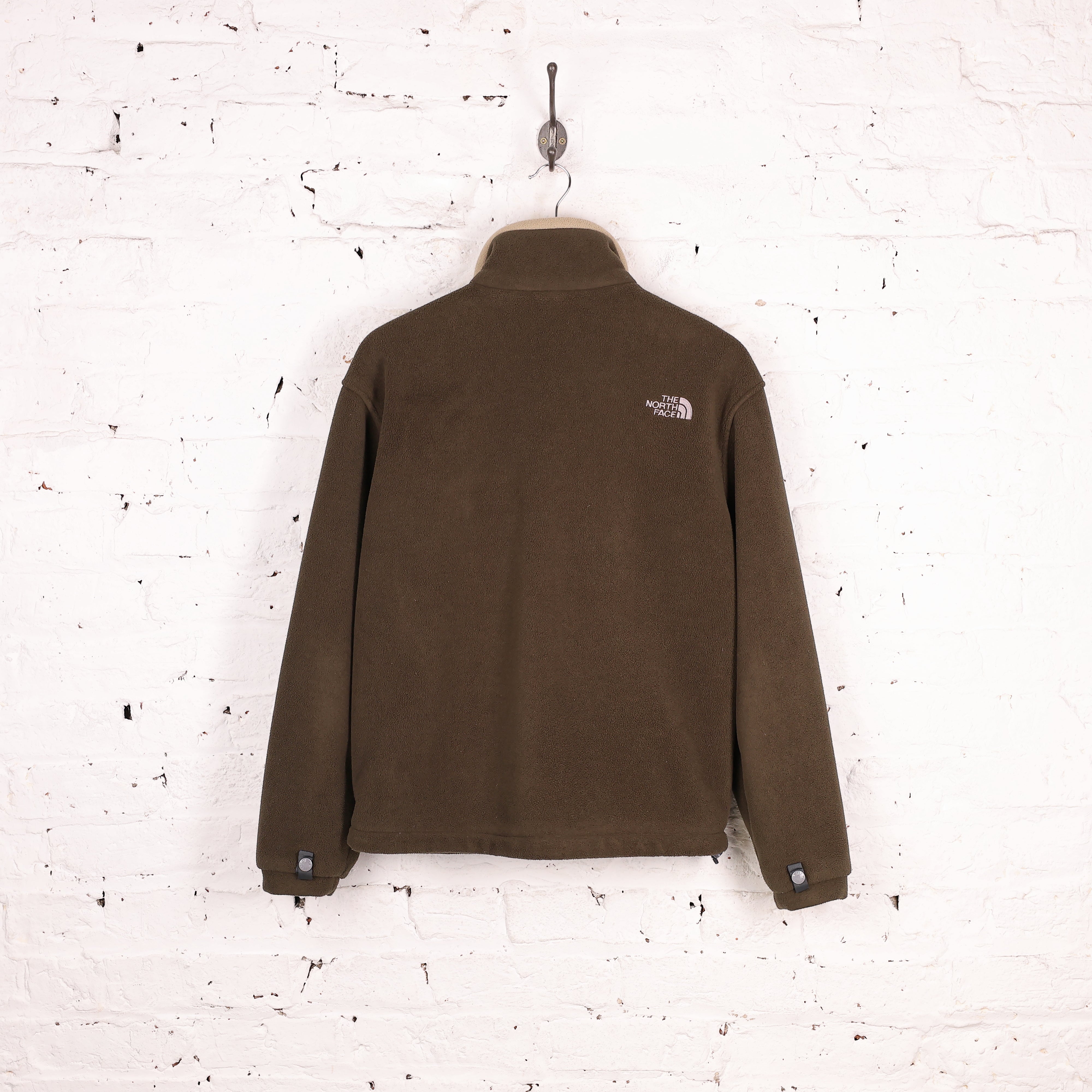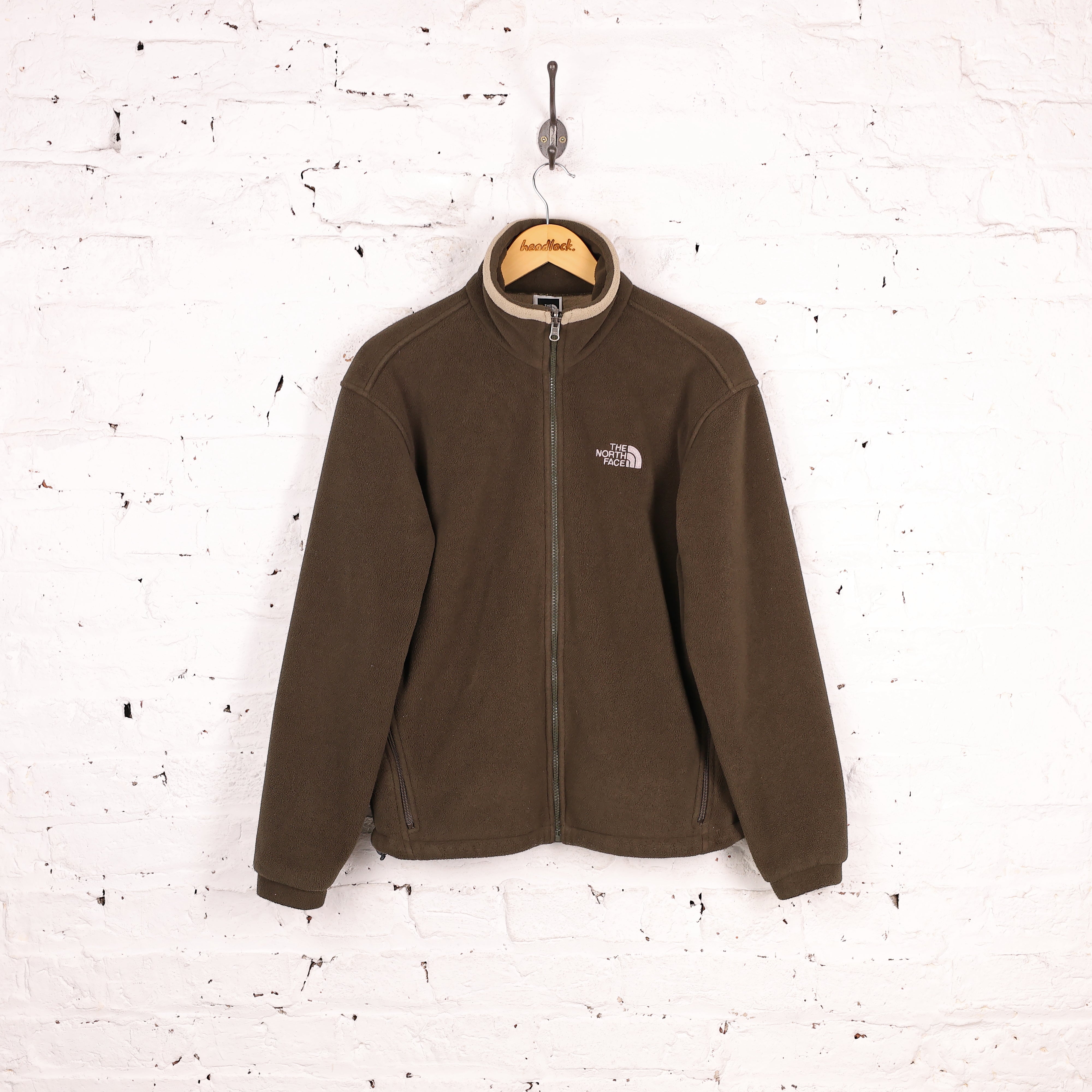 Good condition. The North Face full zip Polartec fleece in green with stitched logo on the chest and two zip pockets.