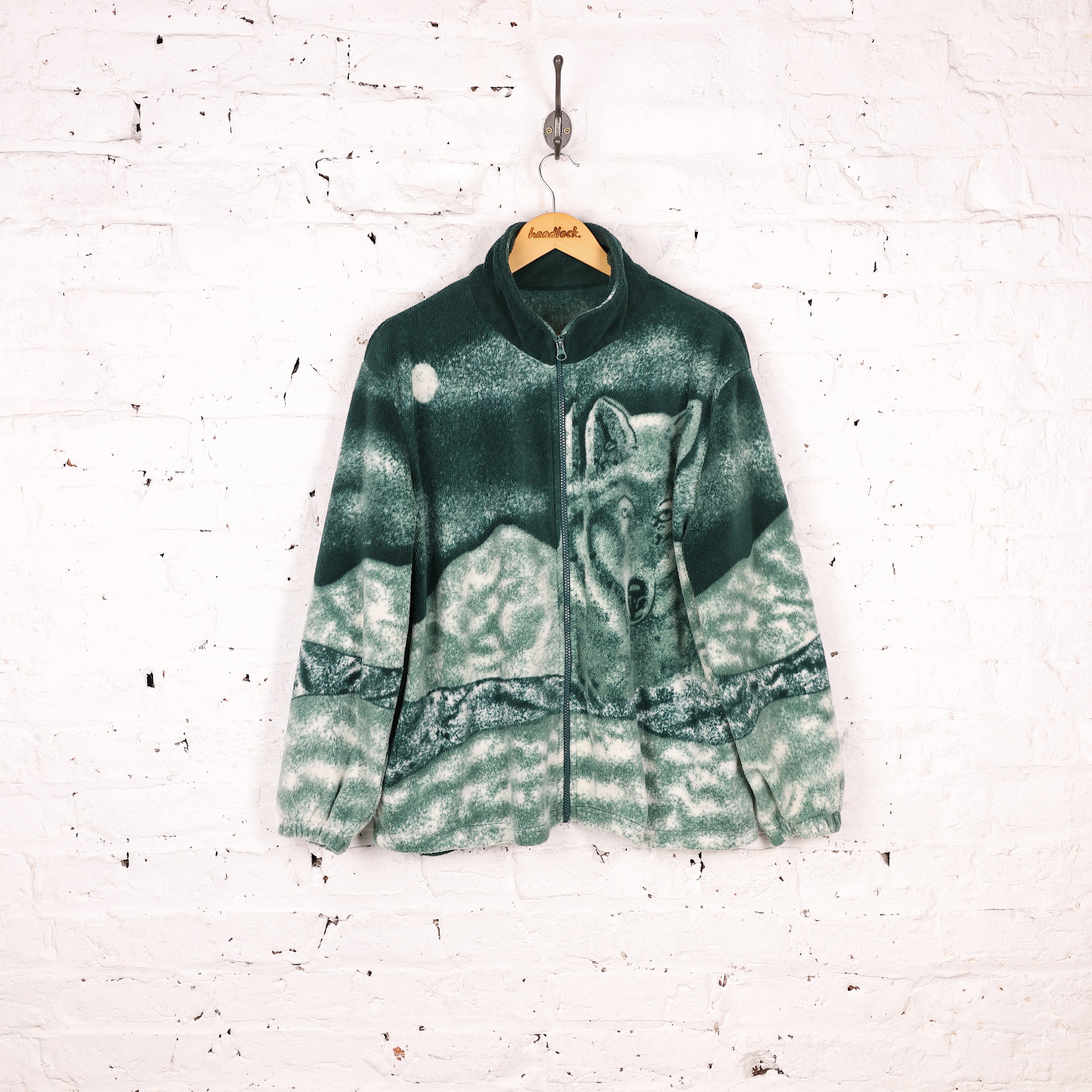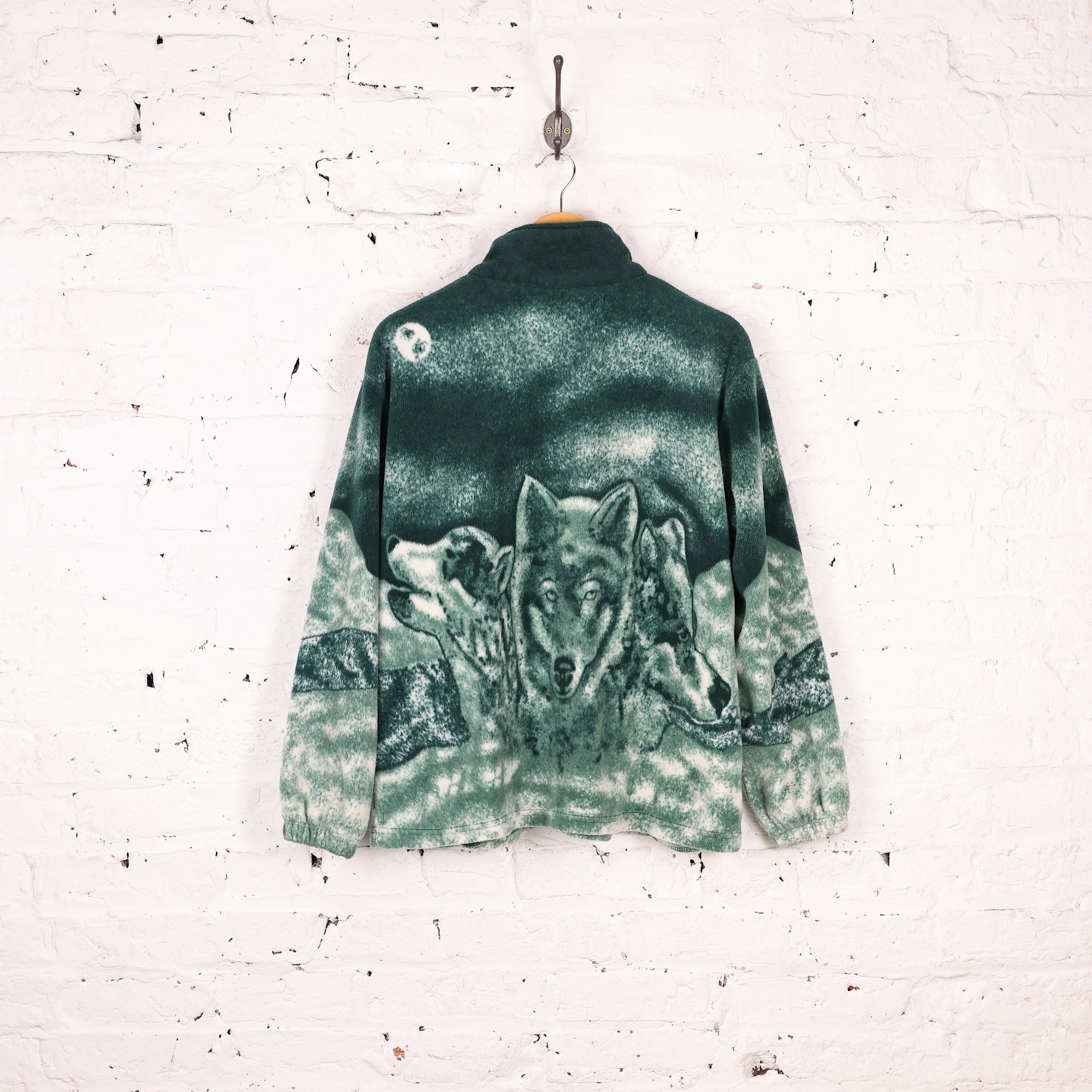 Wolf 90s Zip Up Fleece Jacket - Green - M