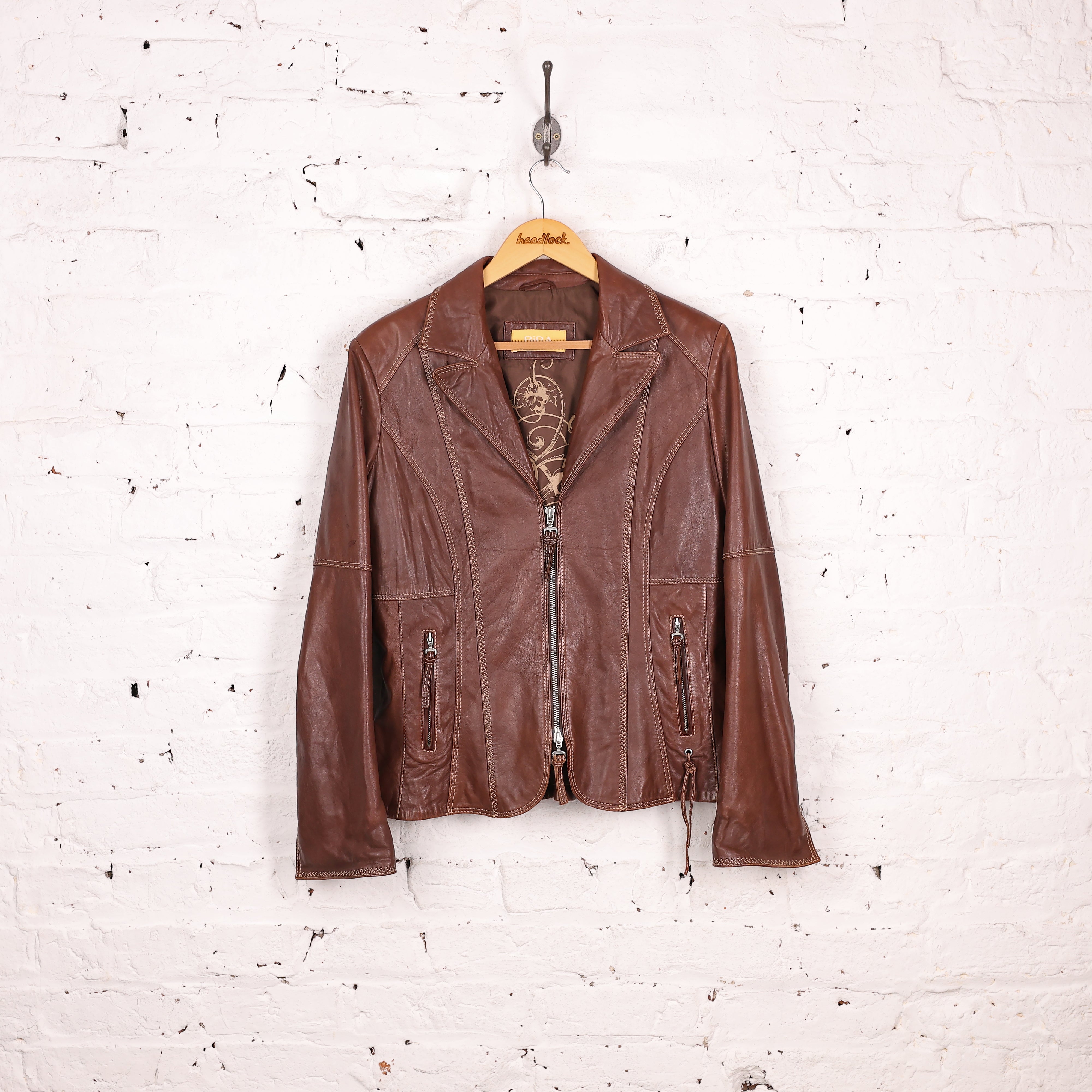 Women's Y2K Real Leather Jacket - Brown - Women's M