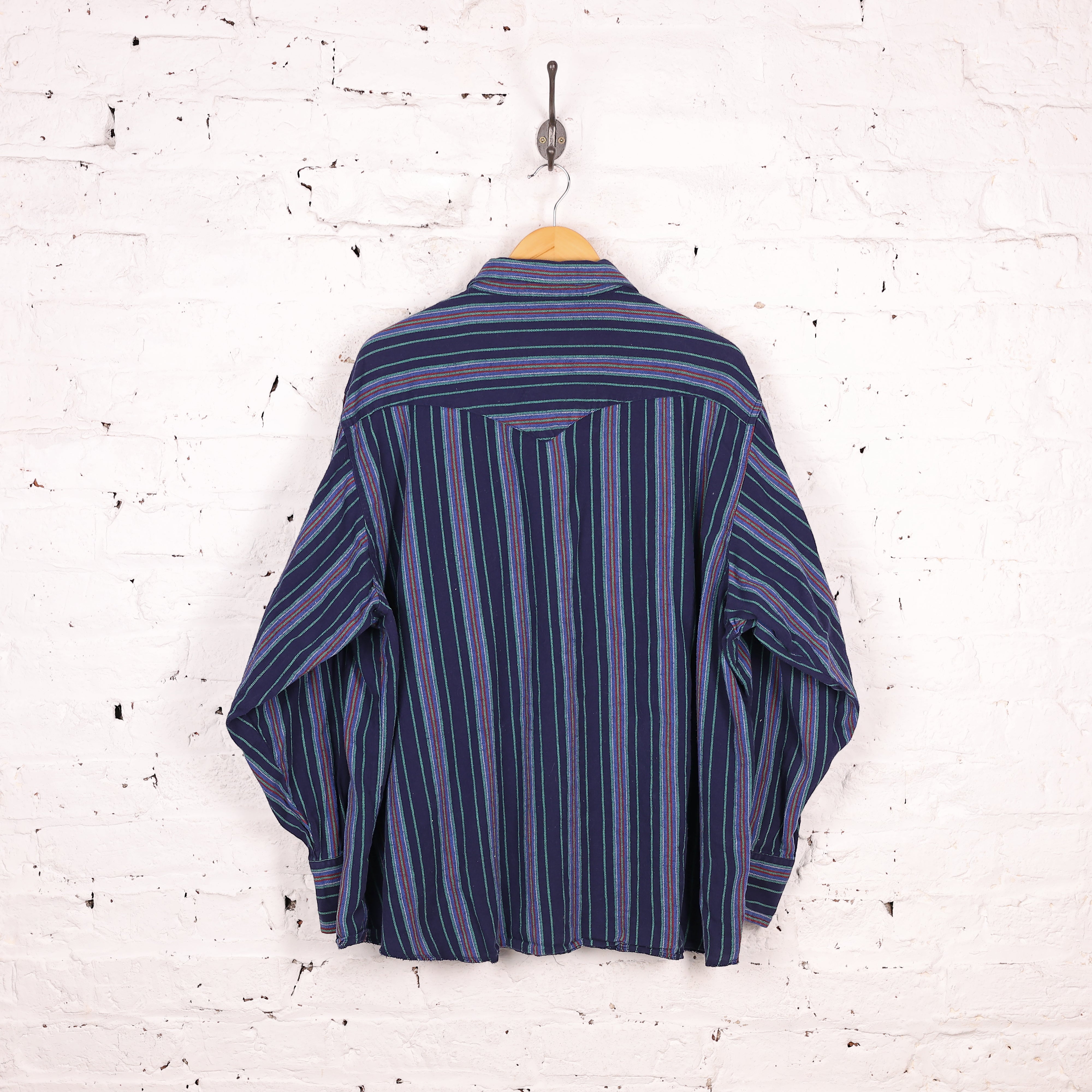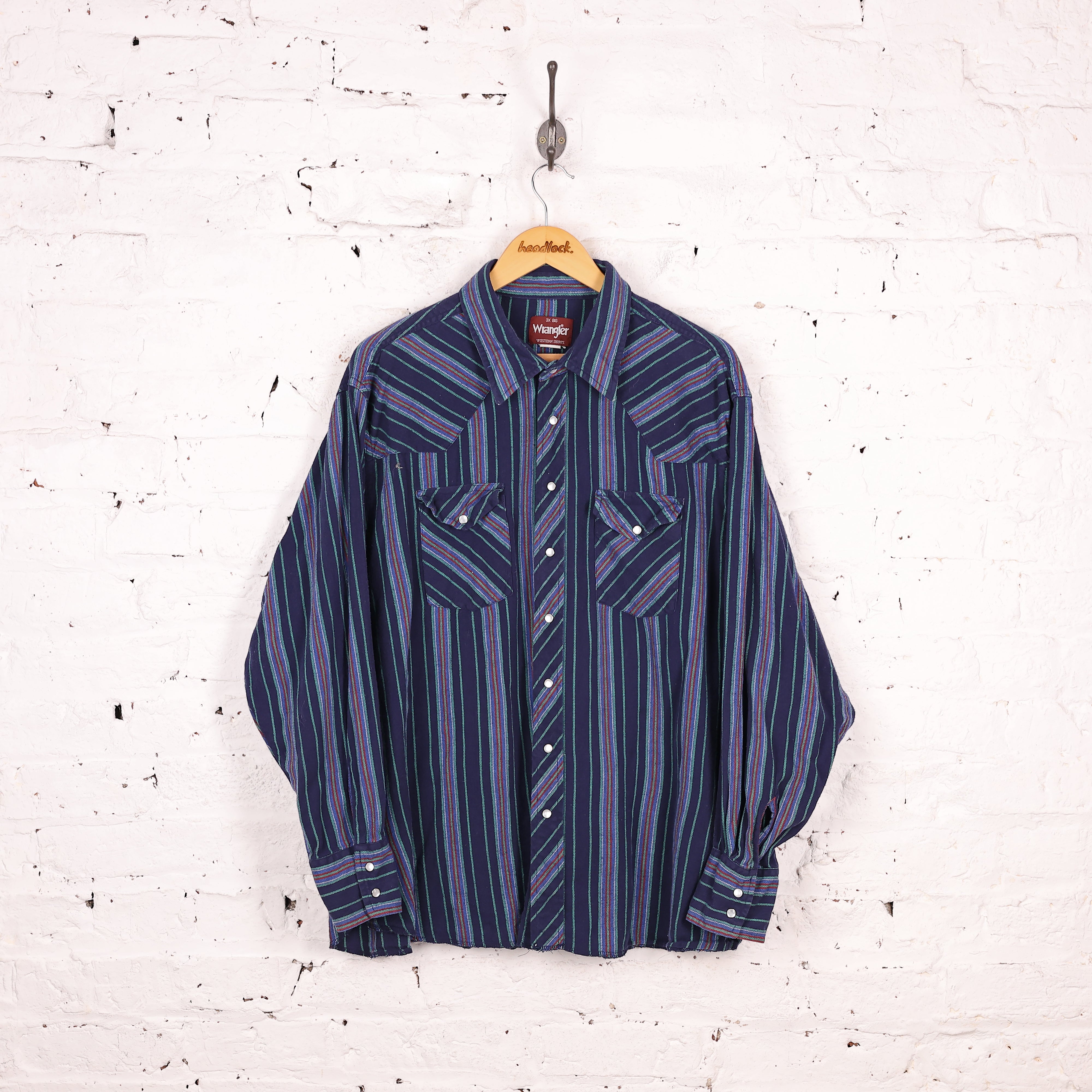Wrangler Striped Flannel Western Shirt - Blue - XXXL