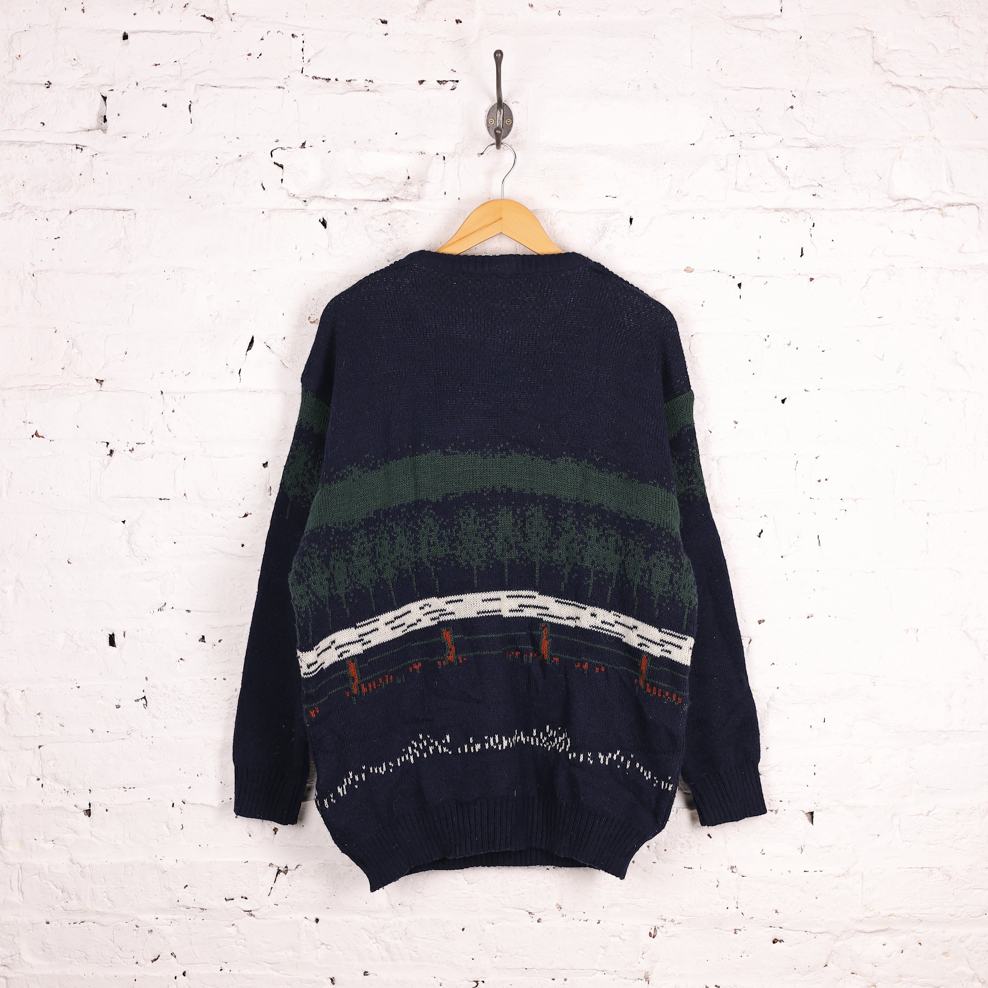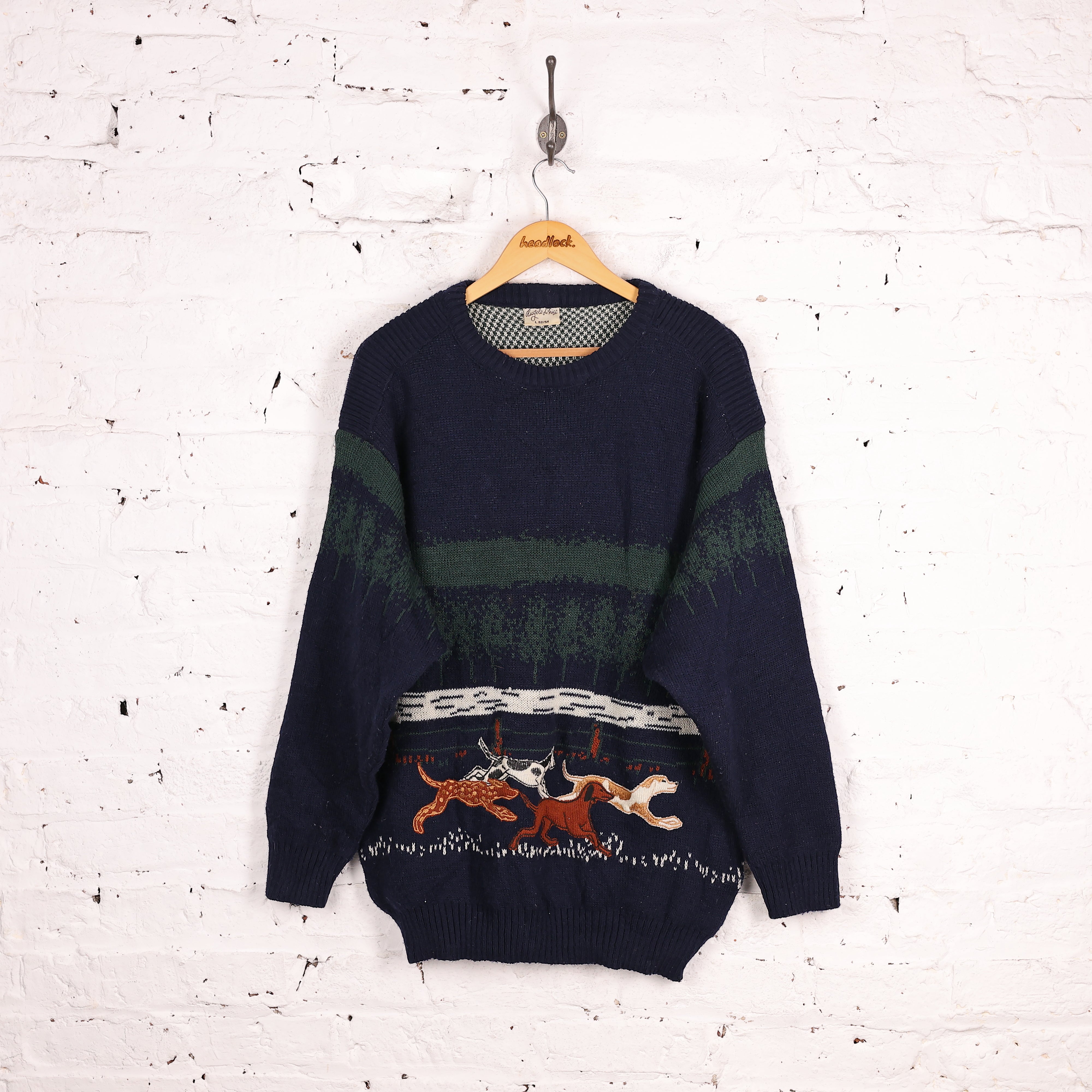 90s Dogs Pattern Knit Jumper - Blue - XL