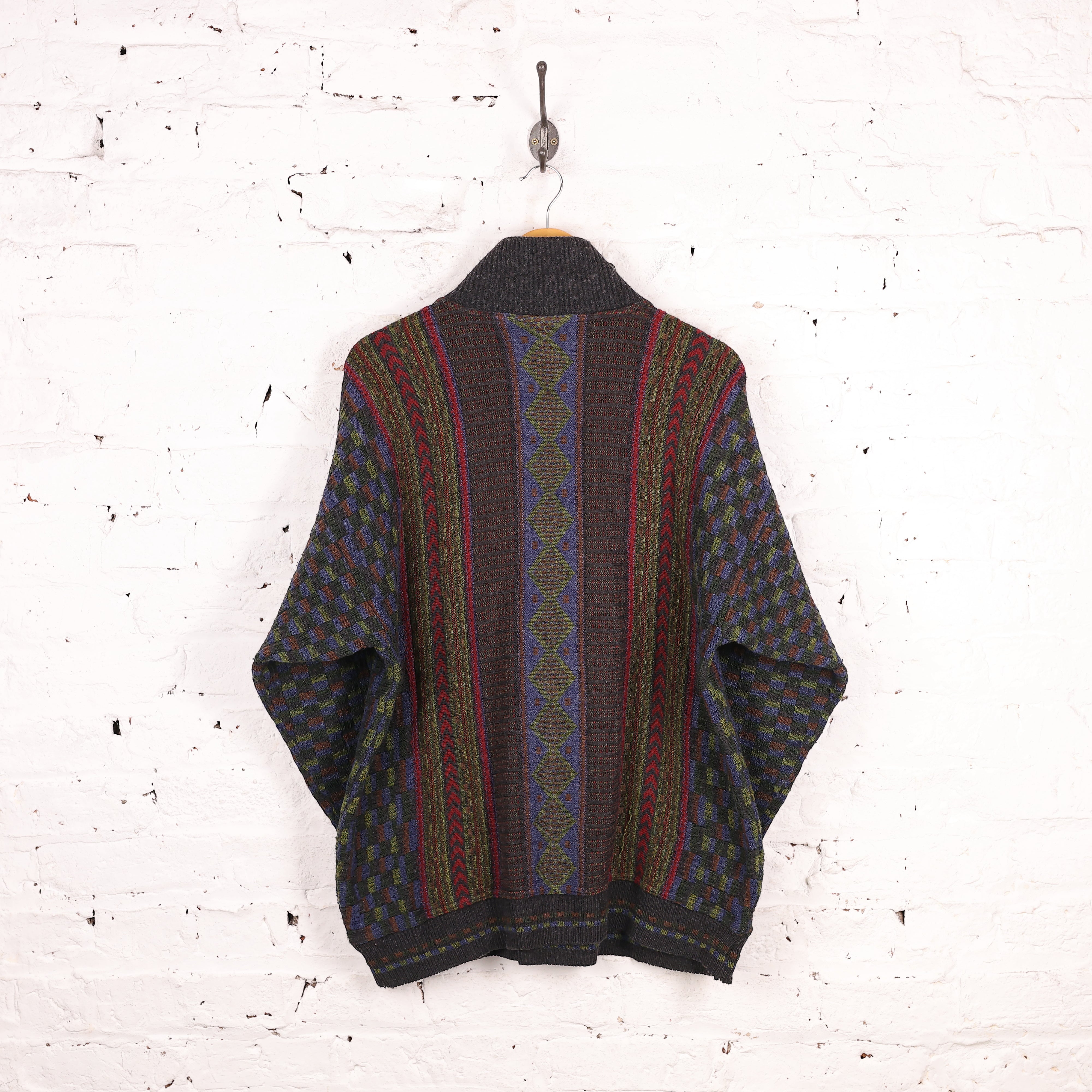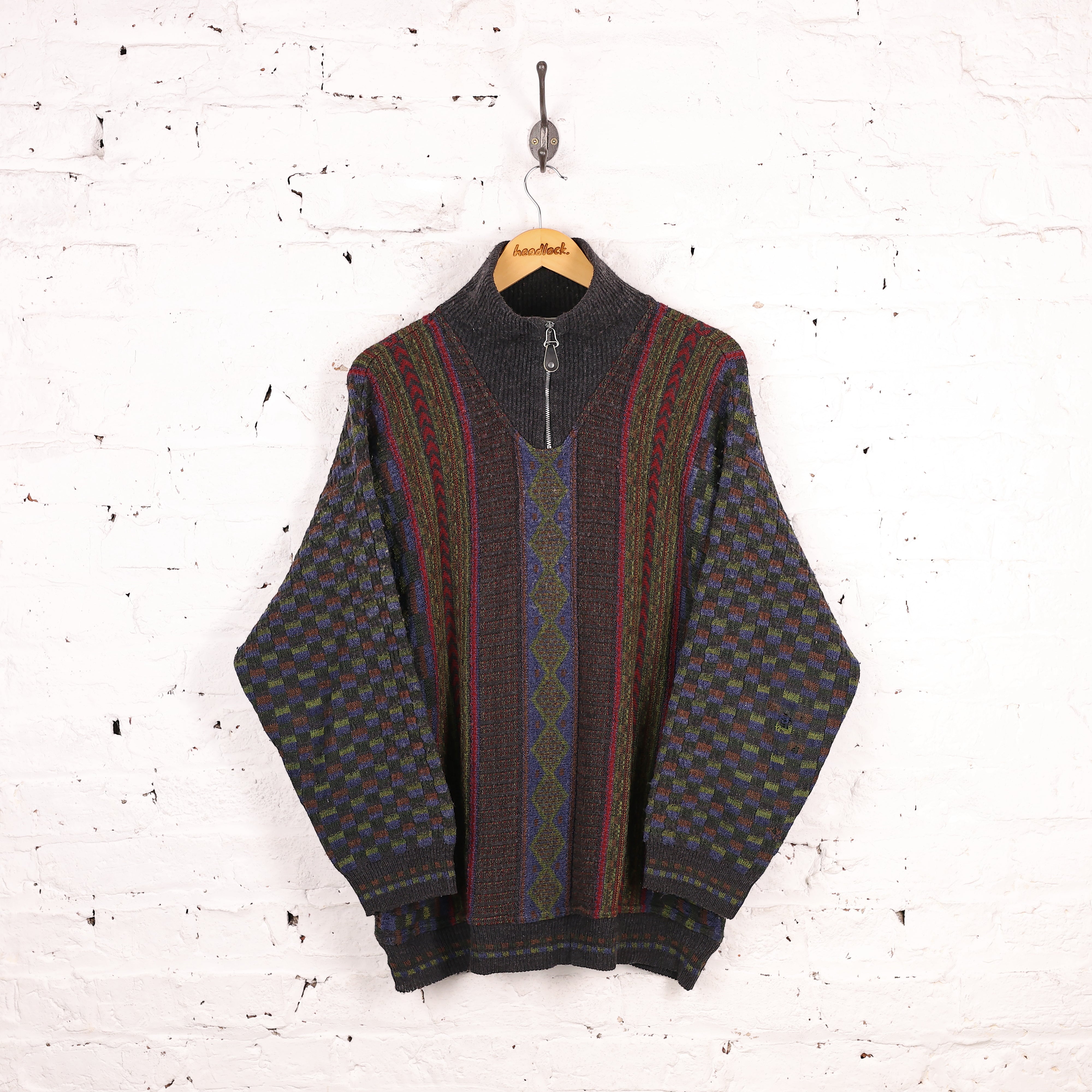 90s Pattern 1/4 Zip Knit Jumper - Grey - XXXL