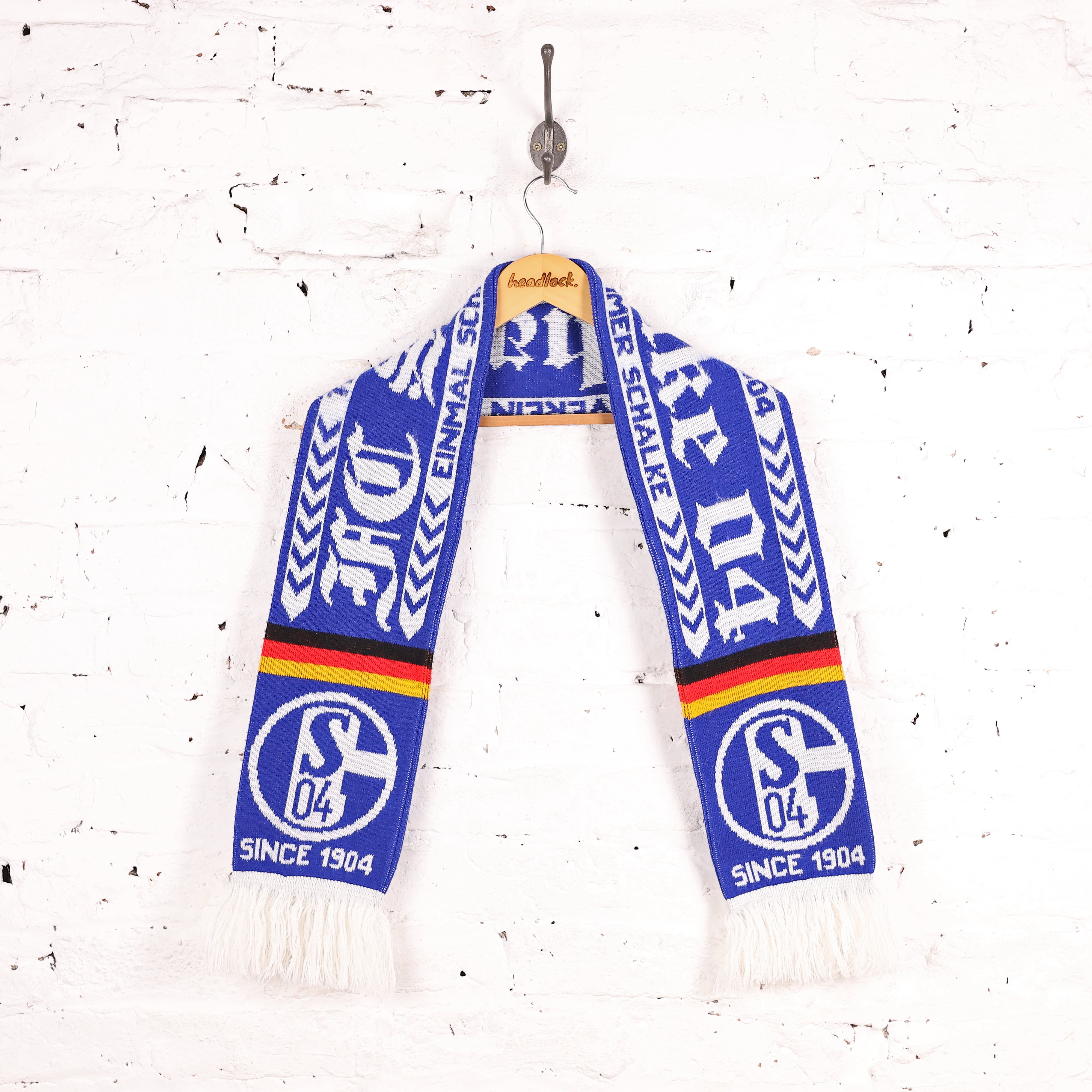Good condition, some bobbling to lettering. FC Schalke 04 football scarf in blue and white colours with german flag band.