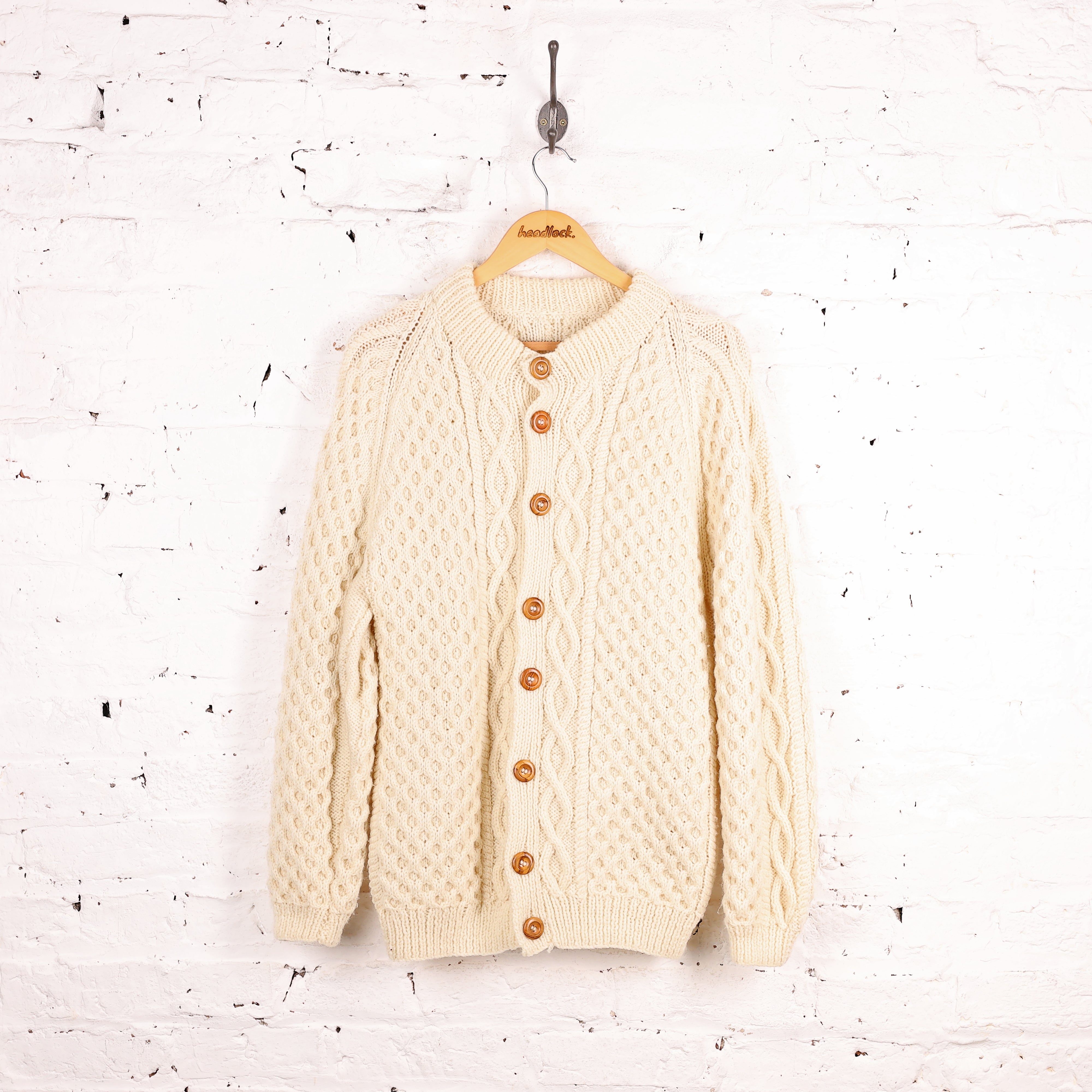 Good condition. Women's cable knit cardigan in cream with brown buttons.