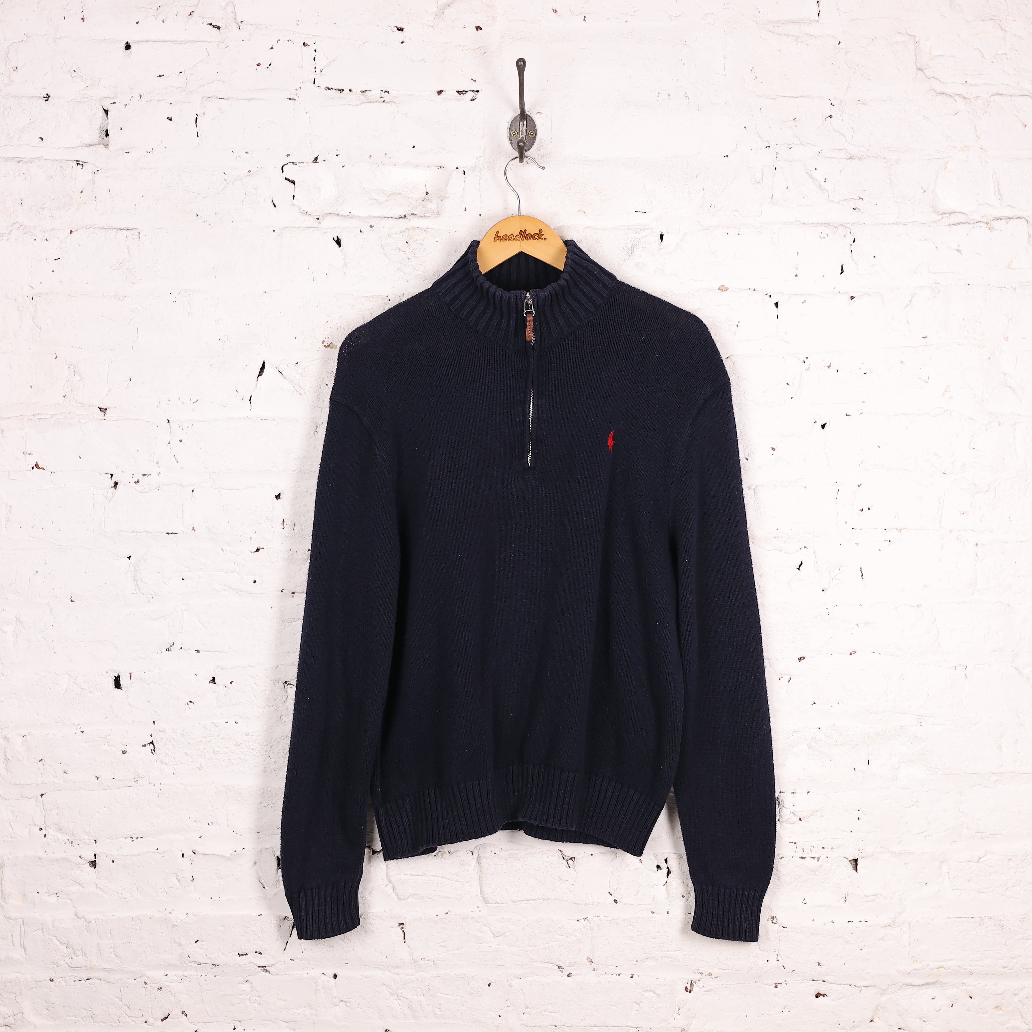 Women's Ralph Lauren 1/4 Zip Knit Jumper - Blue - Women's L
