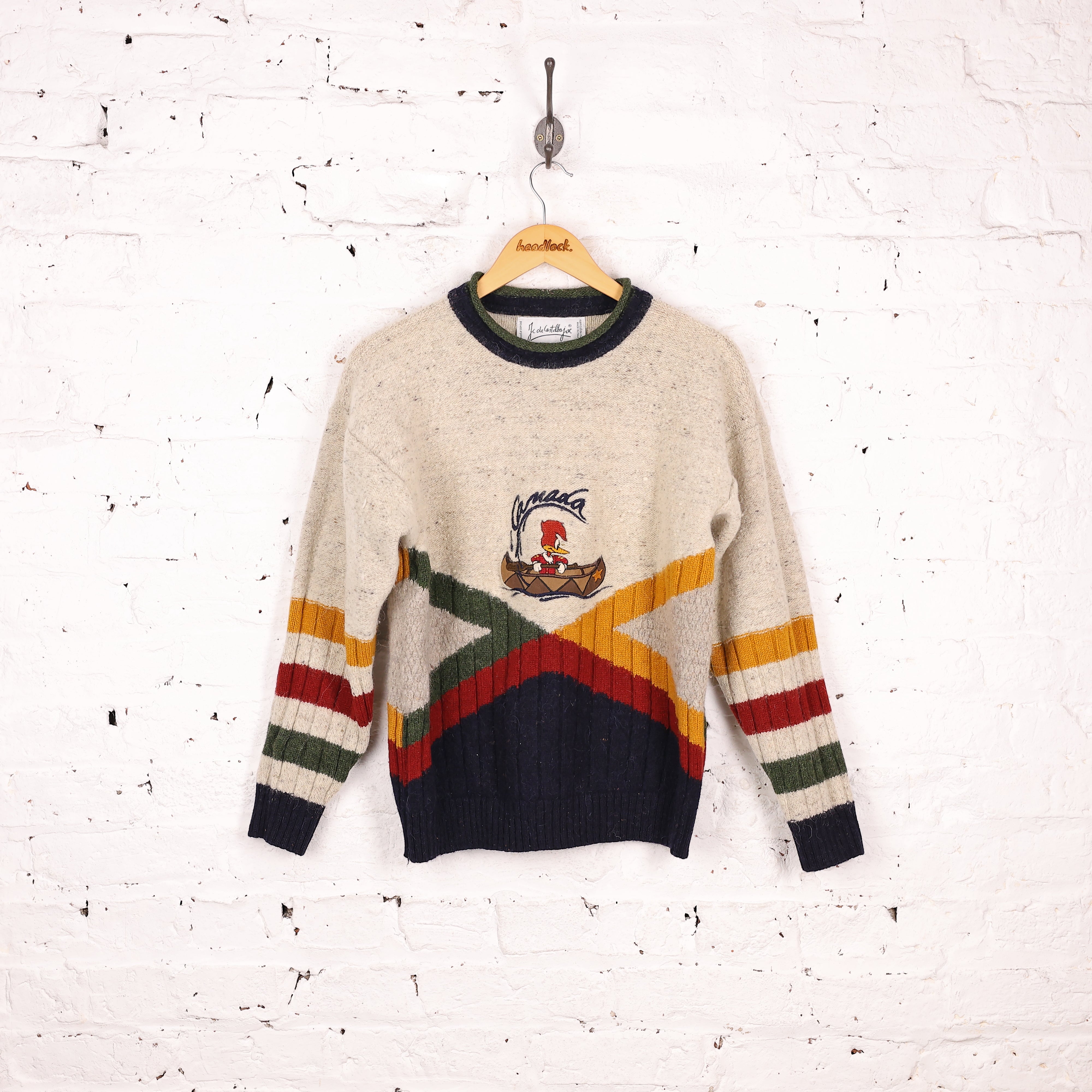 Woodpecker Canoe Pattern Knit Jumper - Beige - XS
