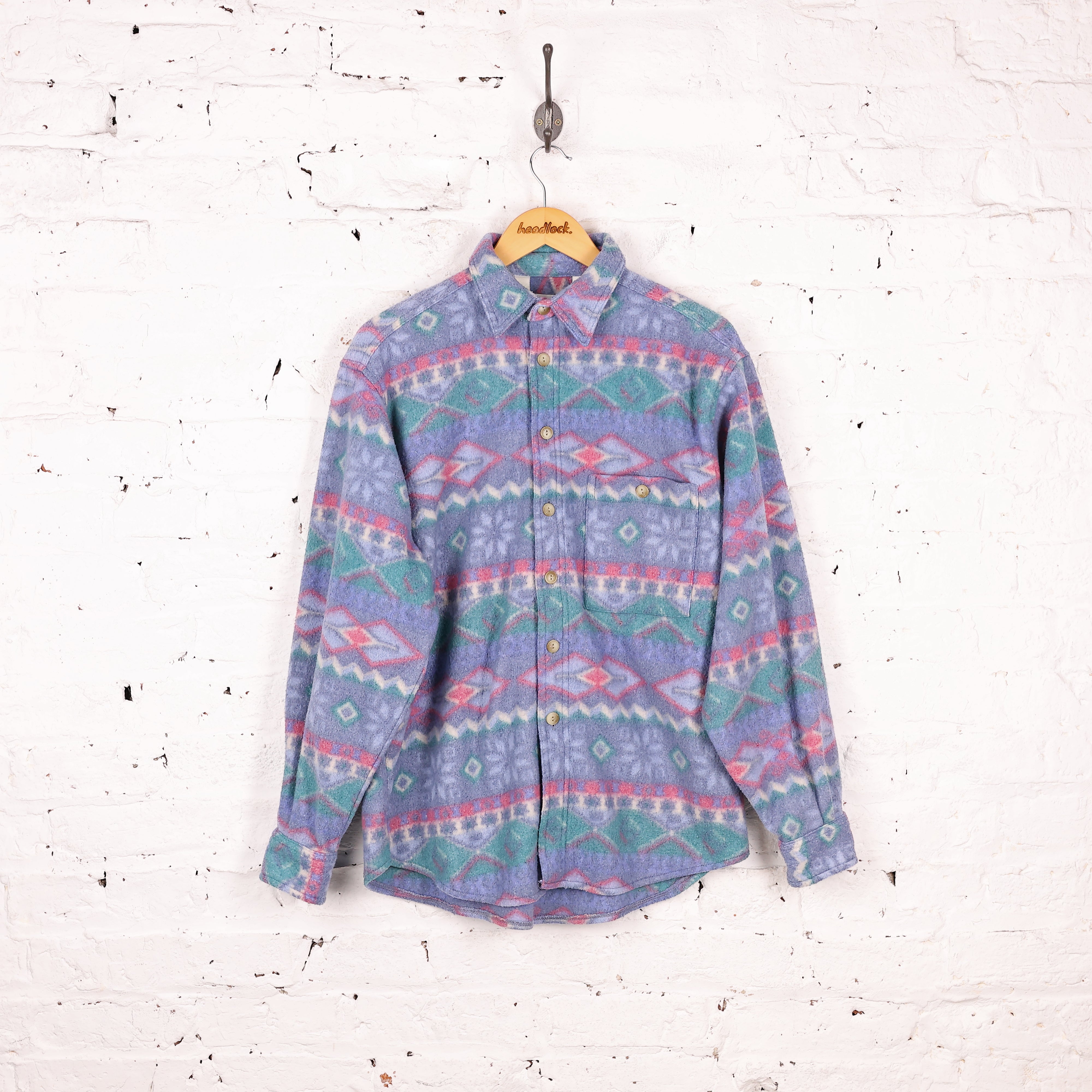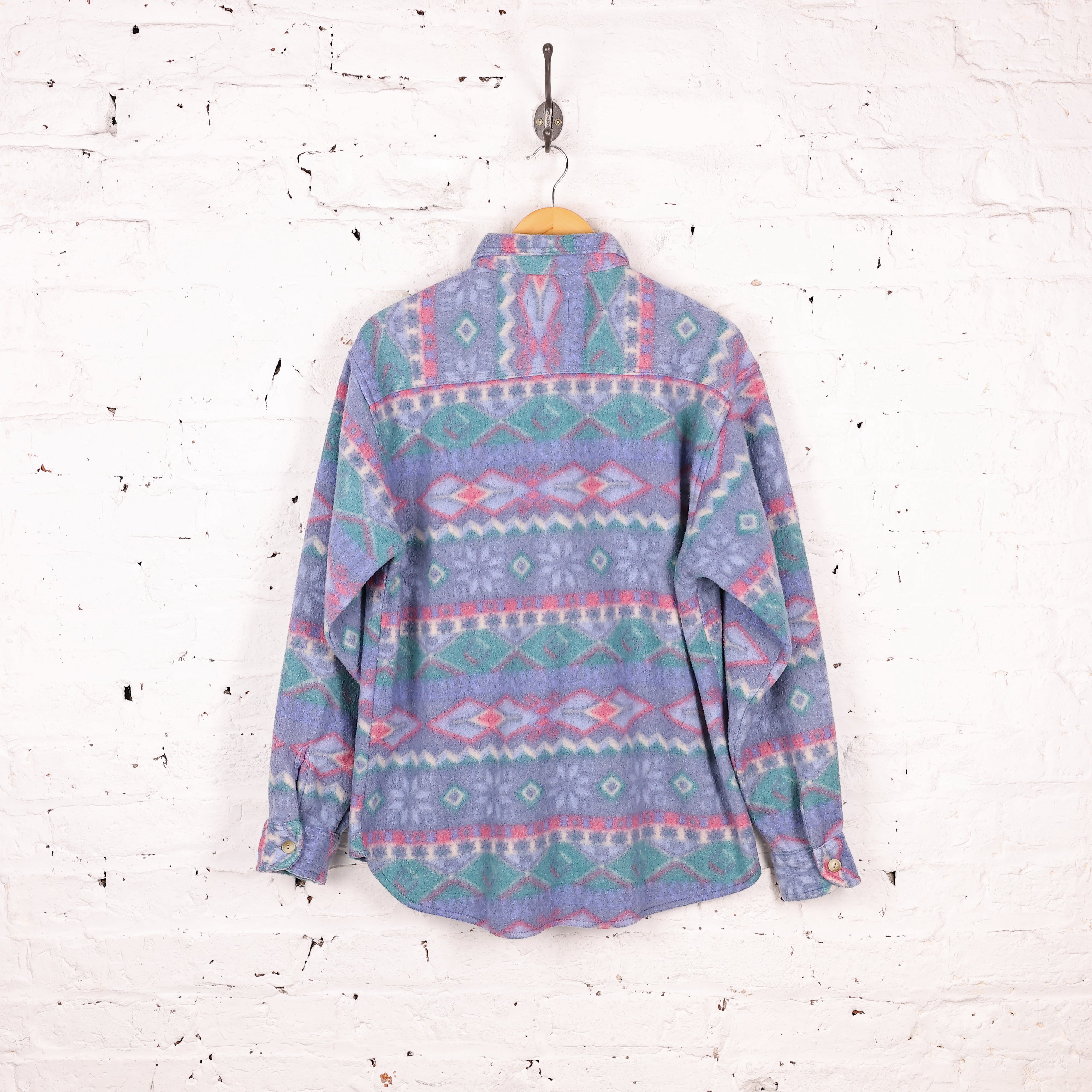 90s Pattern Fleece Shirt - Purple - M