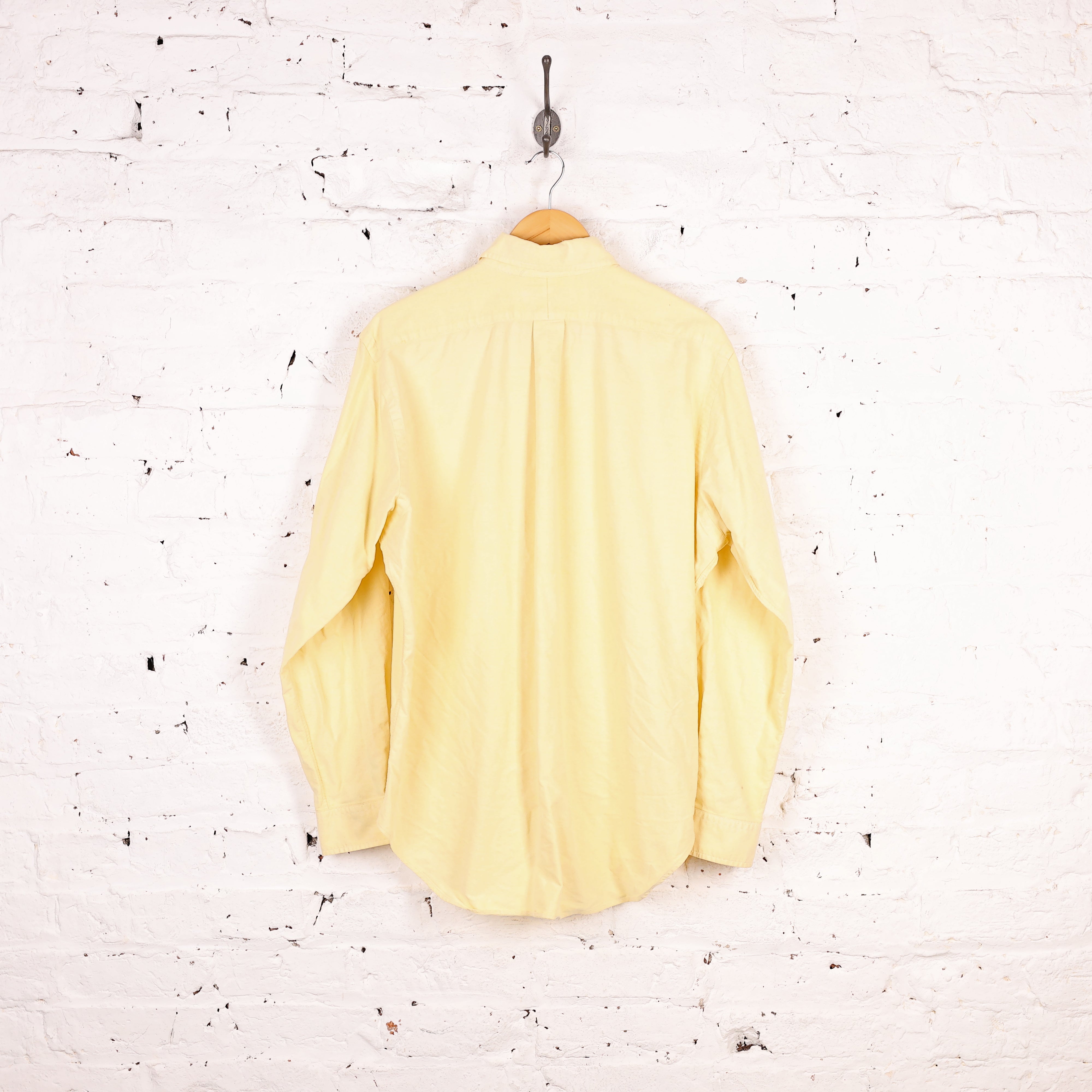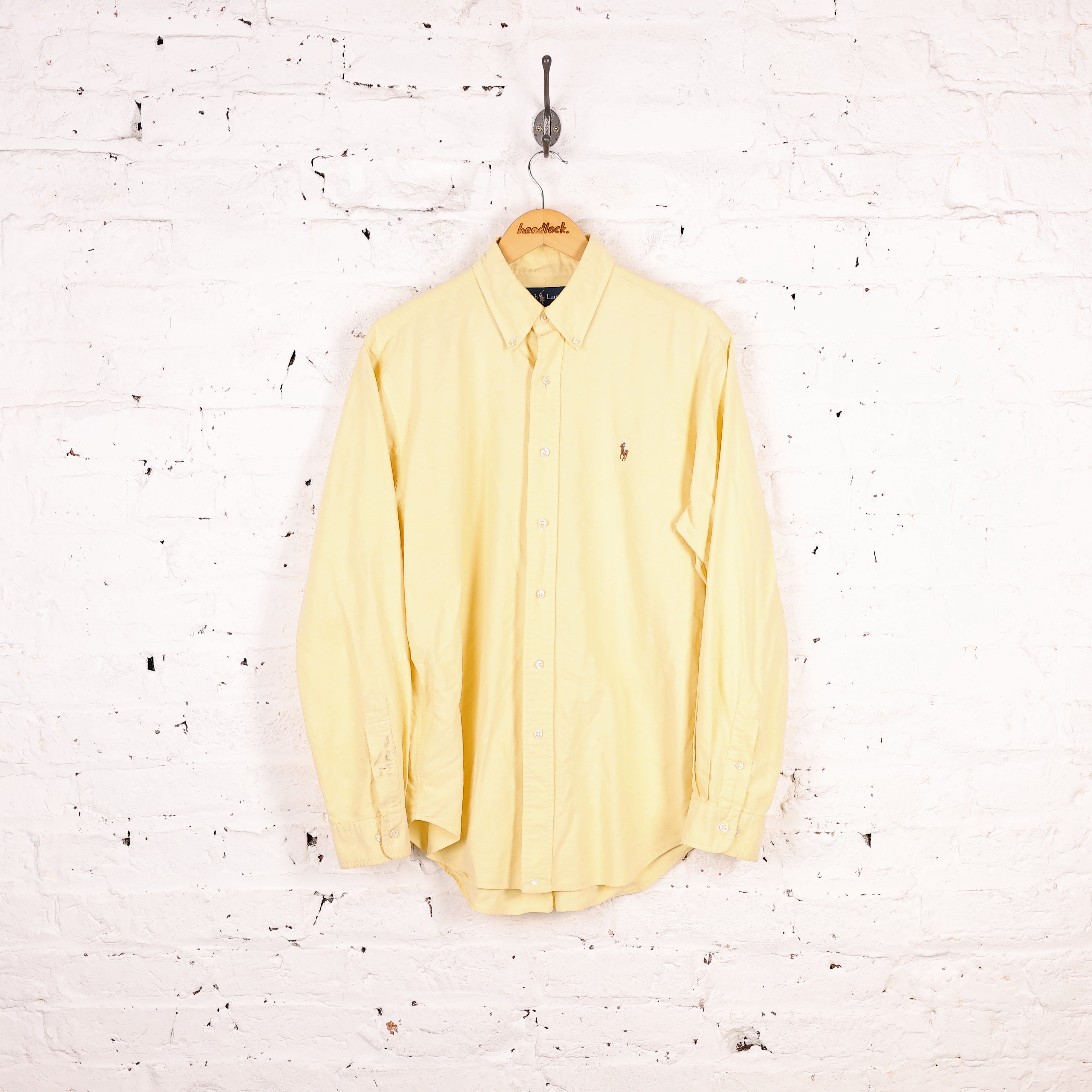 Good condition, Ralph Lauren shirt in yellow with button-down collar and stitched logo on the chest. 16" neck.