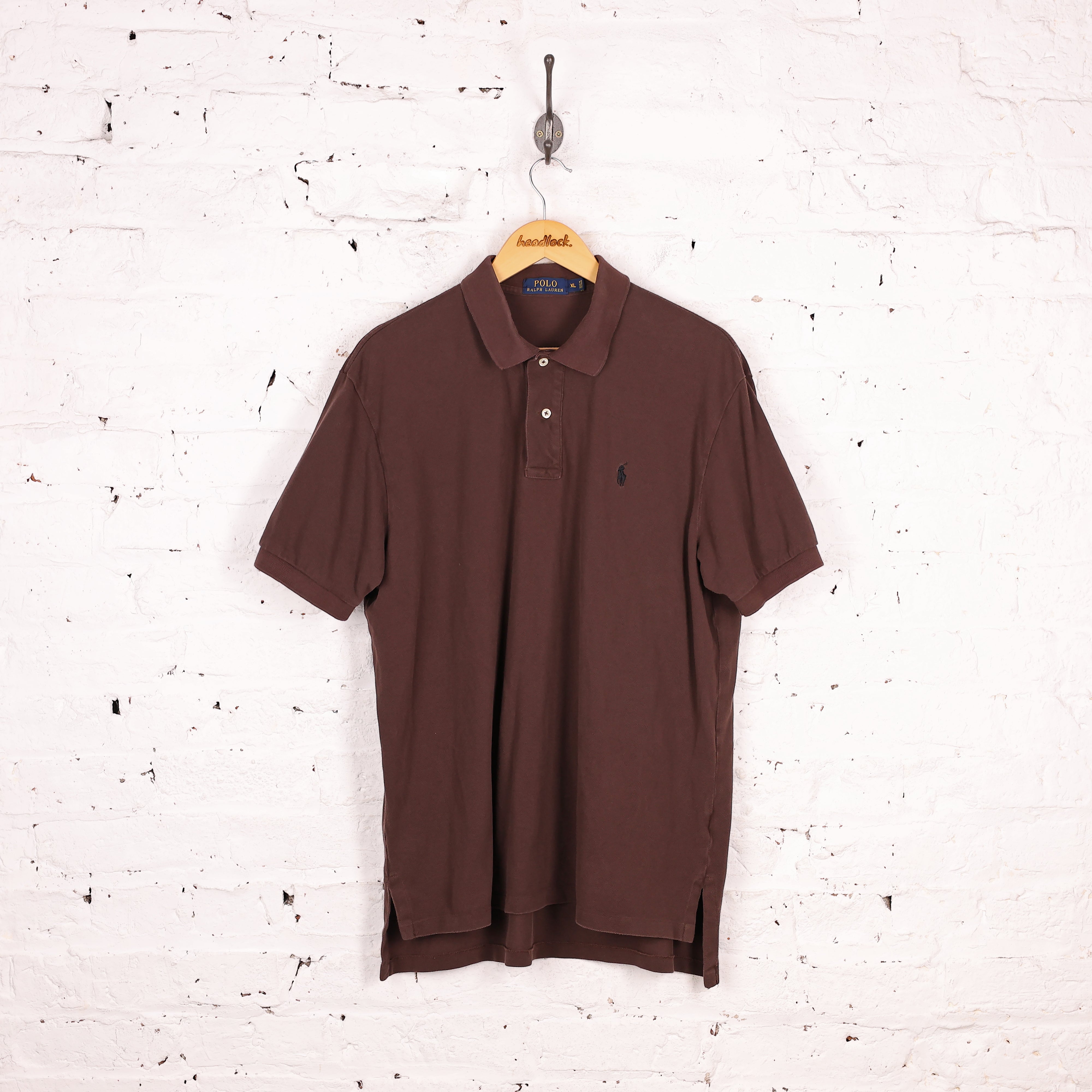 Good condition. Ralph Lauren polo shirt in brown with stitched black logo