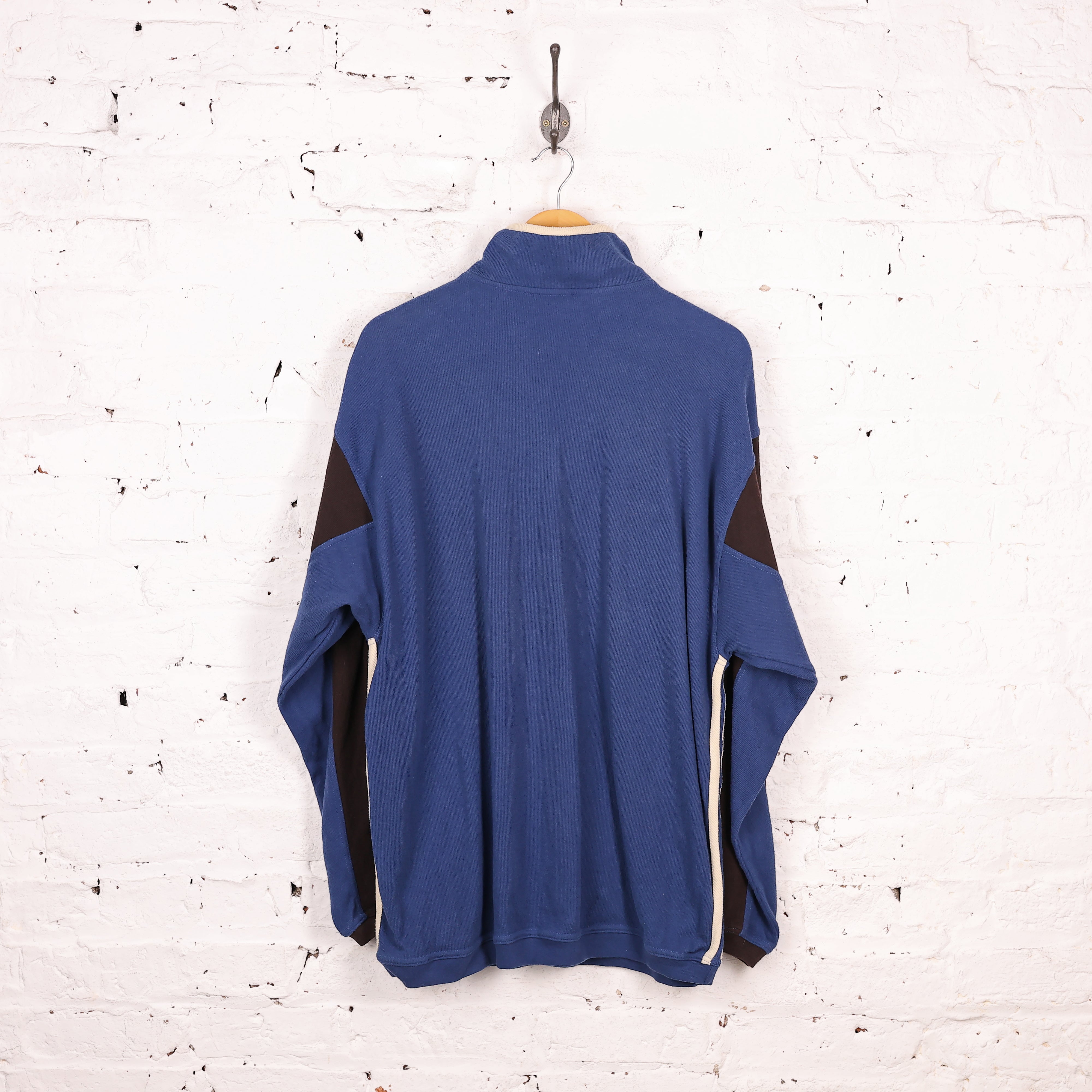 90s Adidas 1/4 Zip Sweatshirt - Blue - L