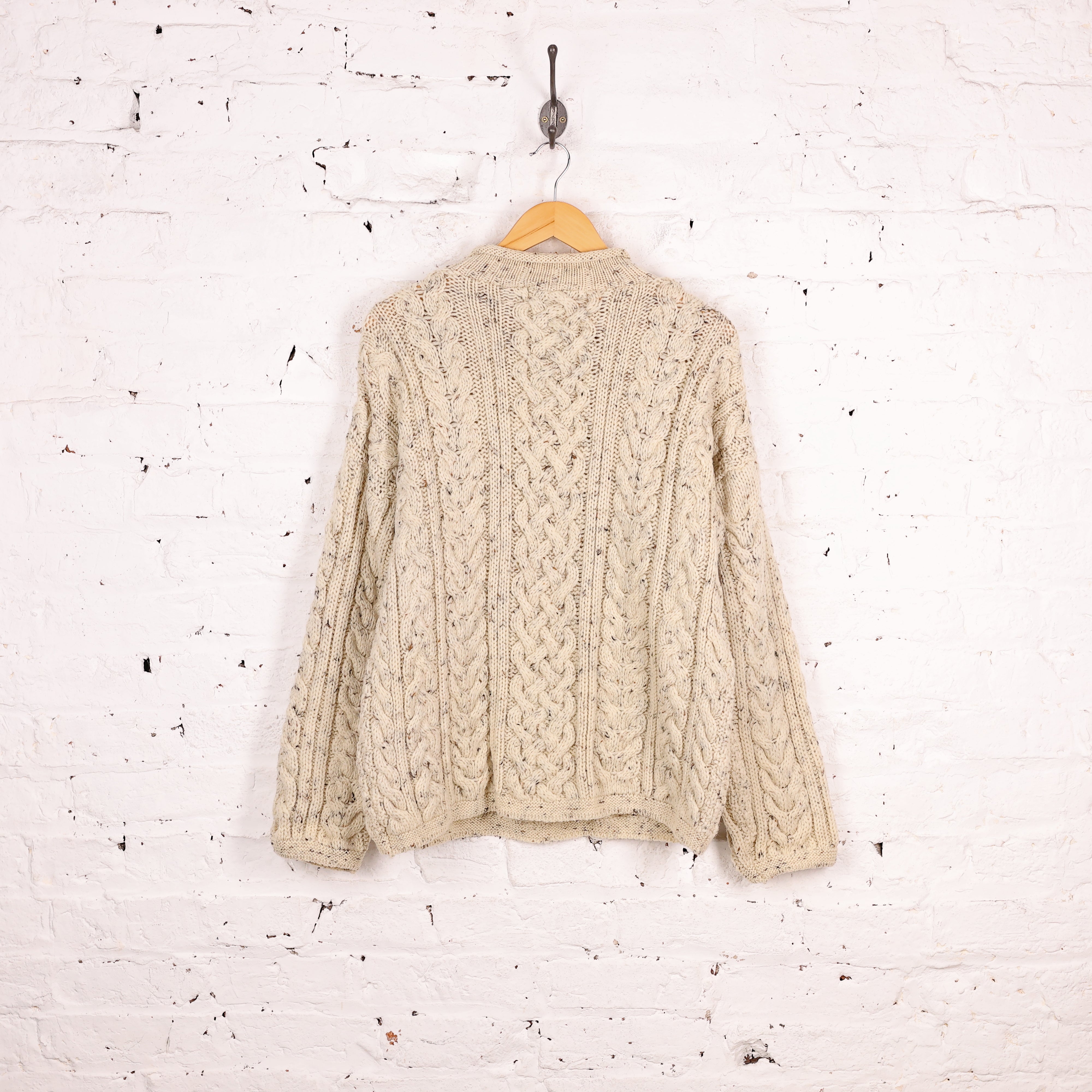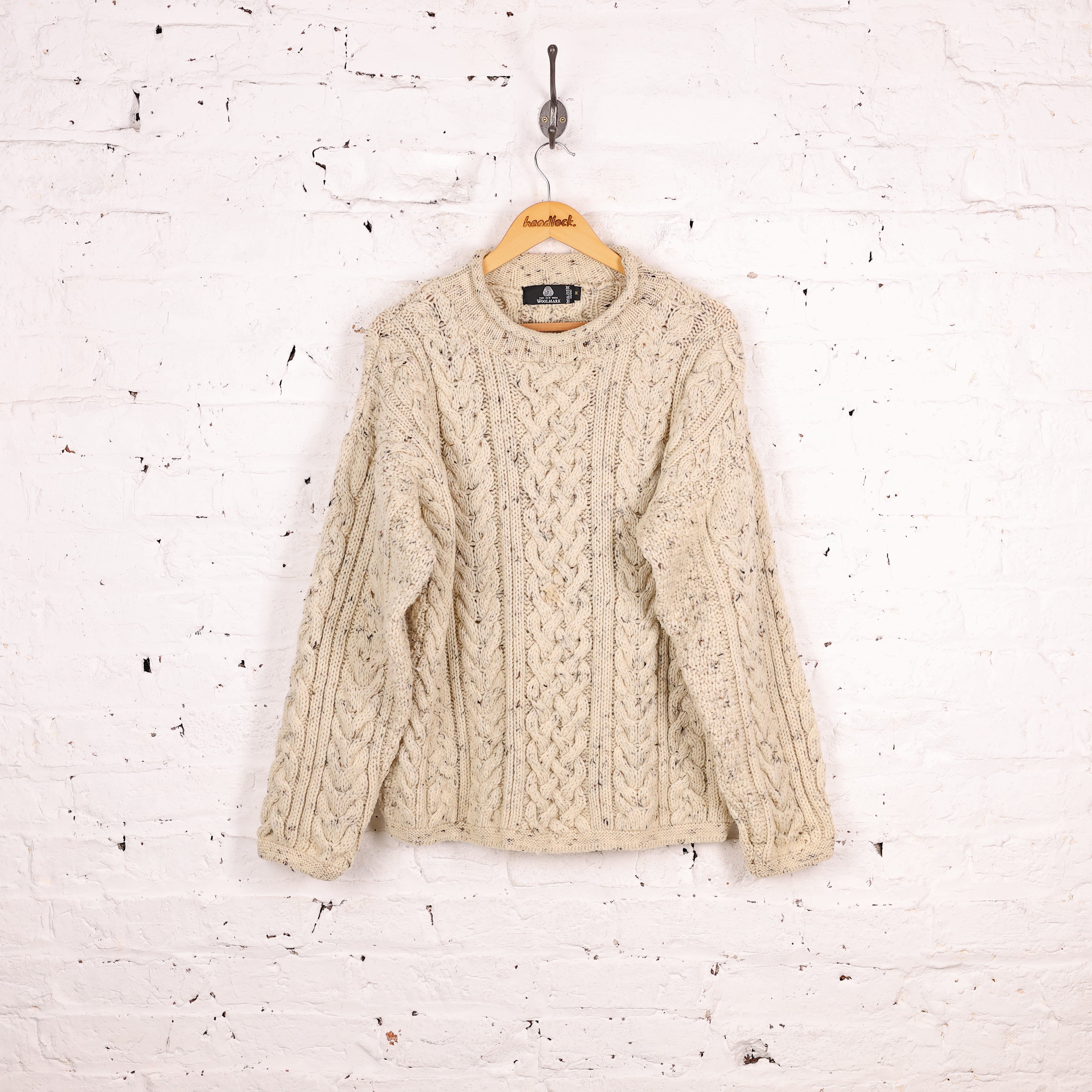 Oatmeal Aran Wool Roll Neck Knit Jumper - Cream - M