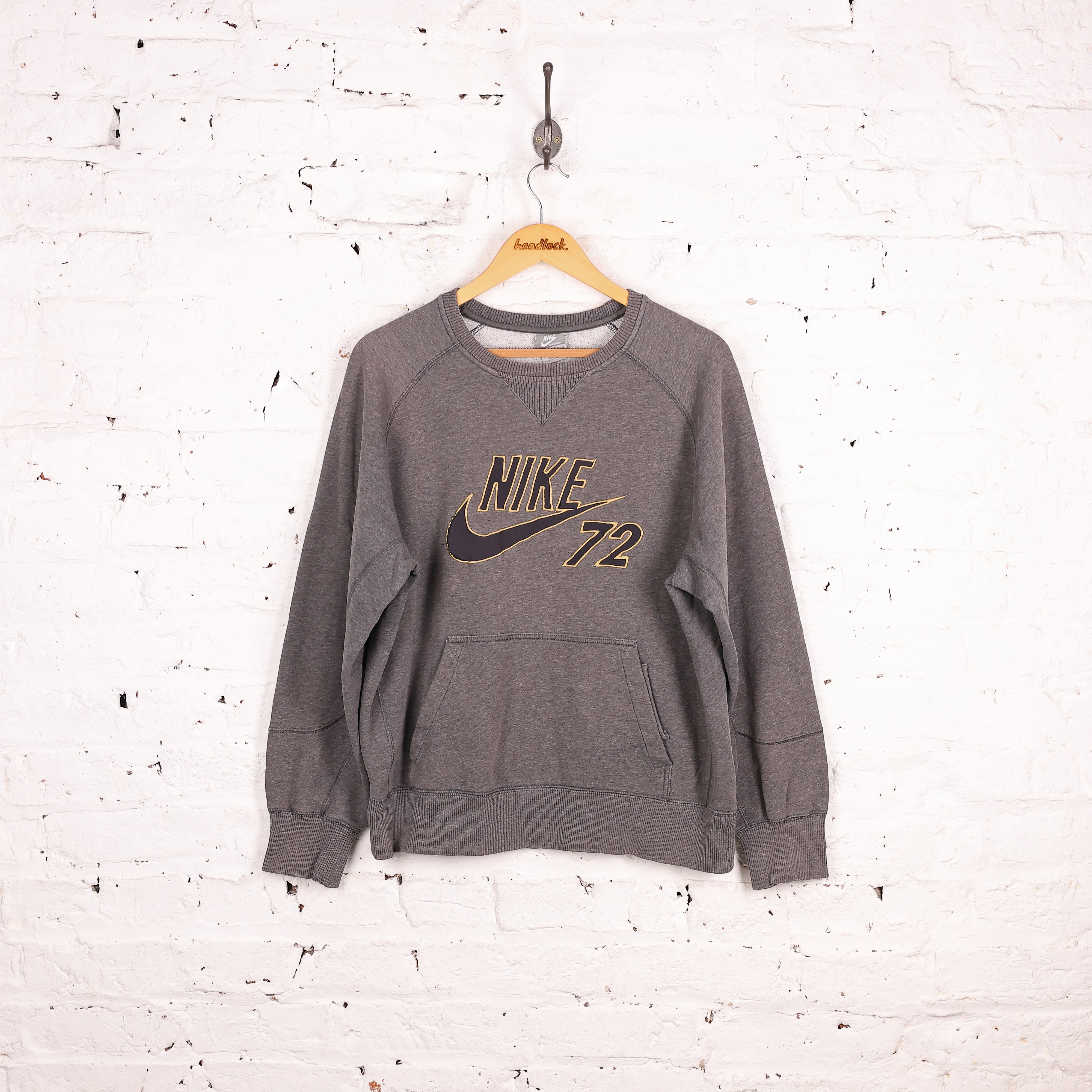 Good condition. Nike spell out sweatshirt in grey with stitched logo across the chest and front pocket.