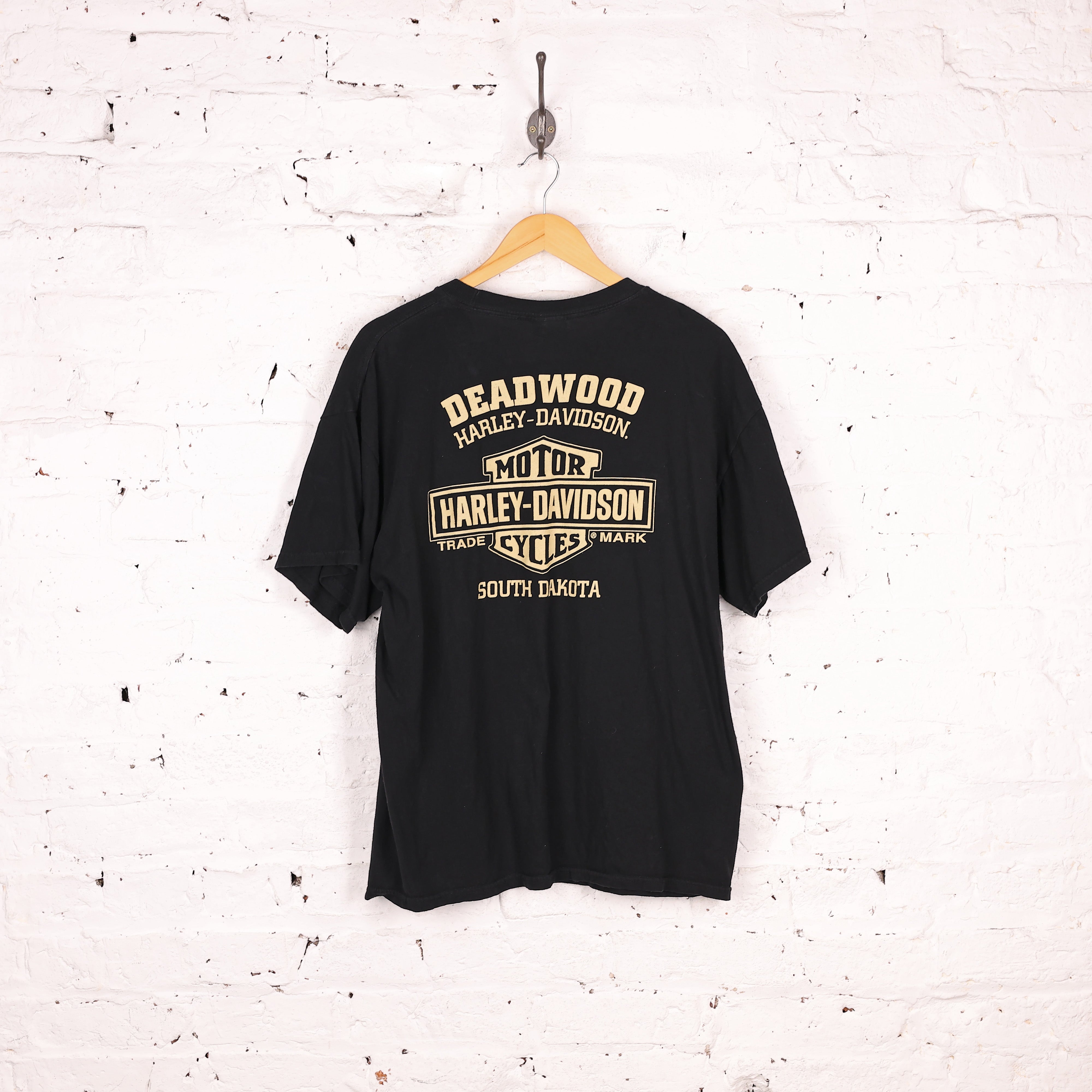 Good condition. Harley Davidson, Deadwood, South Dakota T shirt in black.