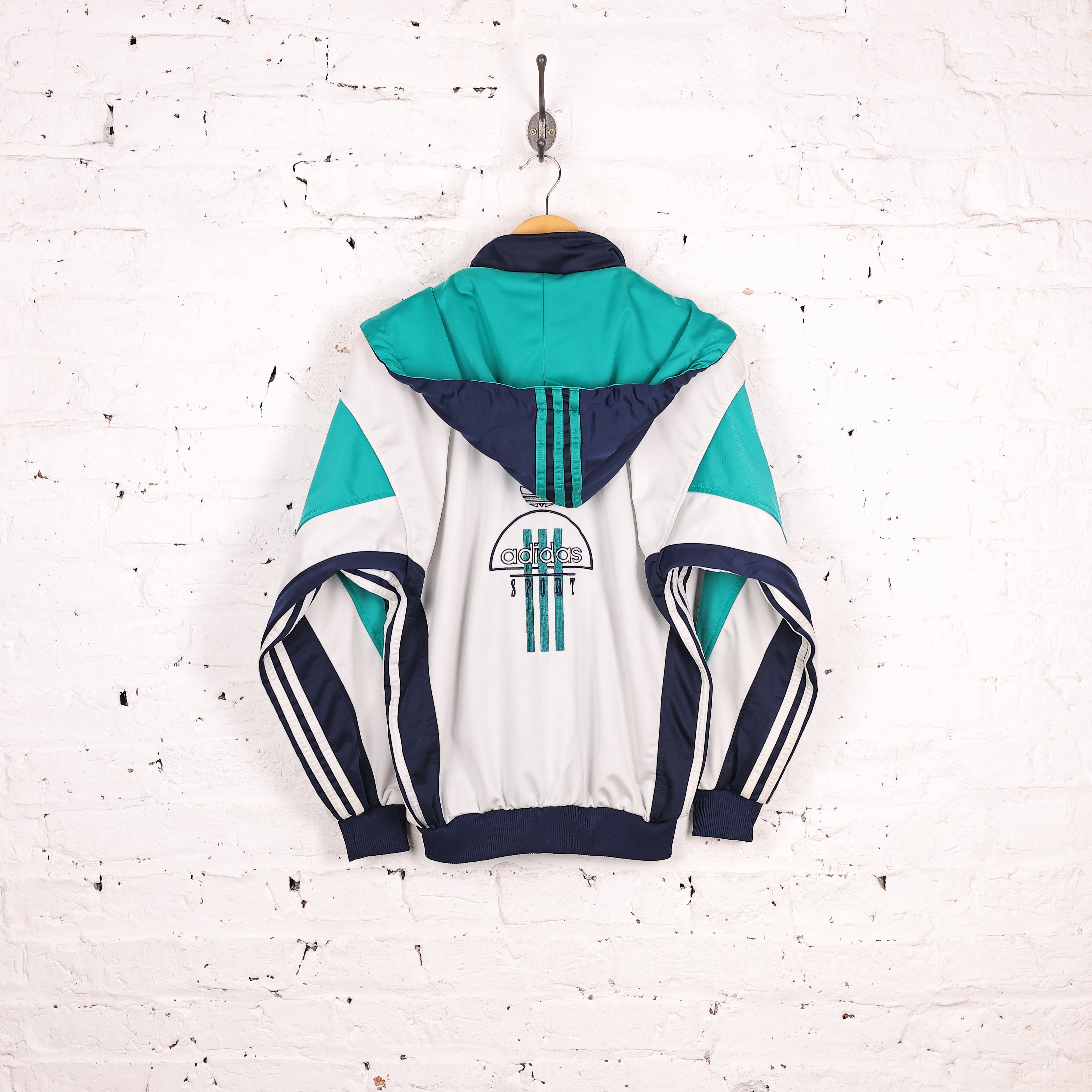 Adidas Sport Hooded 90s Tracksuit Top Jacket - Blue - S