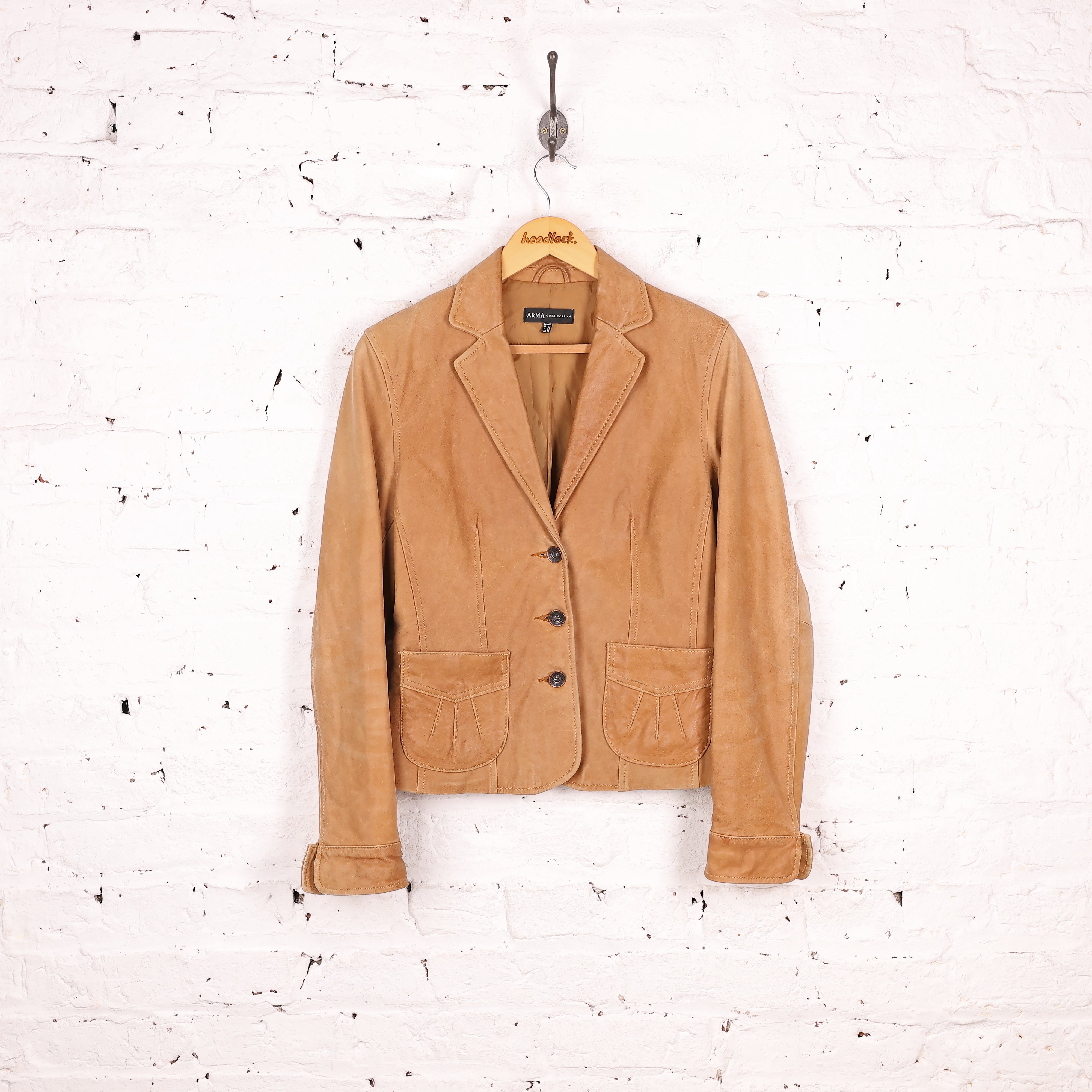 Women's Y2K Leather Blazer Jacket - Brown - Women's L
