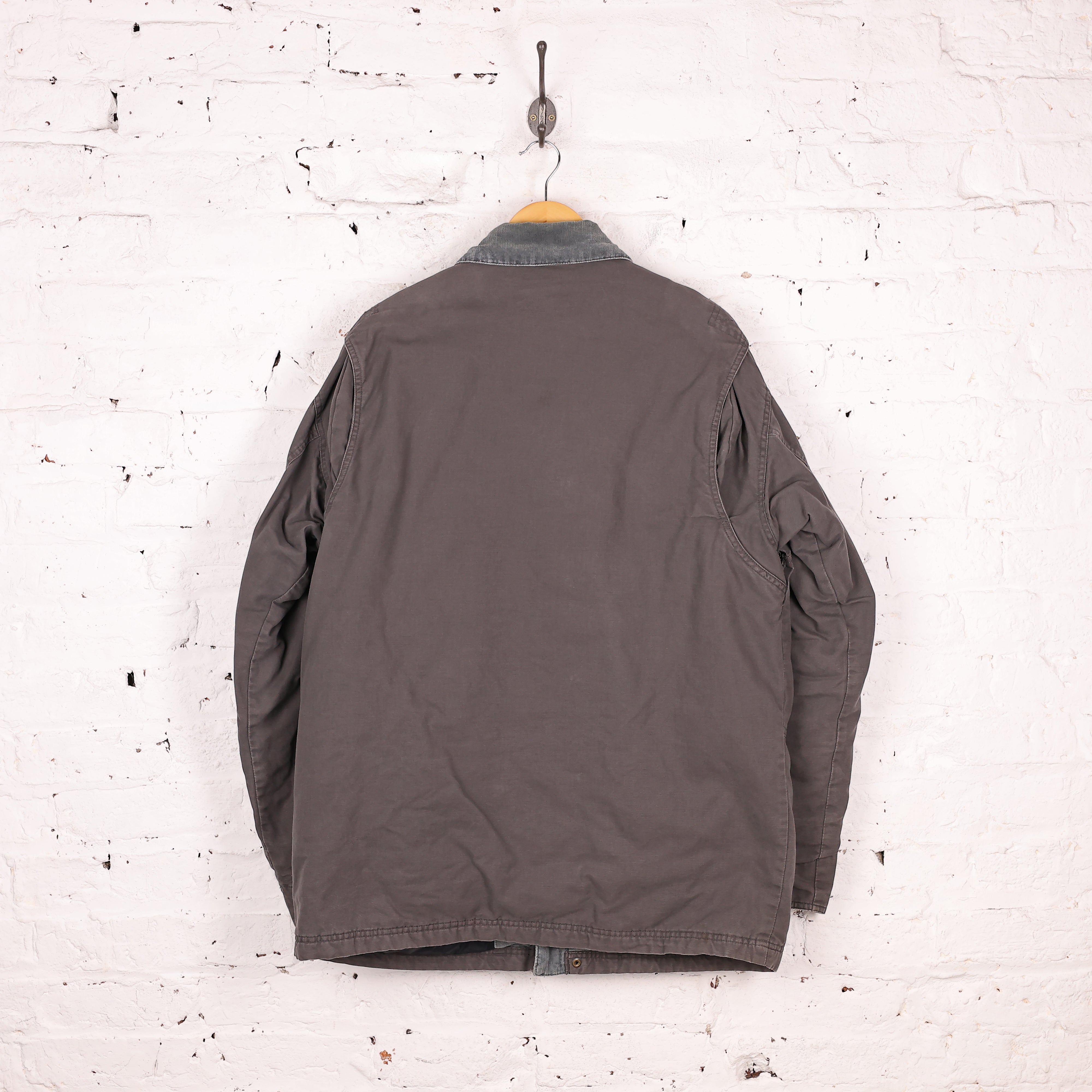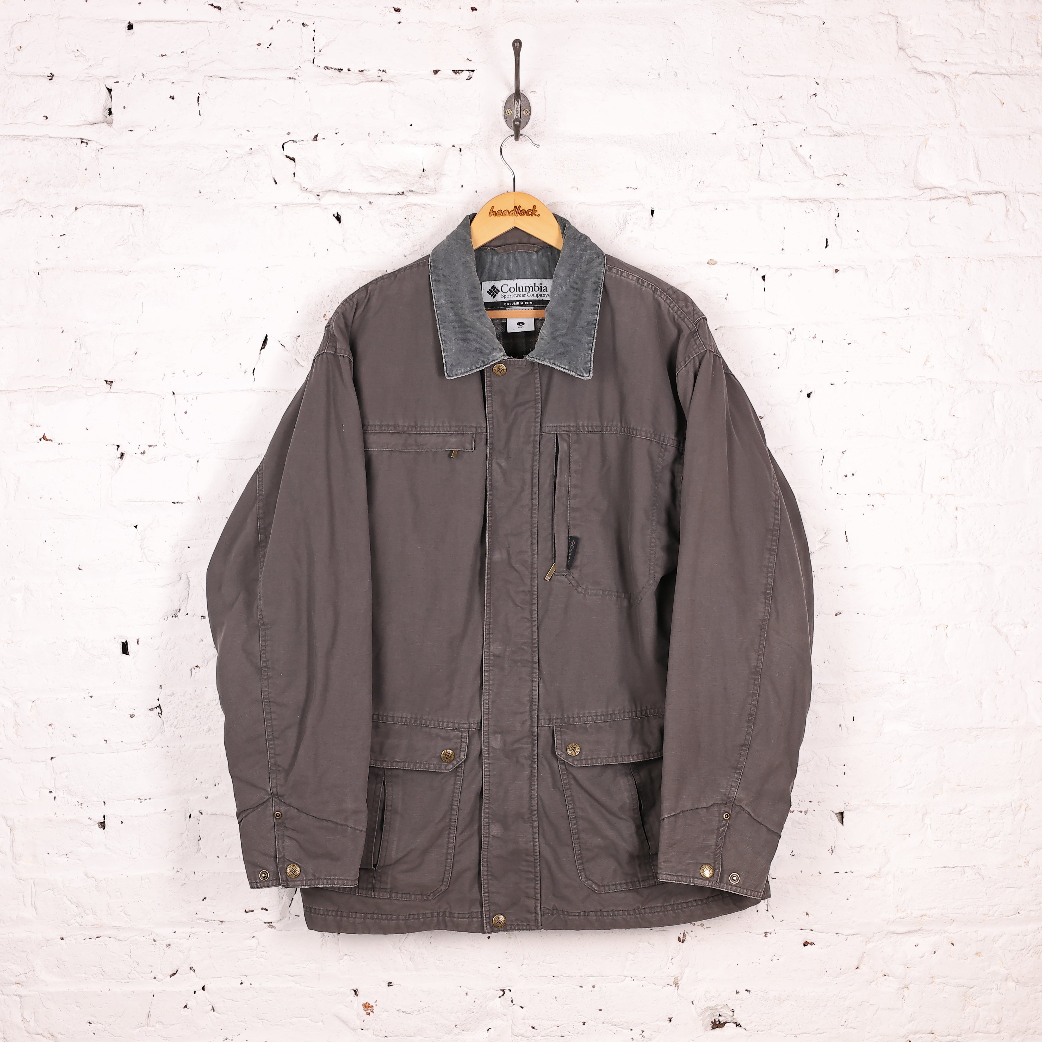 Good condition. Columbia work jacket with cord collar, four outer pockets and fleece lining.