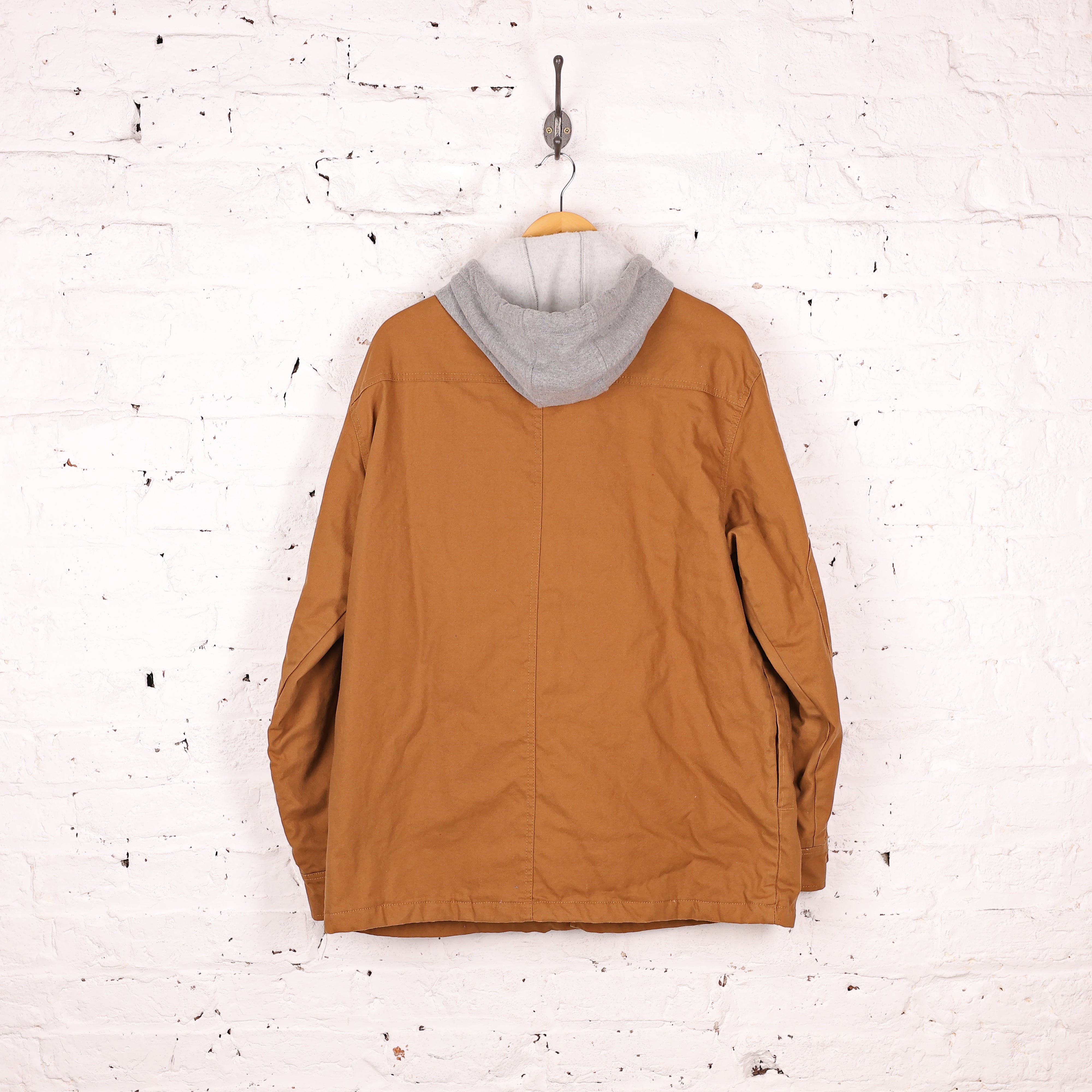 Excellent condition. Dickies work jacket with quilt lining, cotton hood and inner zipper, popper buttons and side pockets.