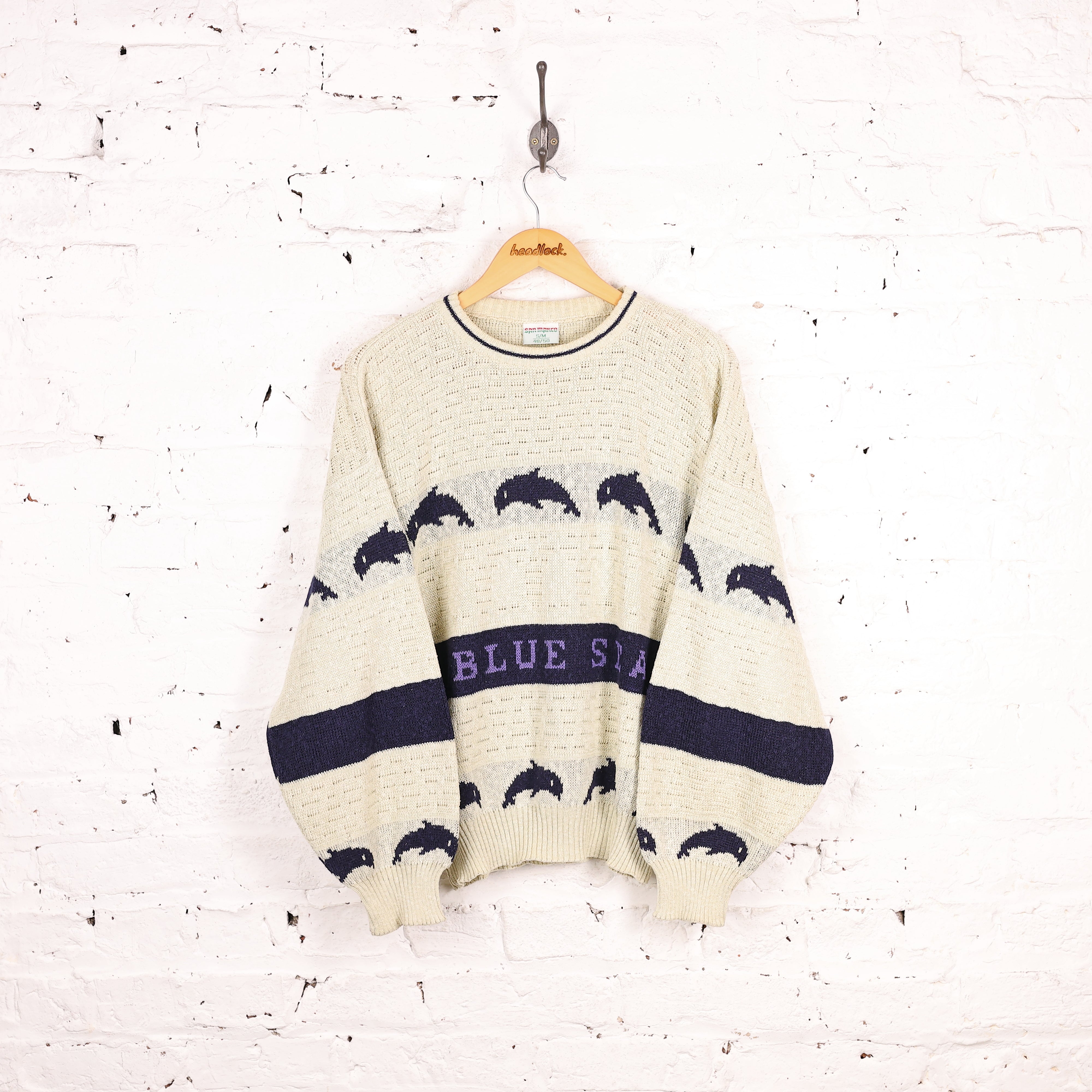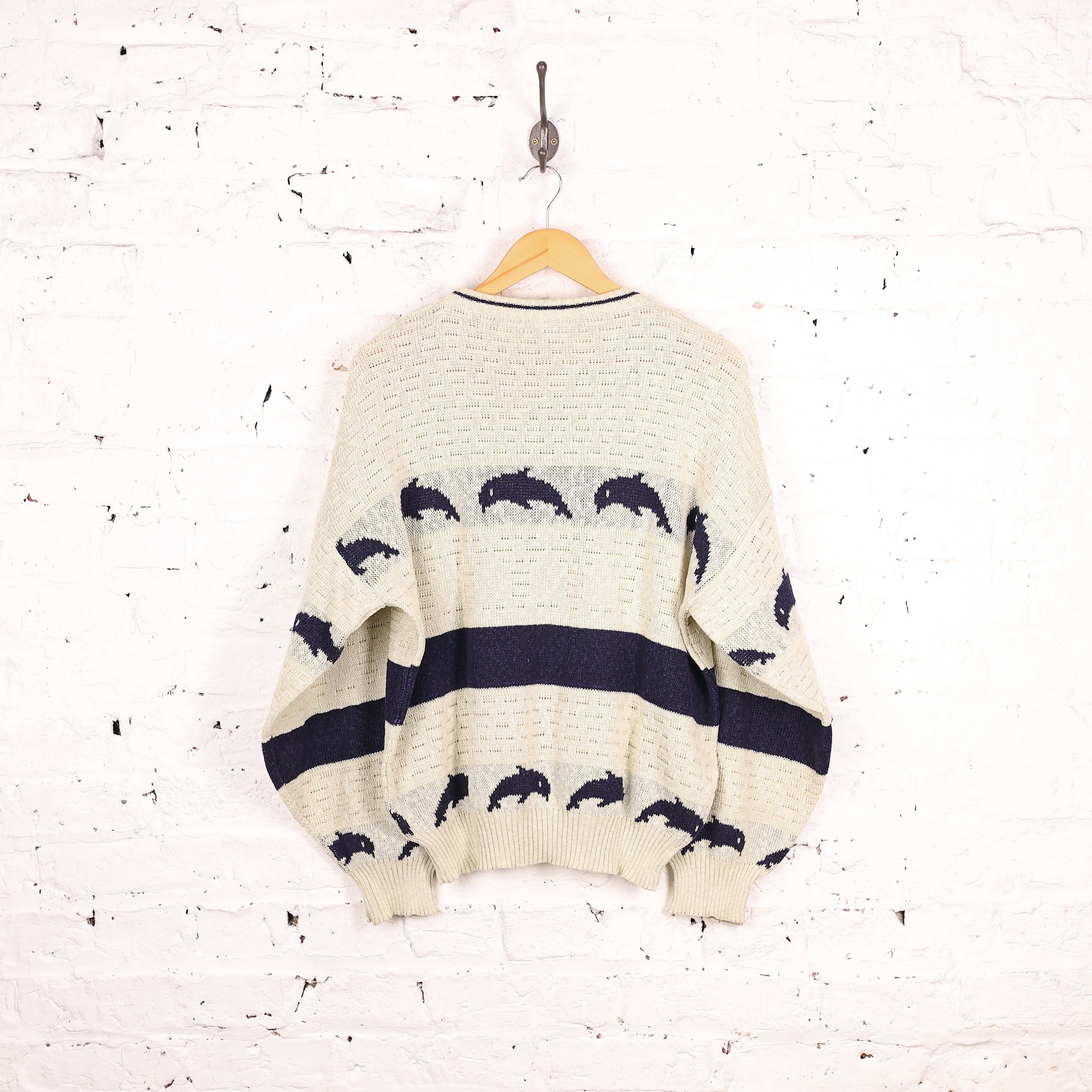 90s Dolphin Pattern Knit Jumper - Cream - M