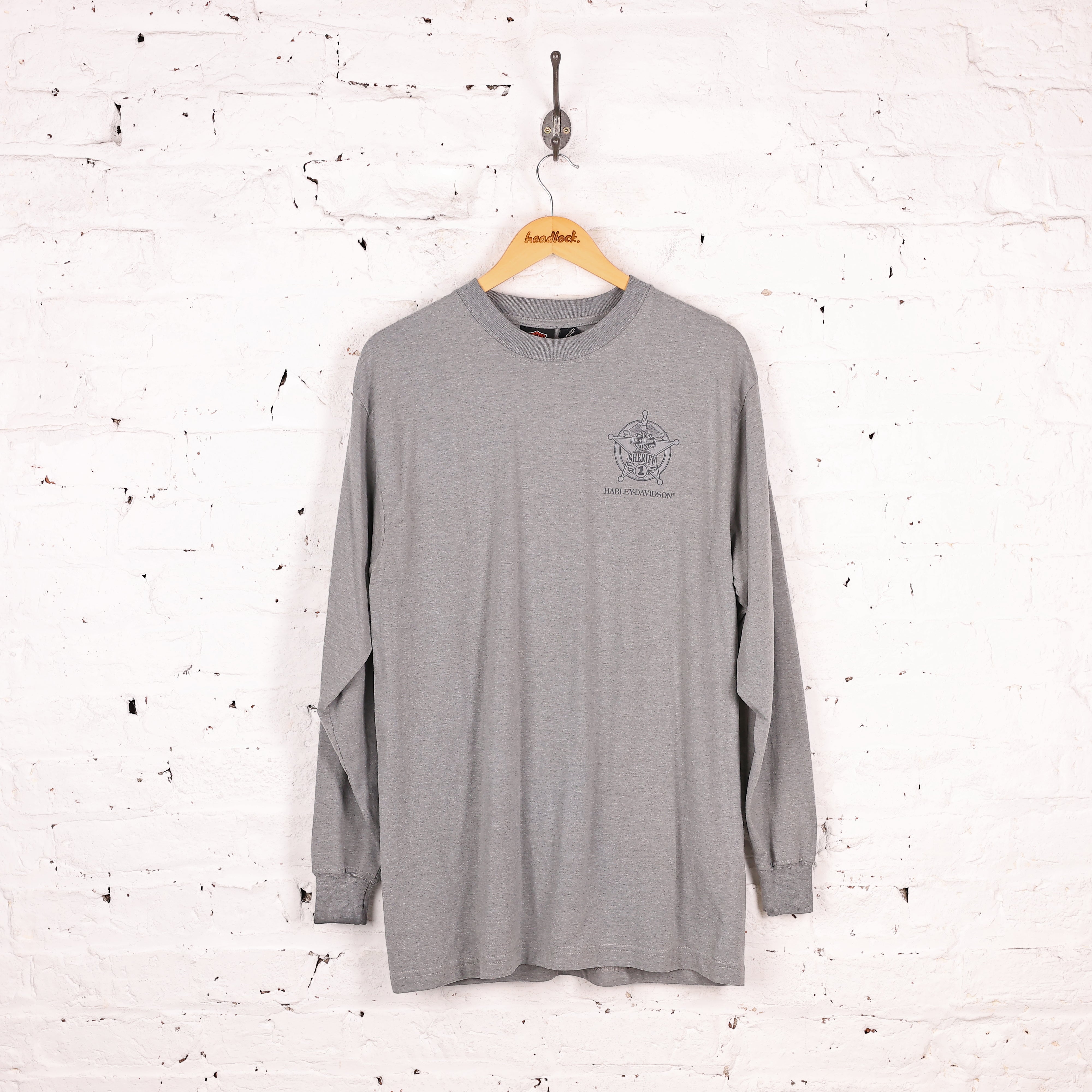 90s Harley Davidson Long Sleeve Sheriff T Shirt - Grey - L