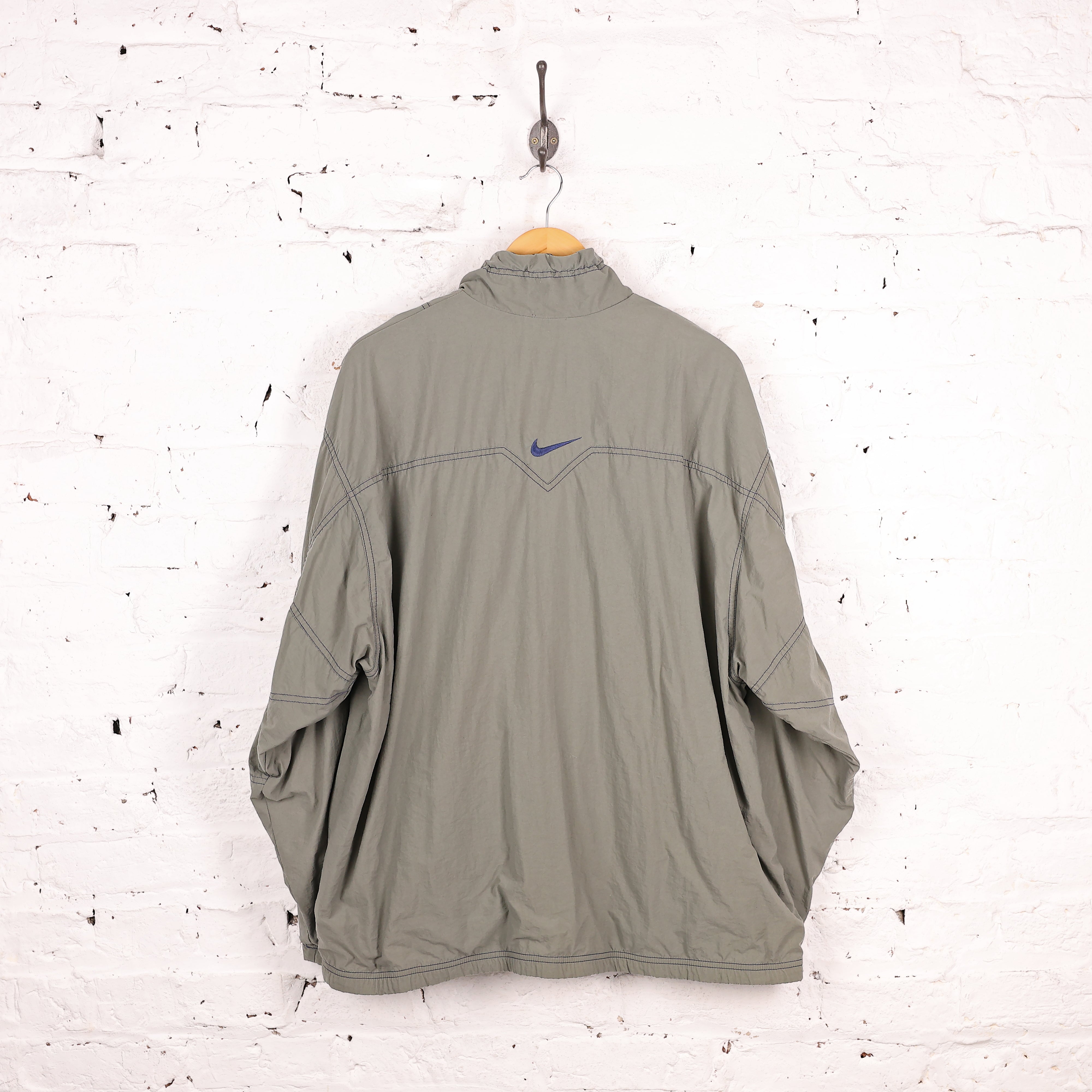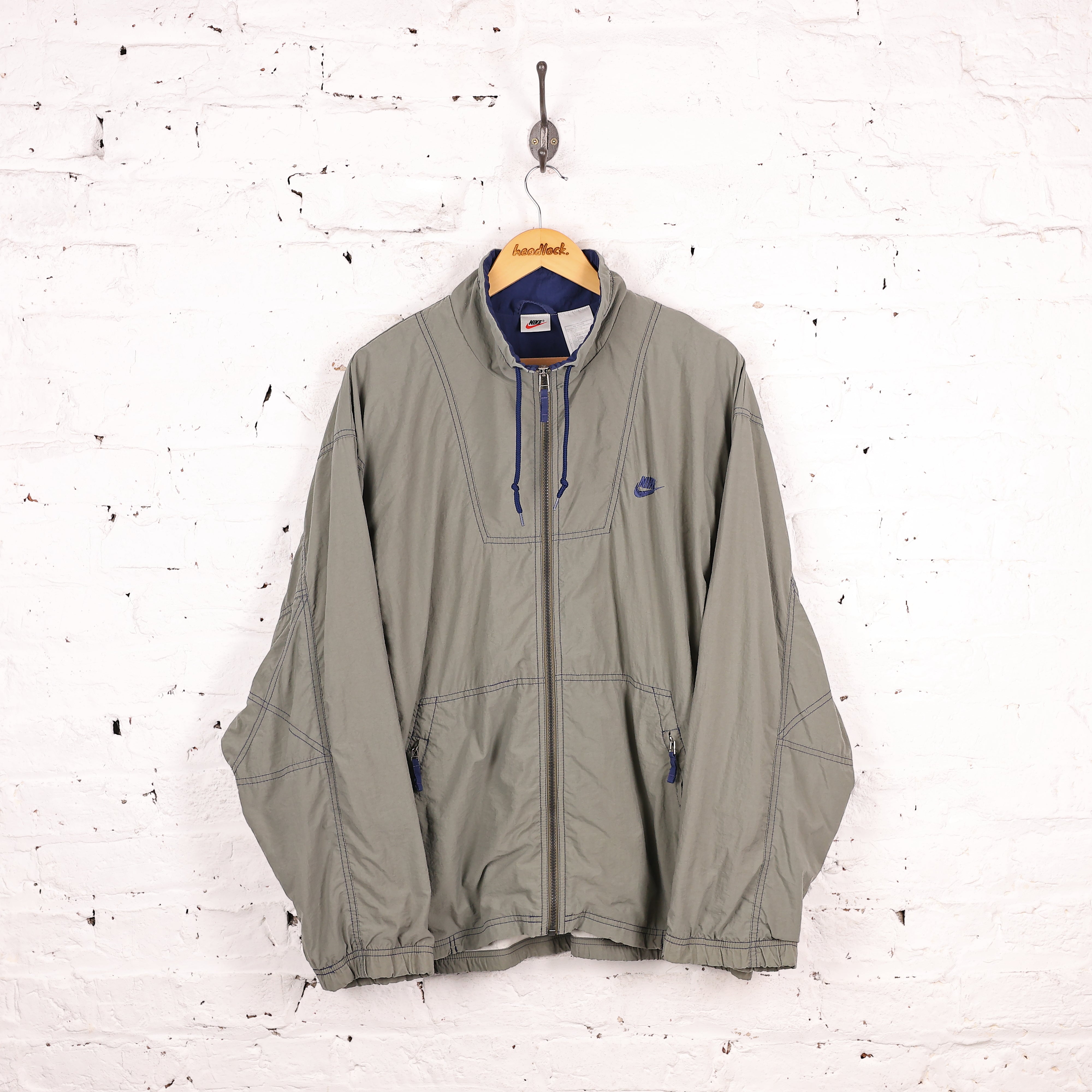 Good condition. Nike 90s tracksuit top in green with stitched logo on the chest, two pockets and drawstring collar. In matt green and blue colour way.