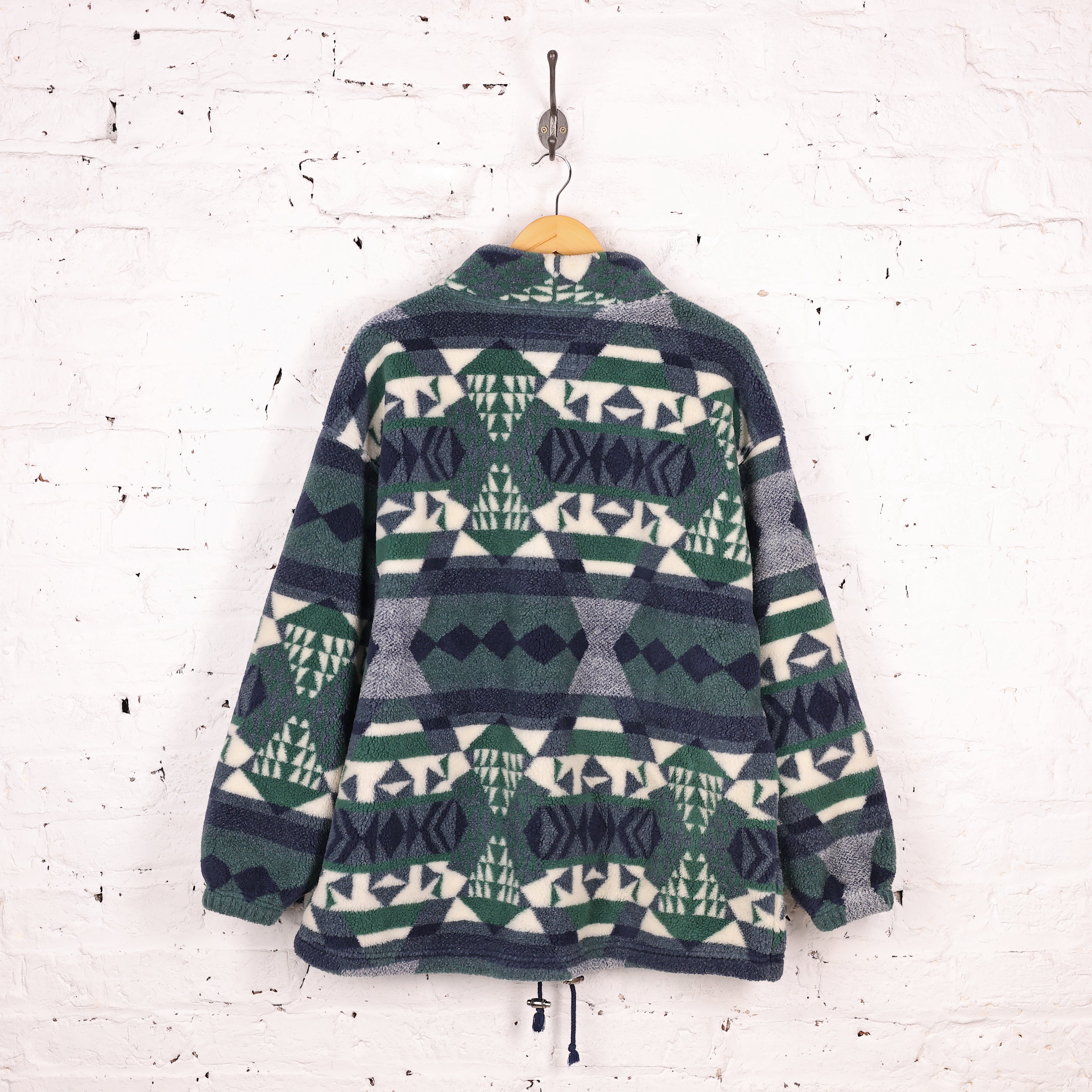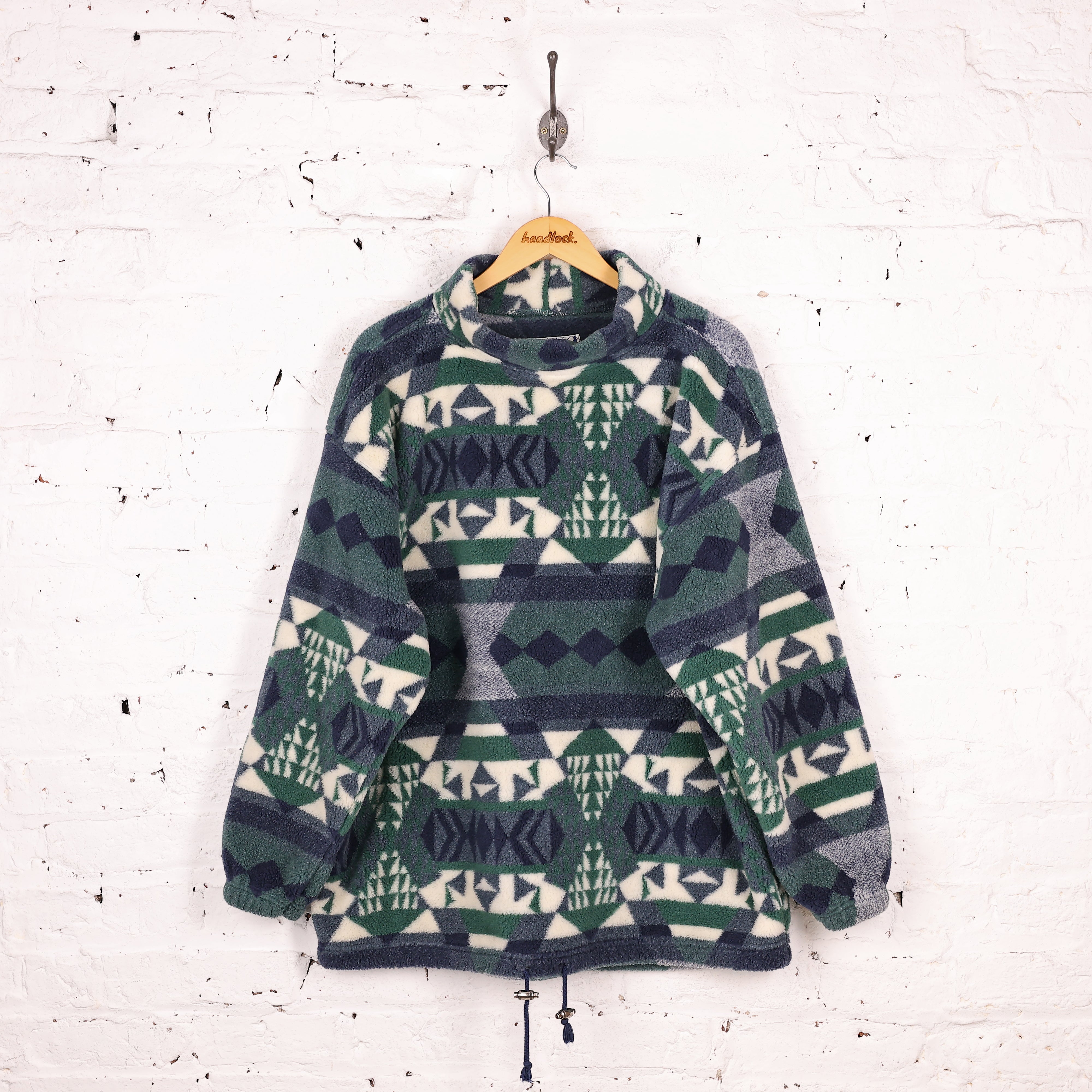 Good condition. 90s patterned fleece in blue, green and white colours and with high neck.