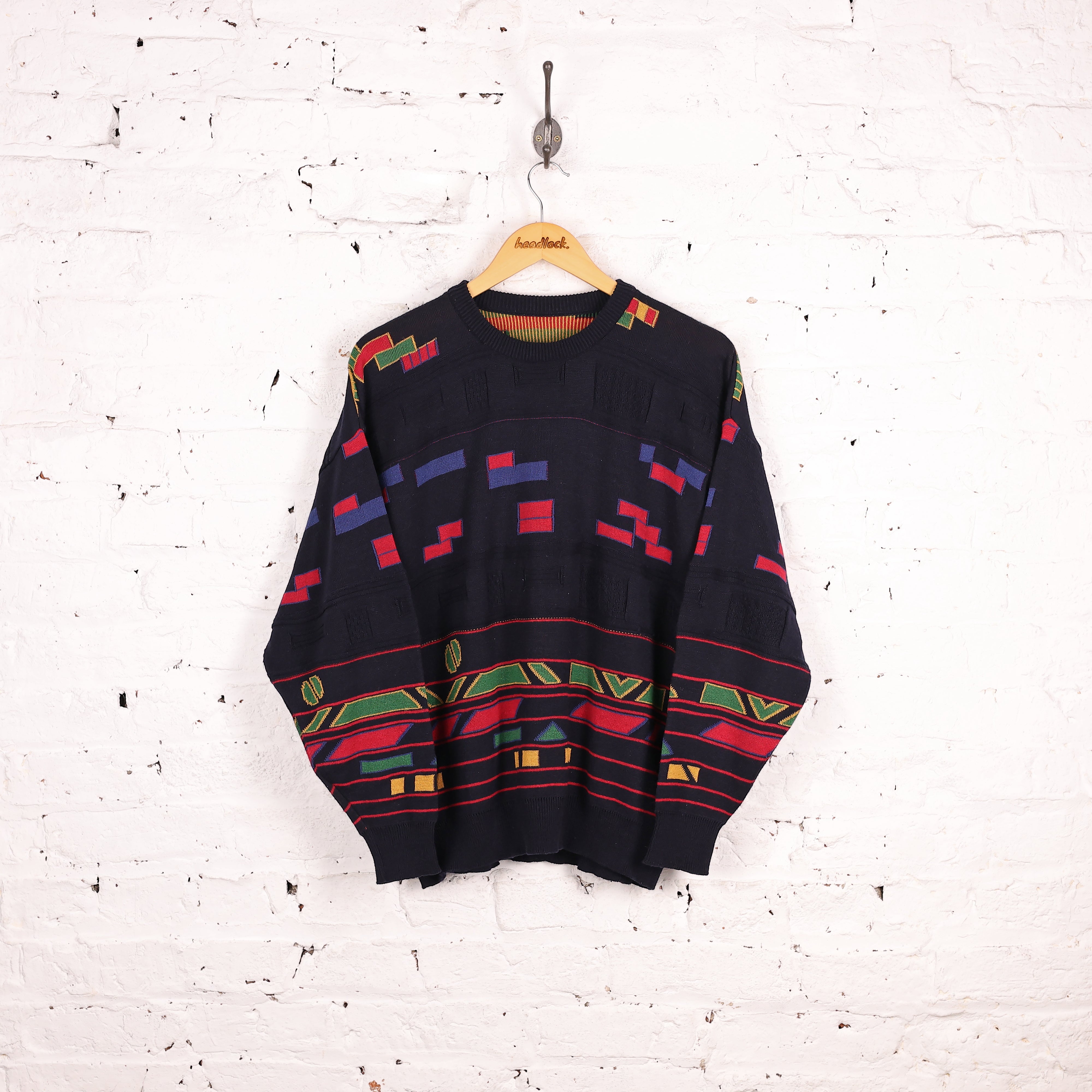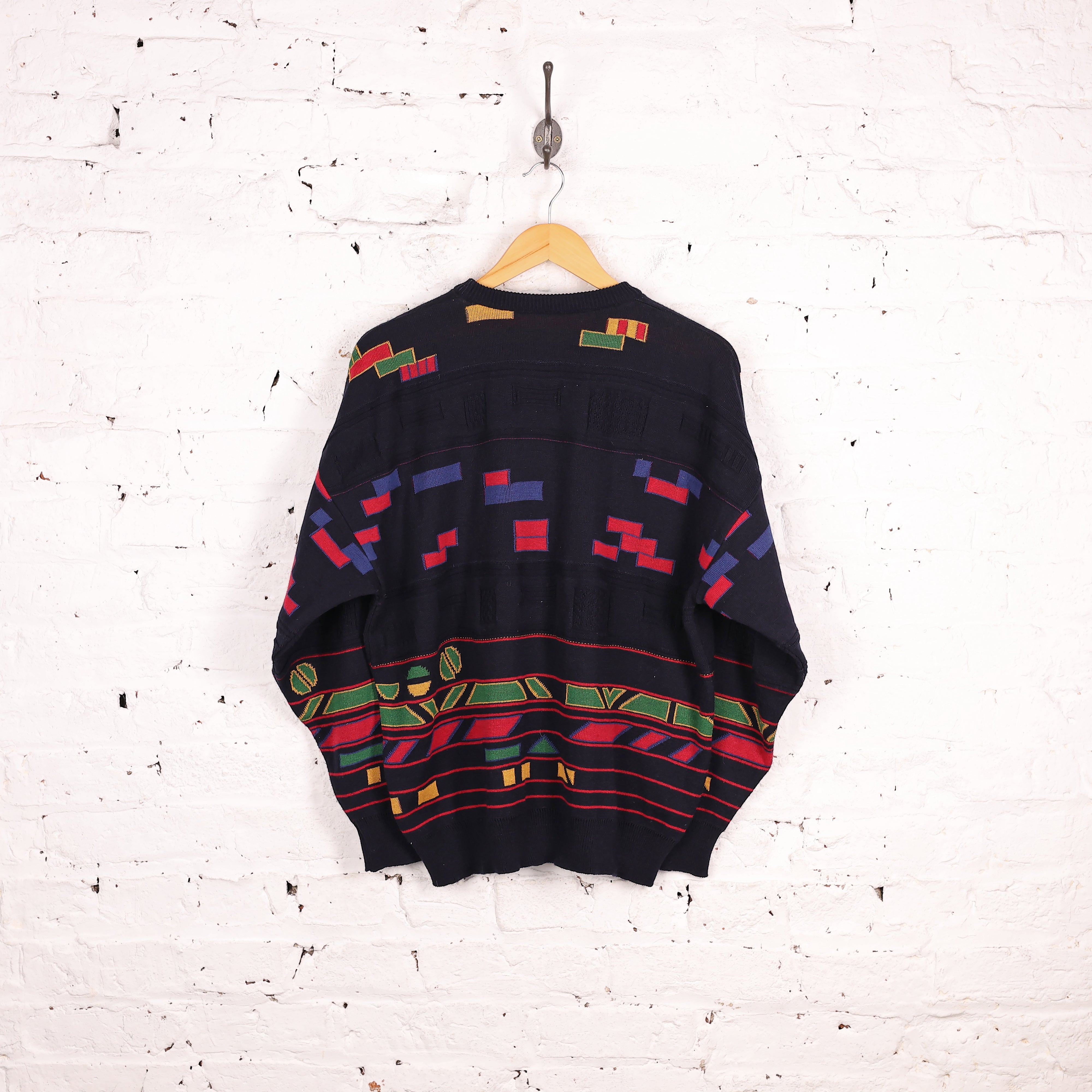 90s Pattern Knit Jumper - Blue - M