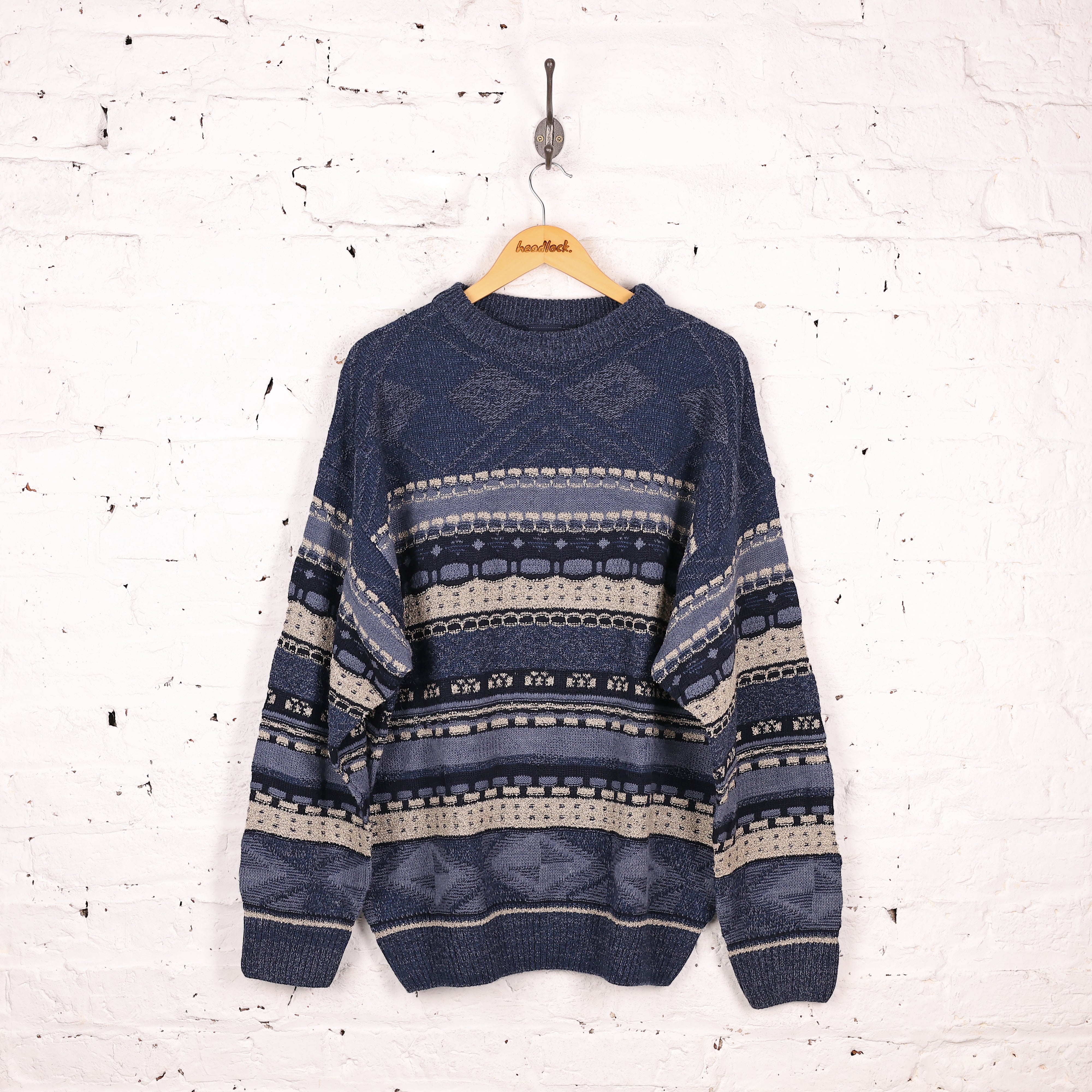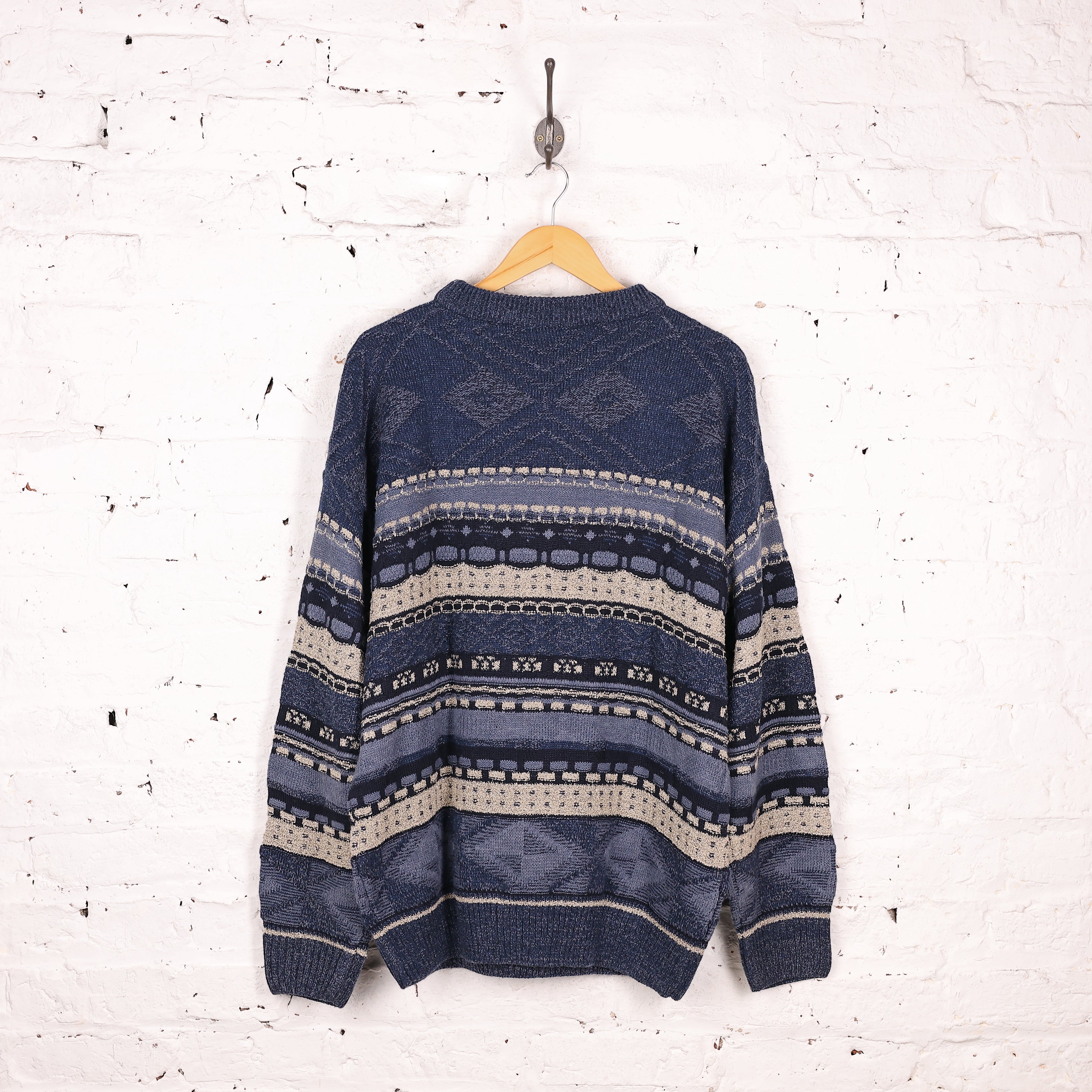 90s Pattern Knit Jumper - Blue - XL - XL / Blue is sold. Got to be fast 🔥