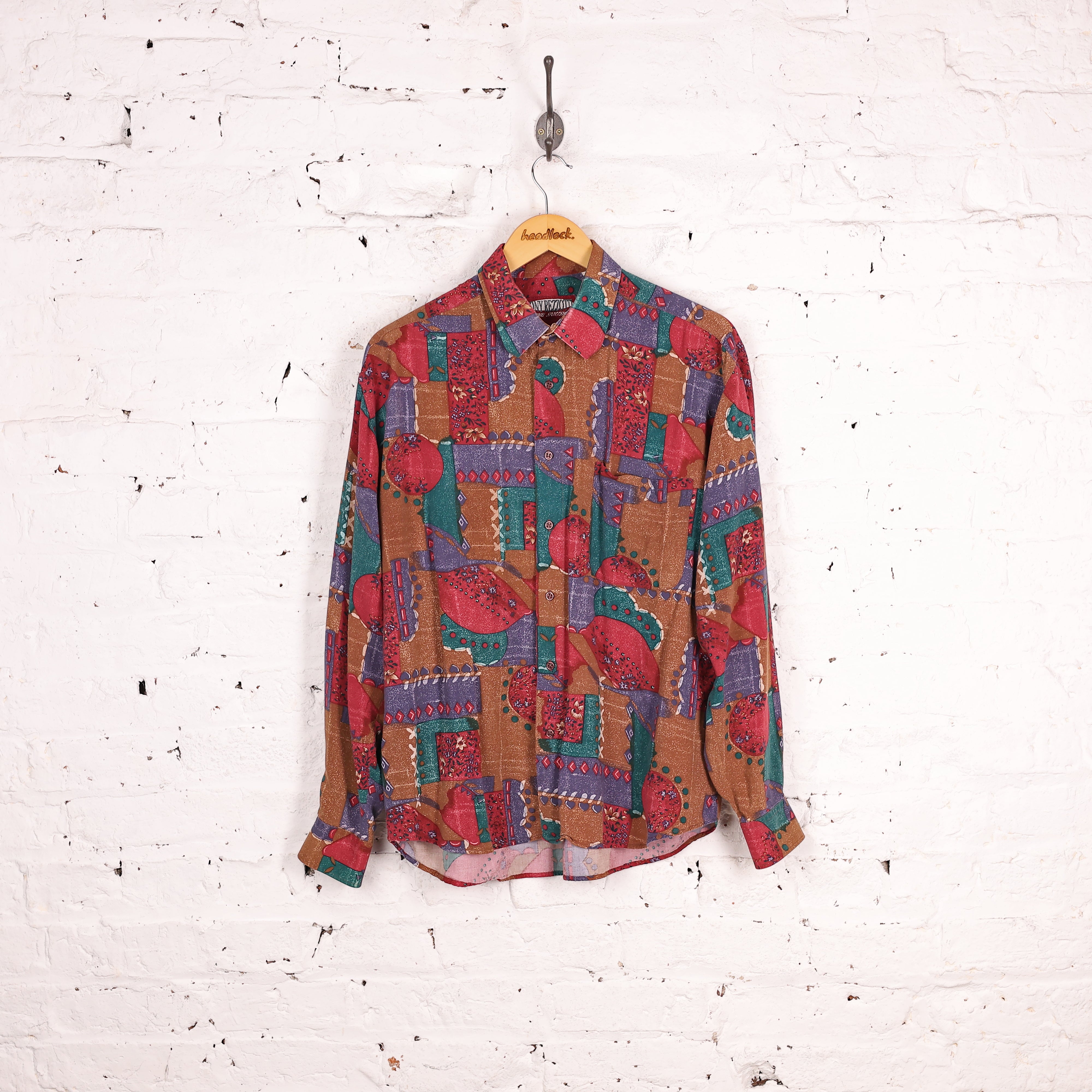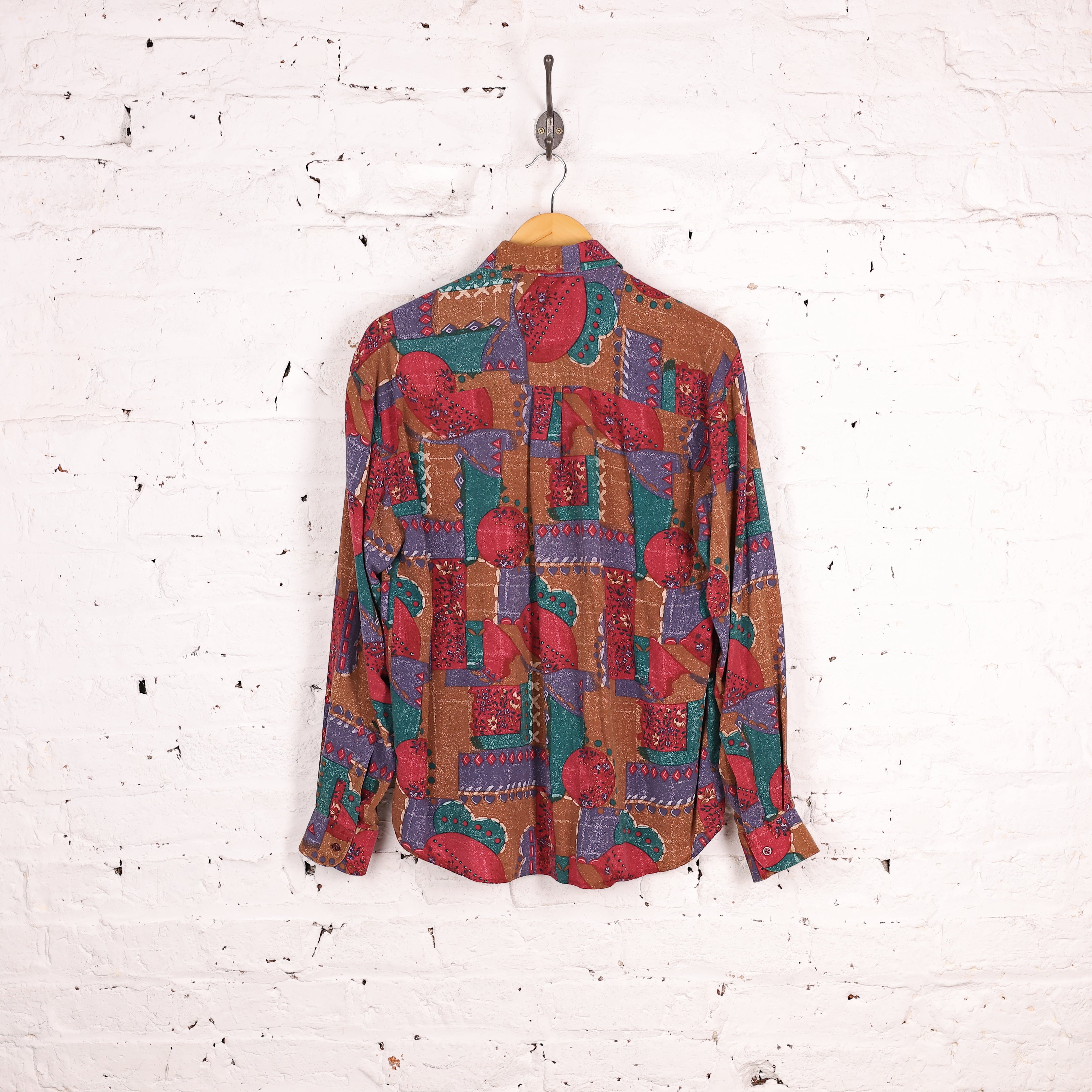 Good condition. 90s long sleeve pattern shirt in brown, red, green and blue colours with chest pocket.