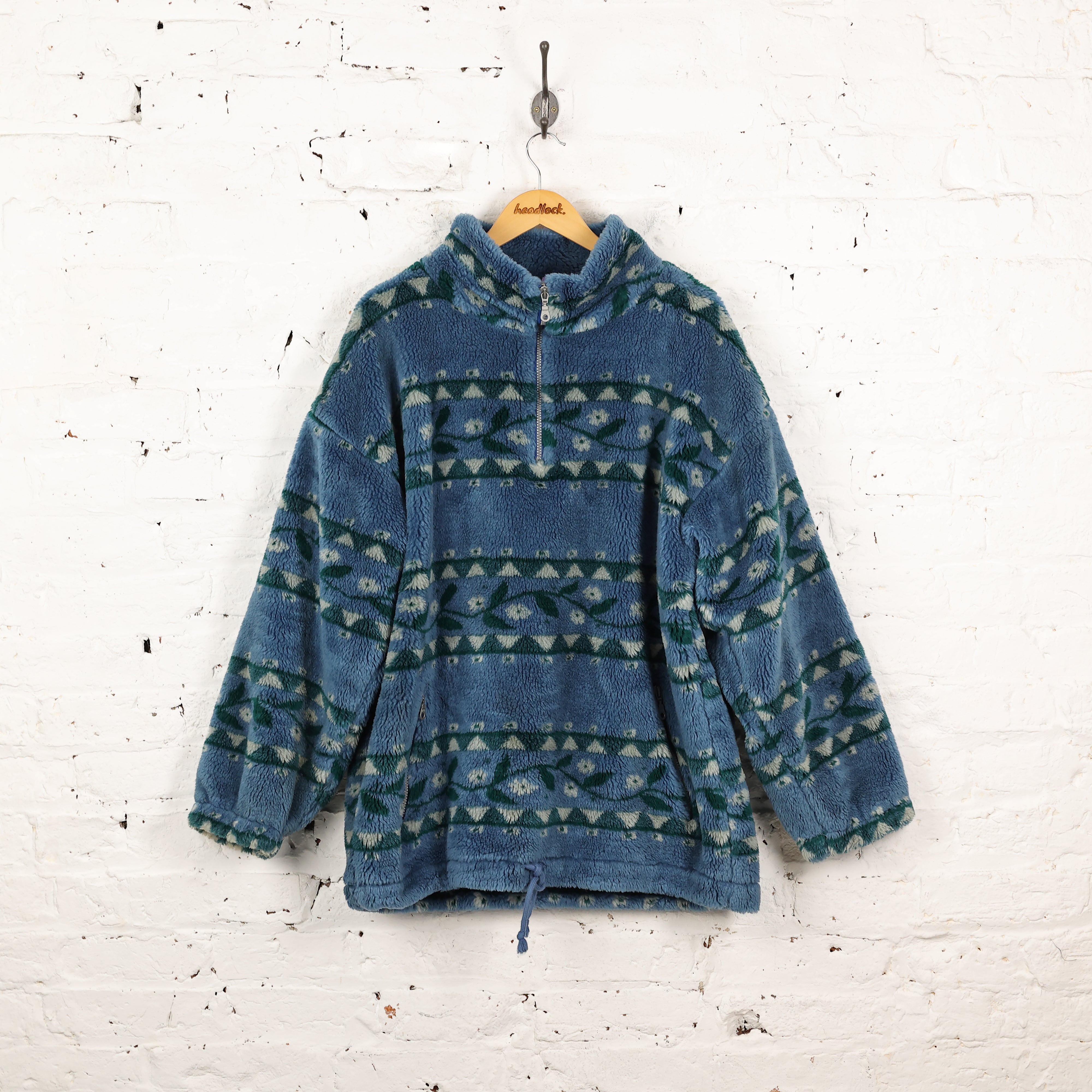 90s Pattern Thick 1/4 Zip Fleece - Blue - XL