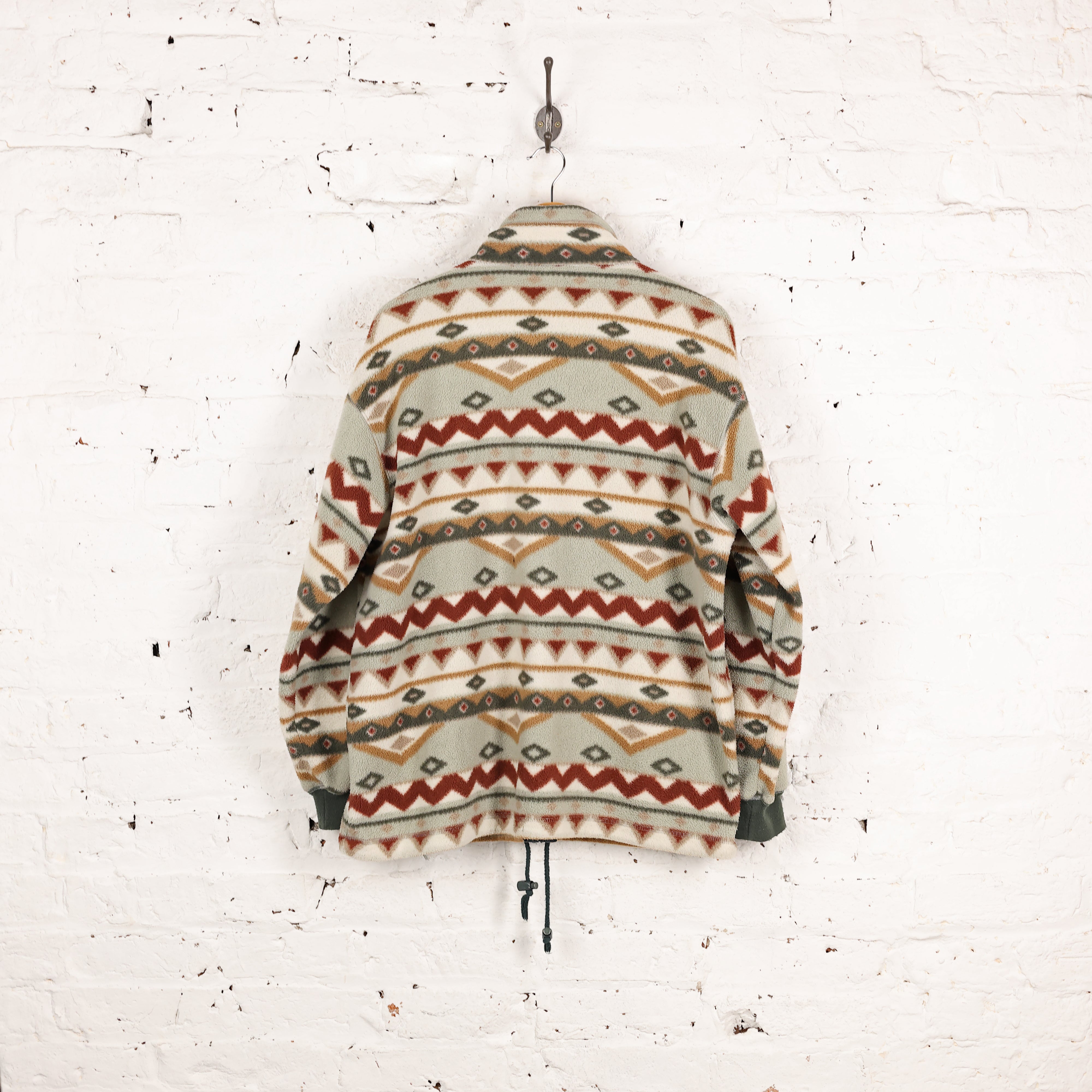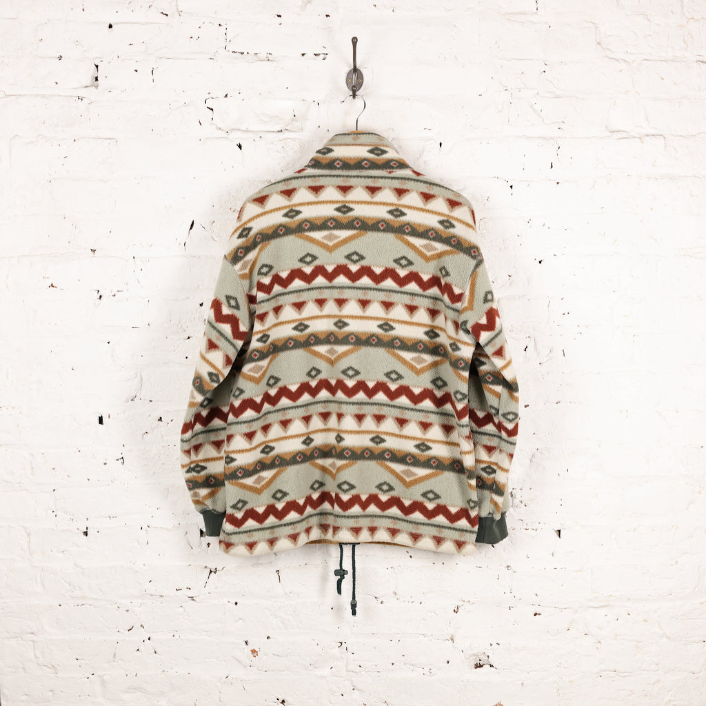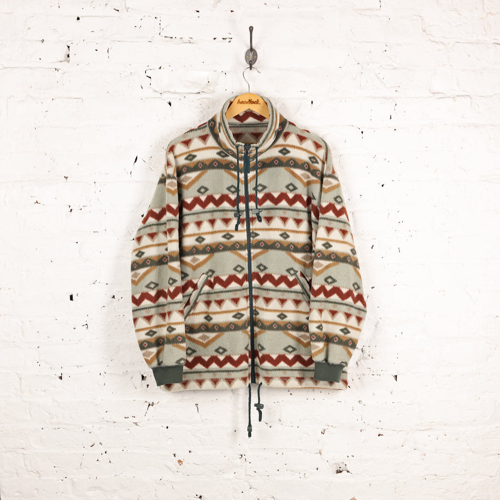 90s Pattern Zip Up Fleece Jacket - Beige - L