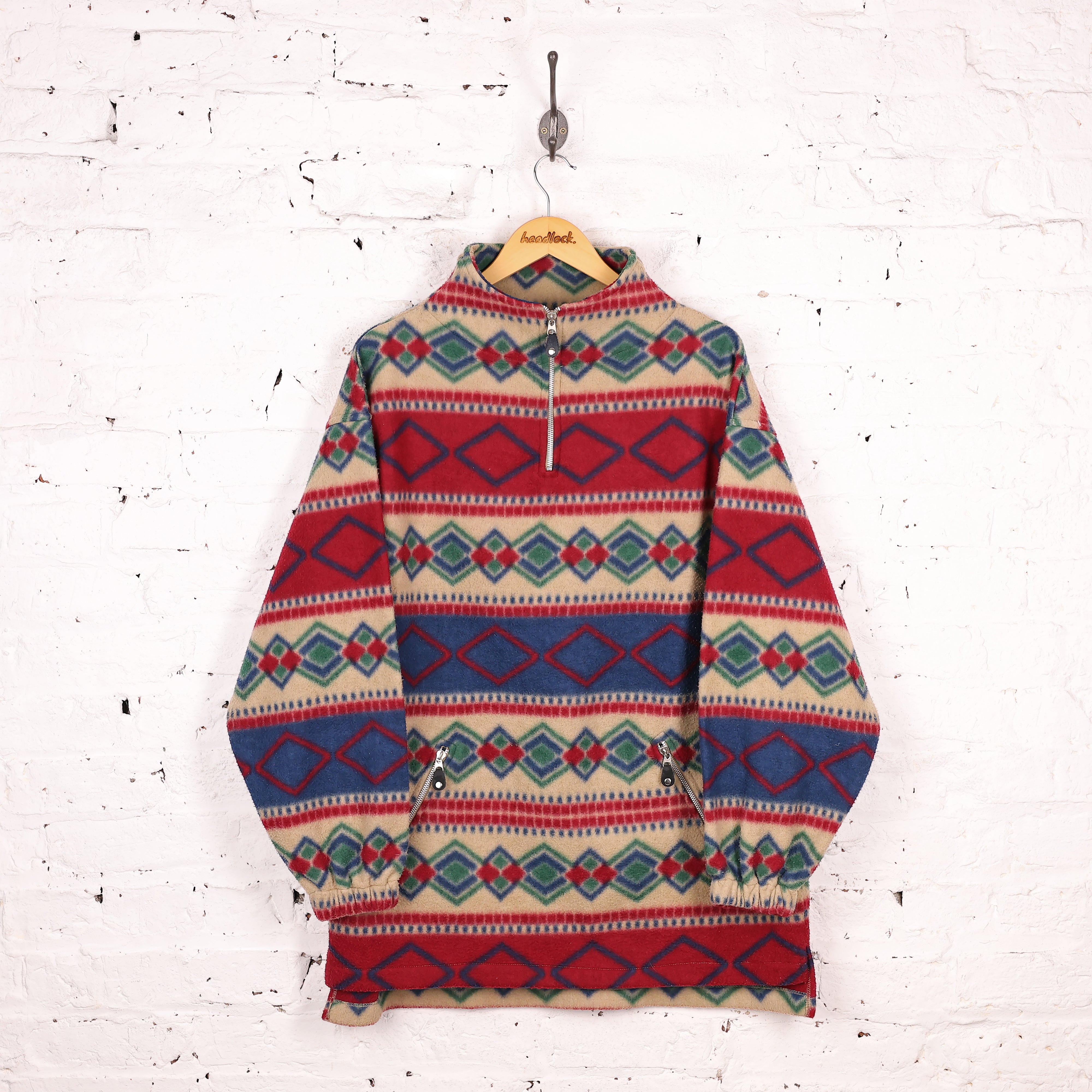 Good condition. 90s 1/4 zip pattern fleece in red, blue and beige colours and with two zip pockets.