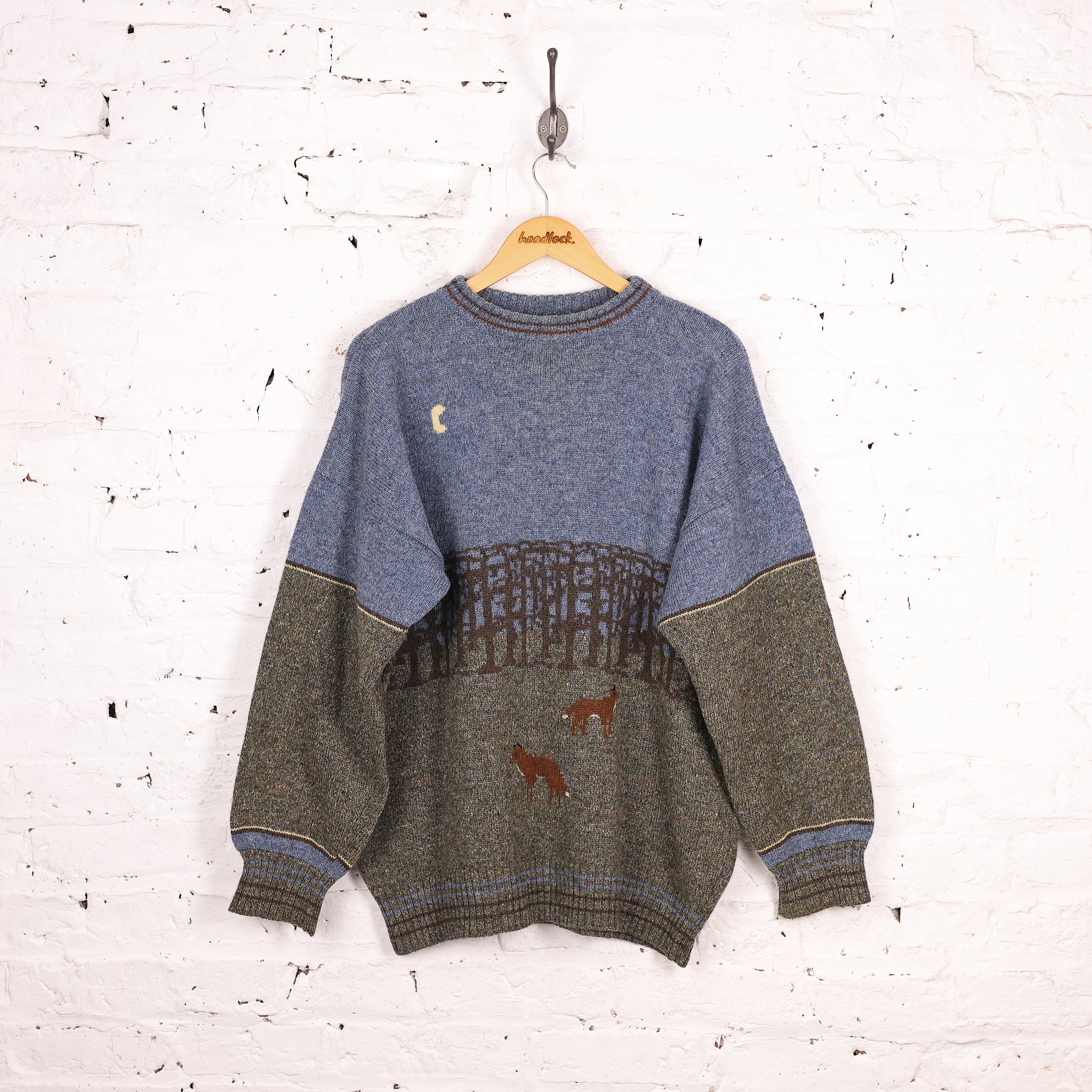 90s Picture Knit Fox Jumper - Blue - XL