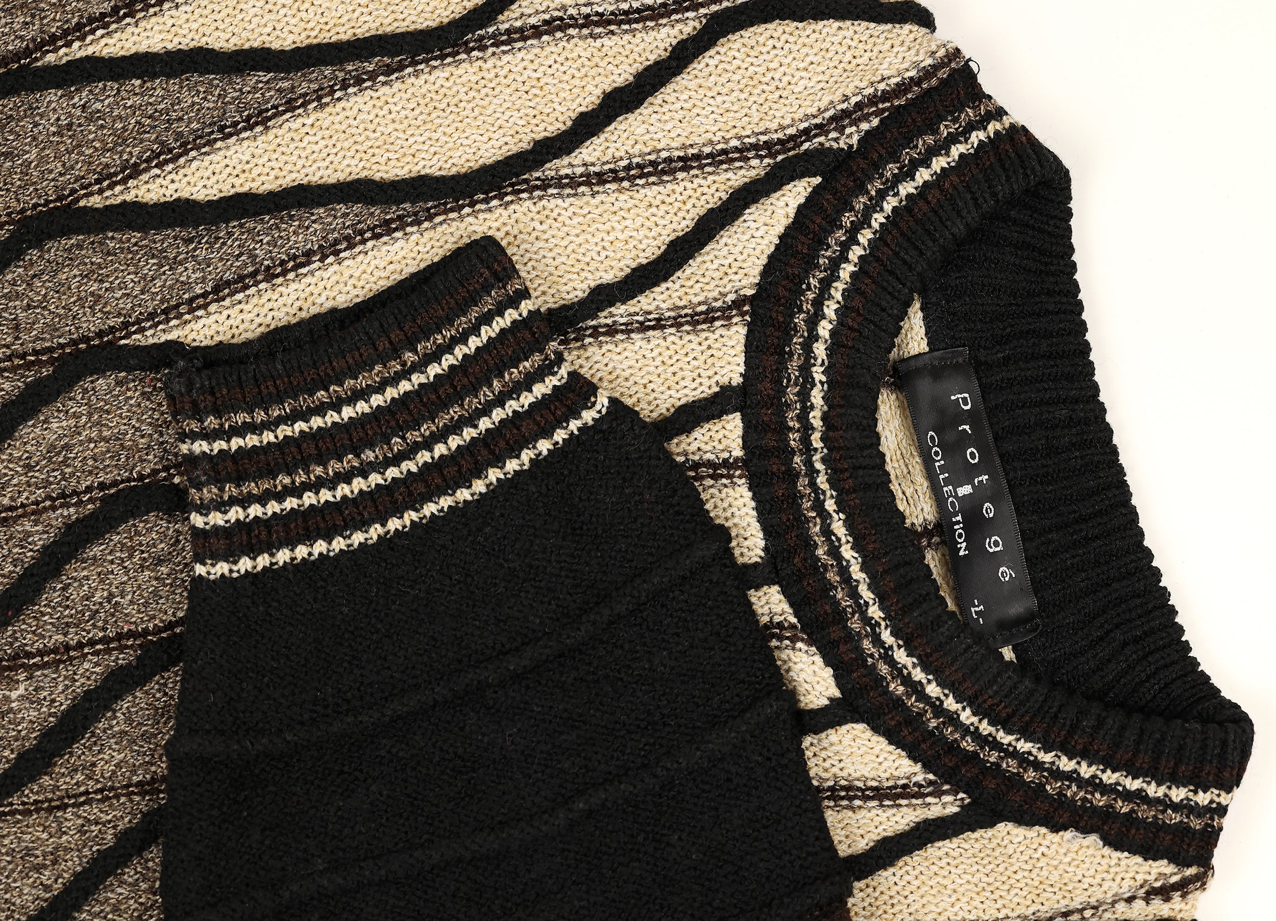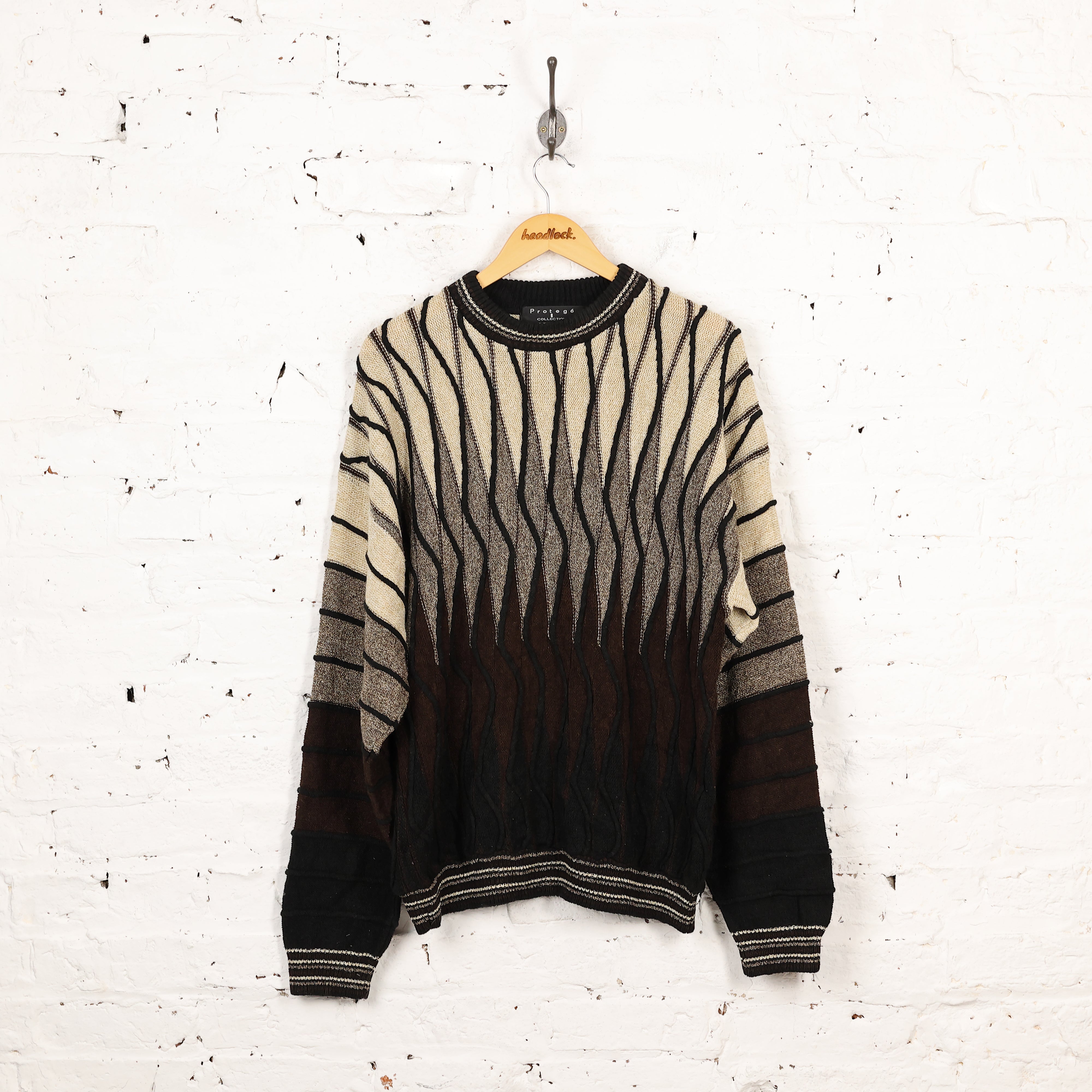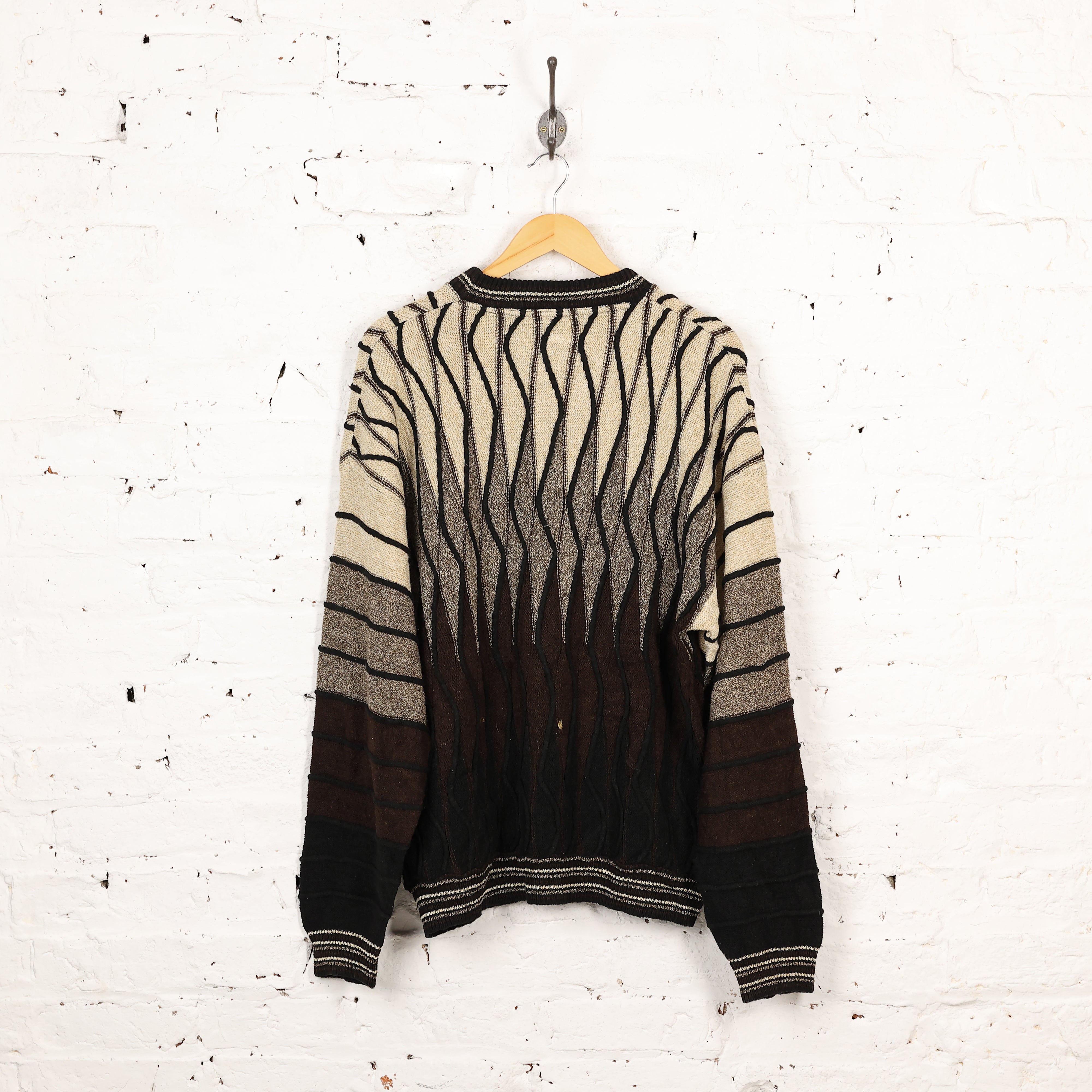 90s Texture Pattern Knit Jumper - Black/Beige - L