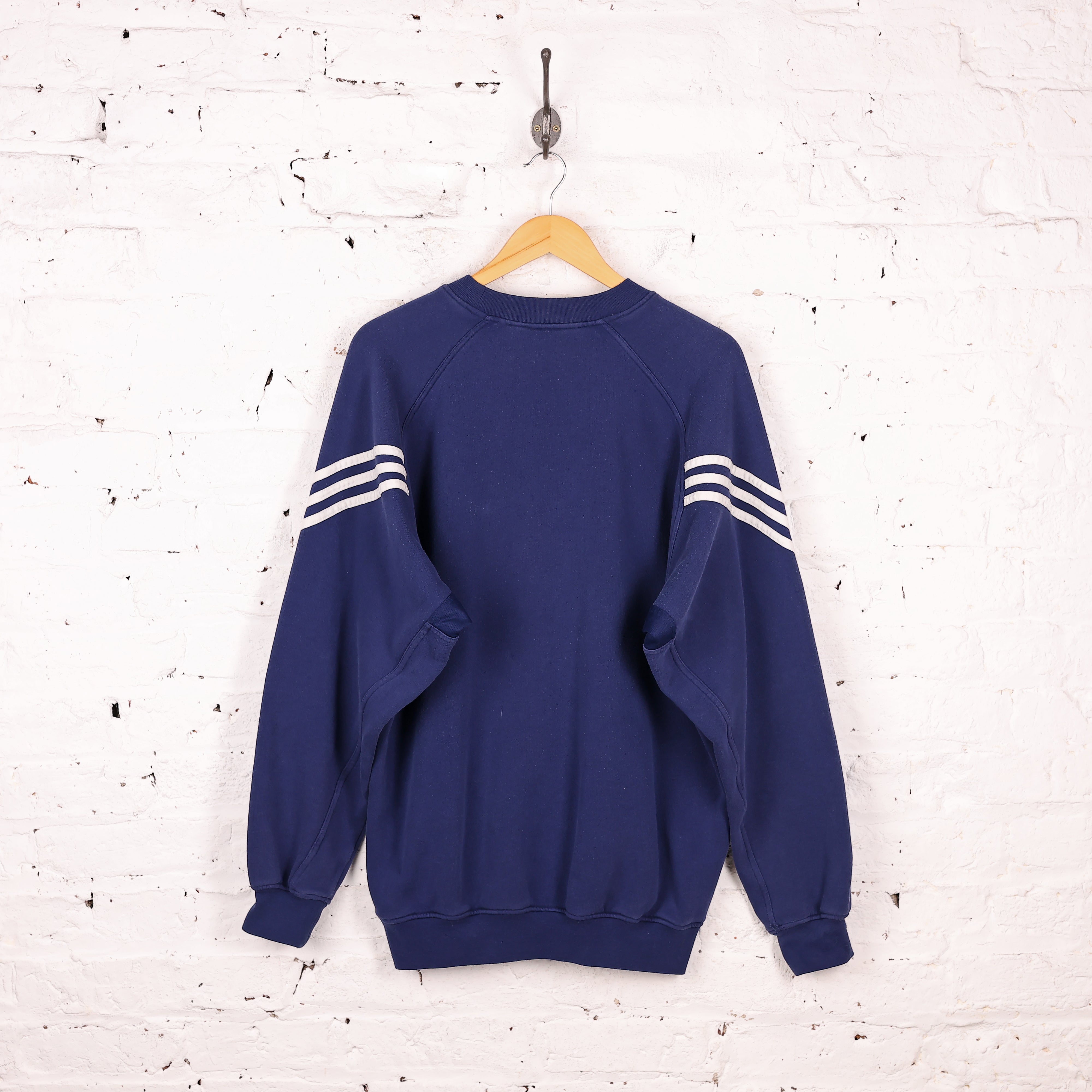 Good condition, some very small spot marks. Adidas sweatshirt with stitched white logo on the chest and three stripe on the arm.