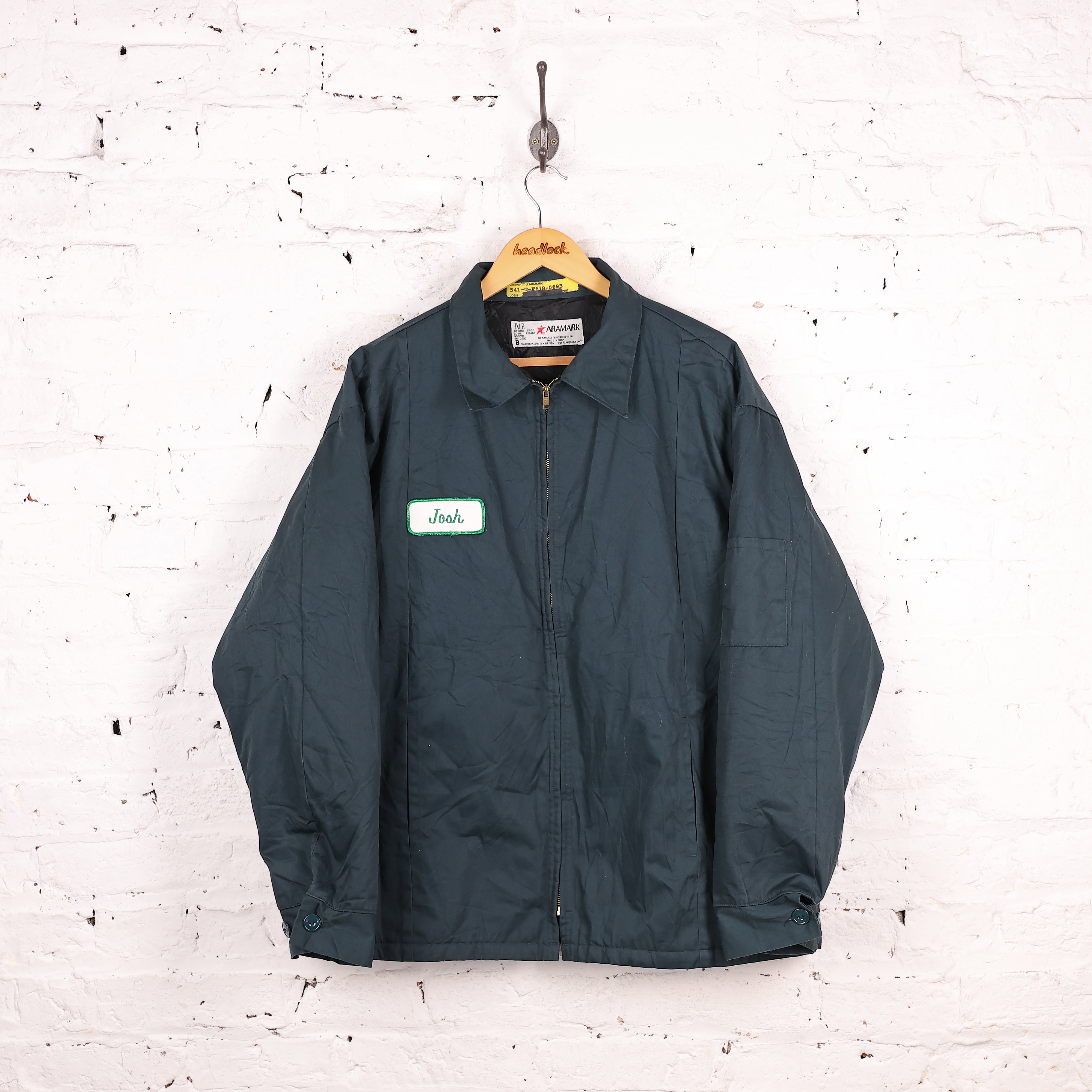 Good condition. Green American workers Gas Station style bomber jacket in green with two pockets, Josh name badge, zip fasten and quilted lining