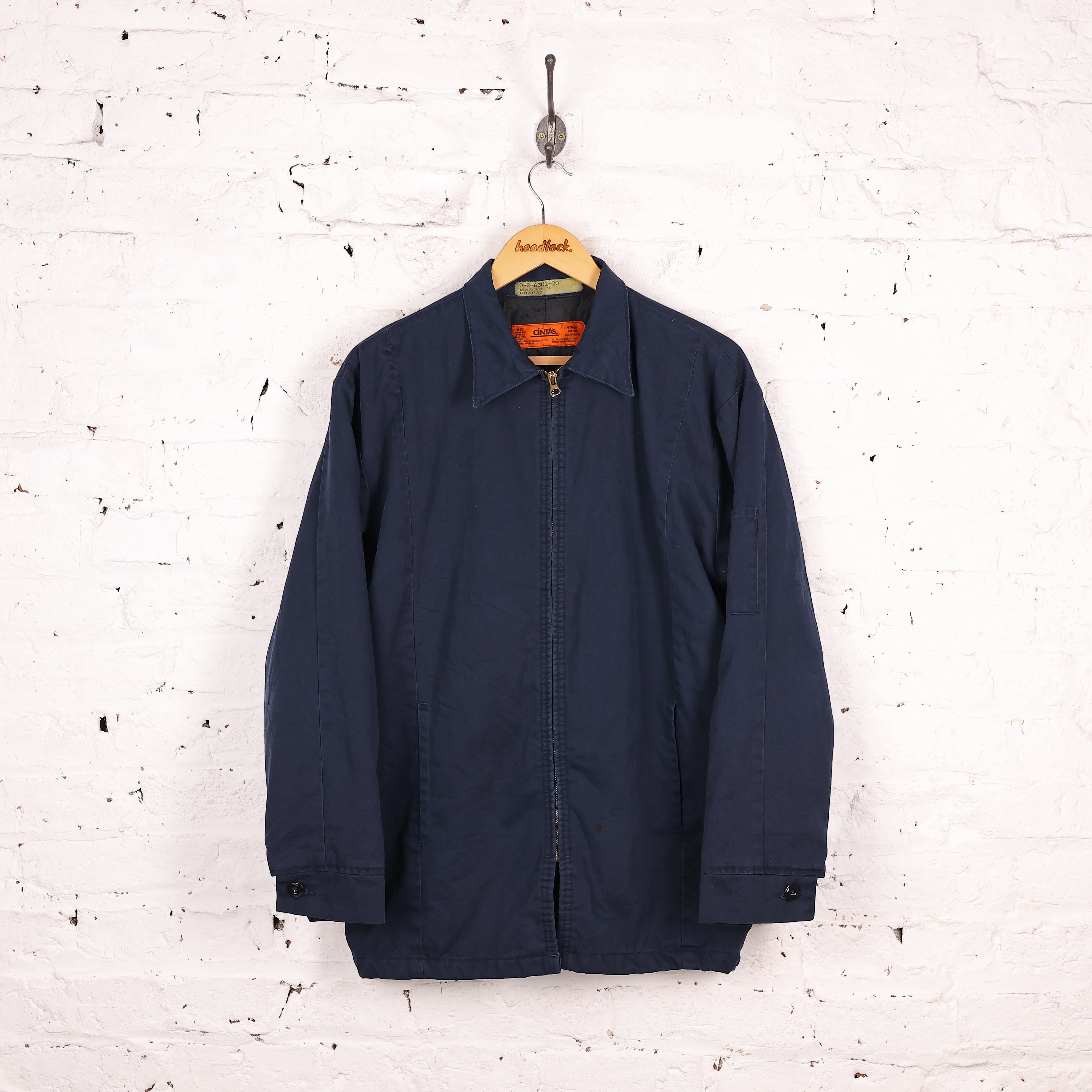 Good condition, faint red spot mark to the front. American work bomber jacket with two pockets, zip fasten and quilted lining.