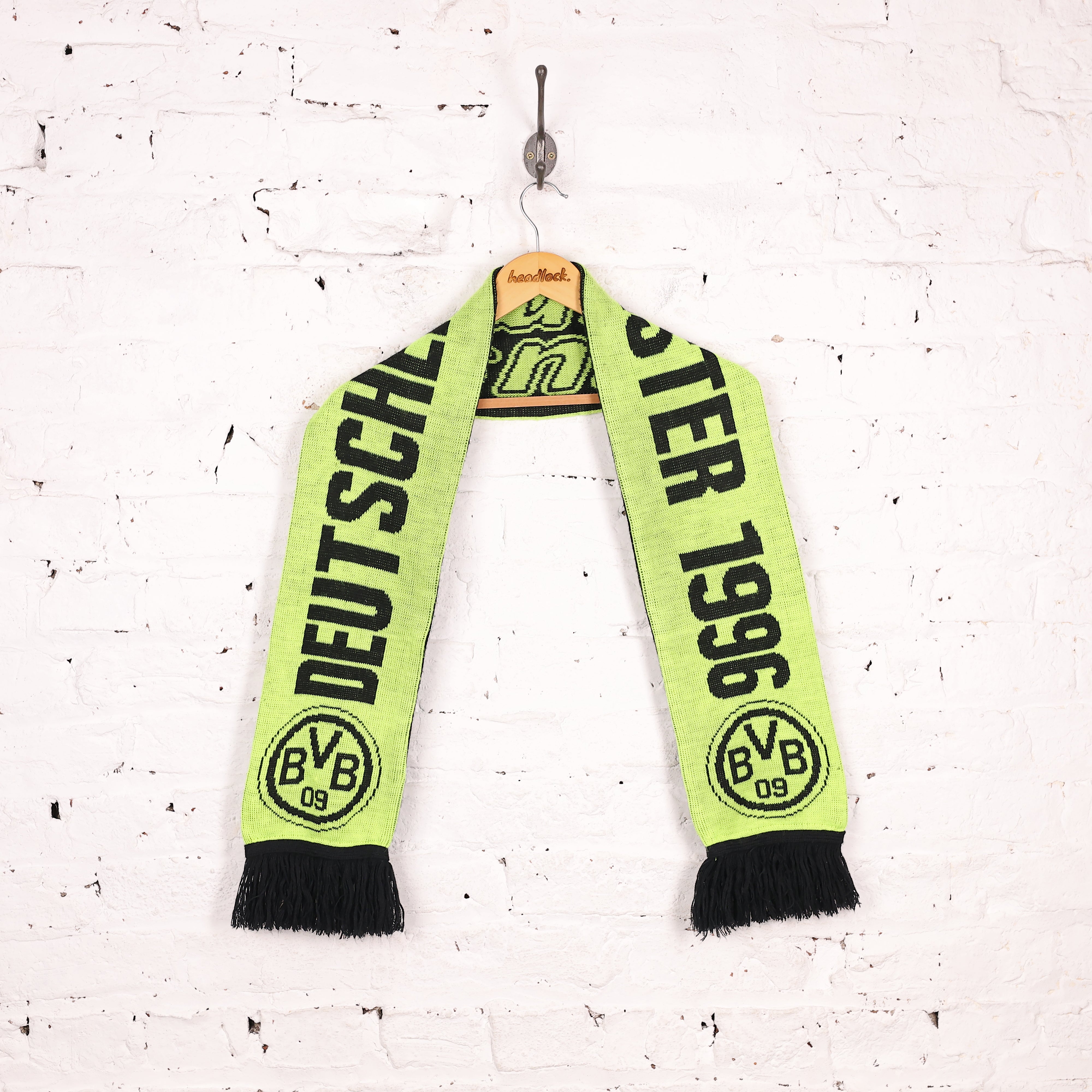 Good condition. Borussia Dortmund German champions football scarf from 1996 season in yellow and black colours with print-style text and club badge.