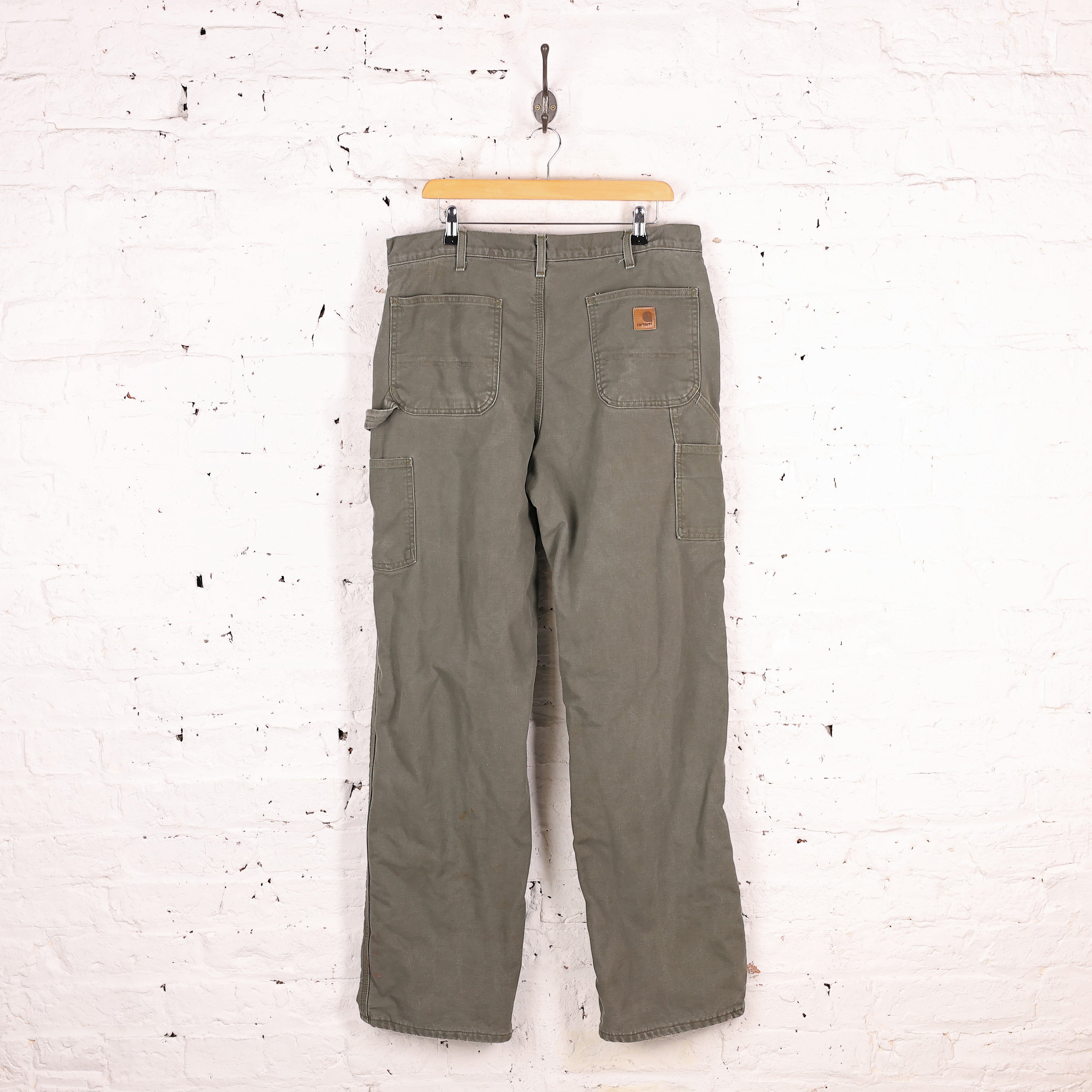Excellent condition. Carhartt work pants with check cotton inner lining, with hammer loop, leather tab on the back pocket and zip flies. Waist:36" Leg:34"