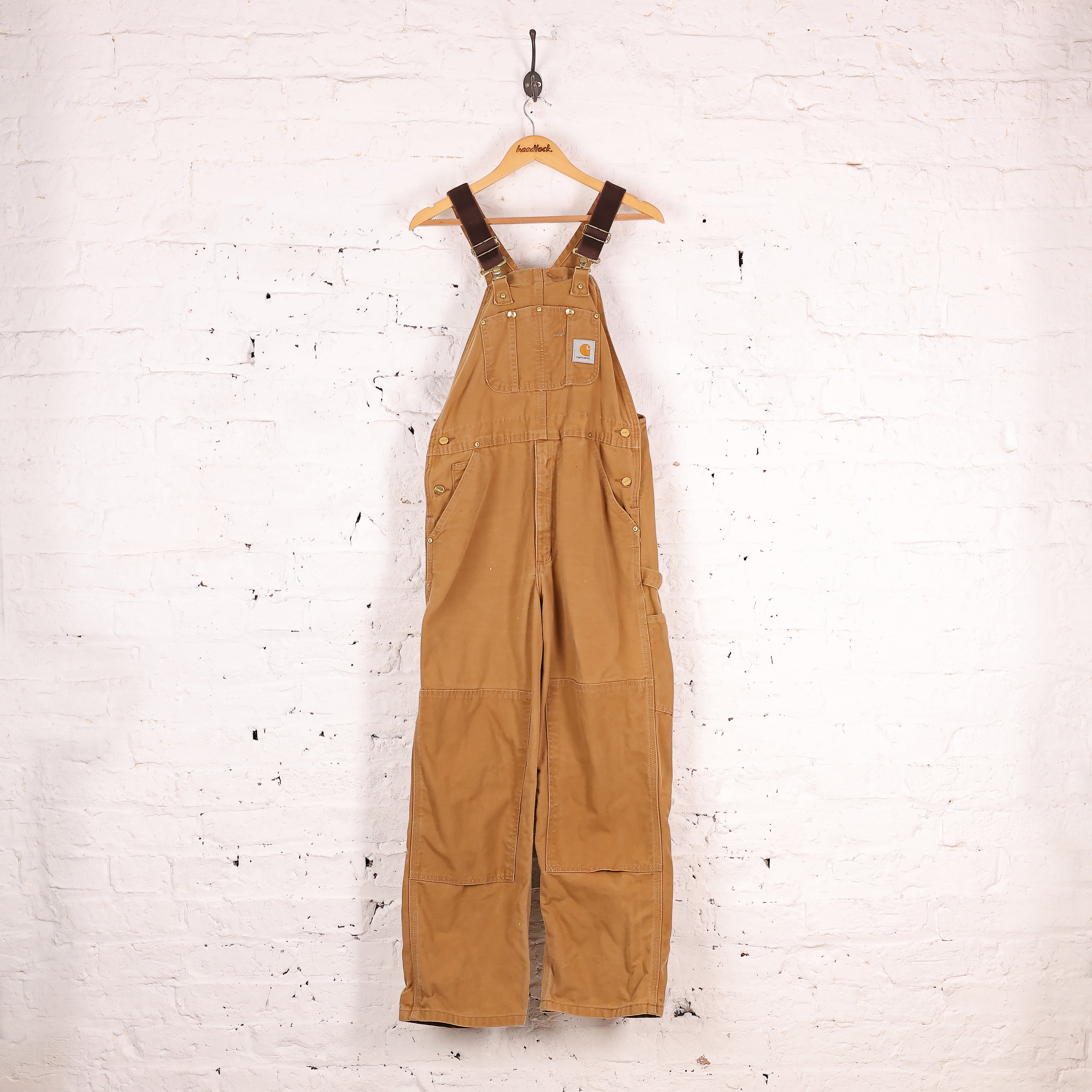 Excellent condition. Carhartt work dungarees in sand with adjustable straps, Carhartt tab logo and in double knee. Waist:34" Leg:30"