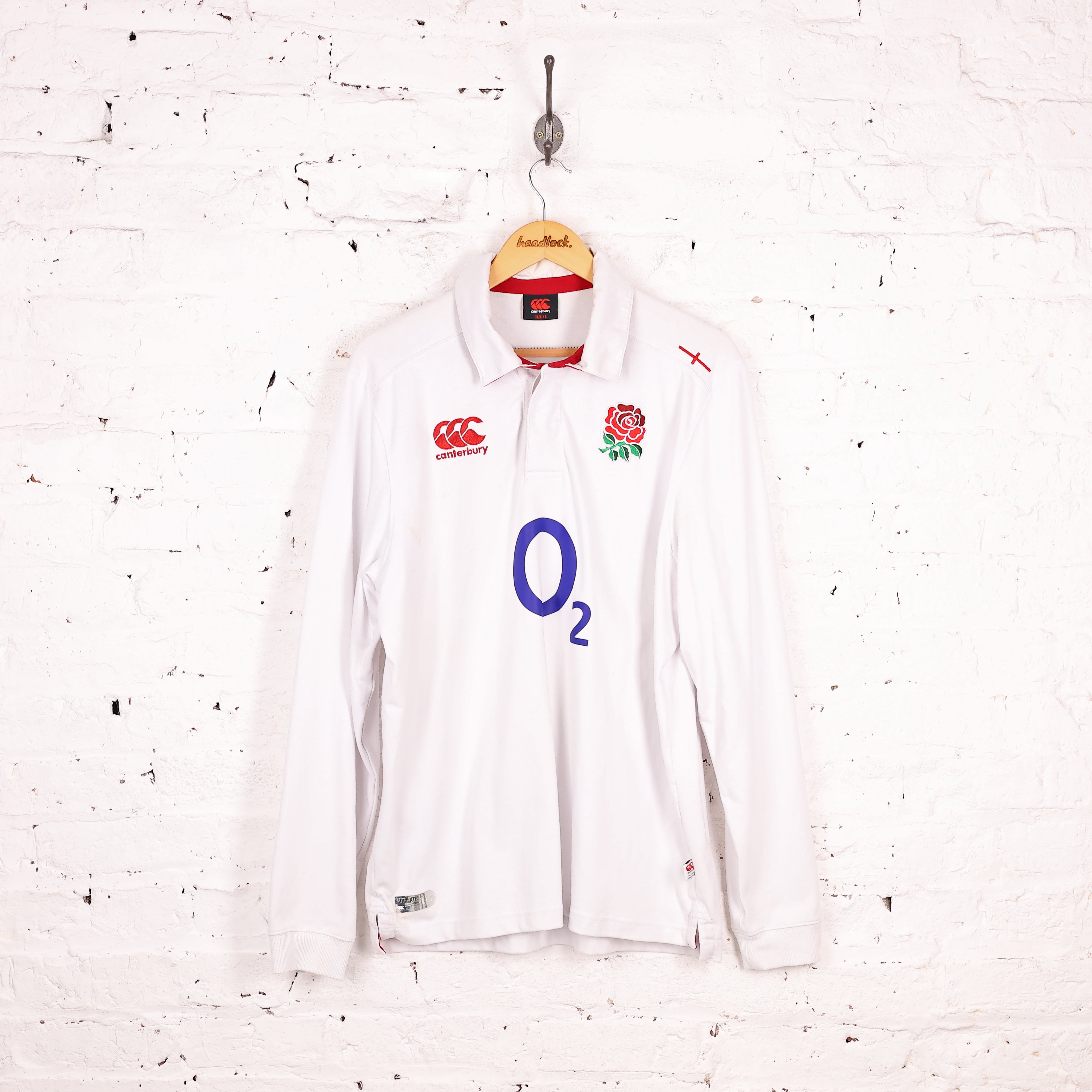 Good condition, some small marks. England home rugby shirt made by Canterbury in long sleeve with O2 sponsor from 2015