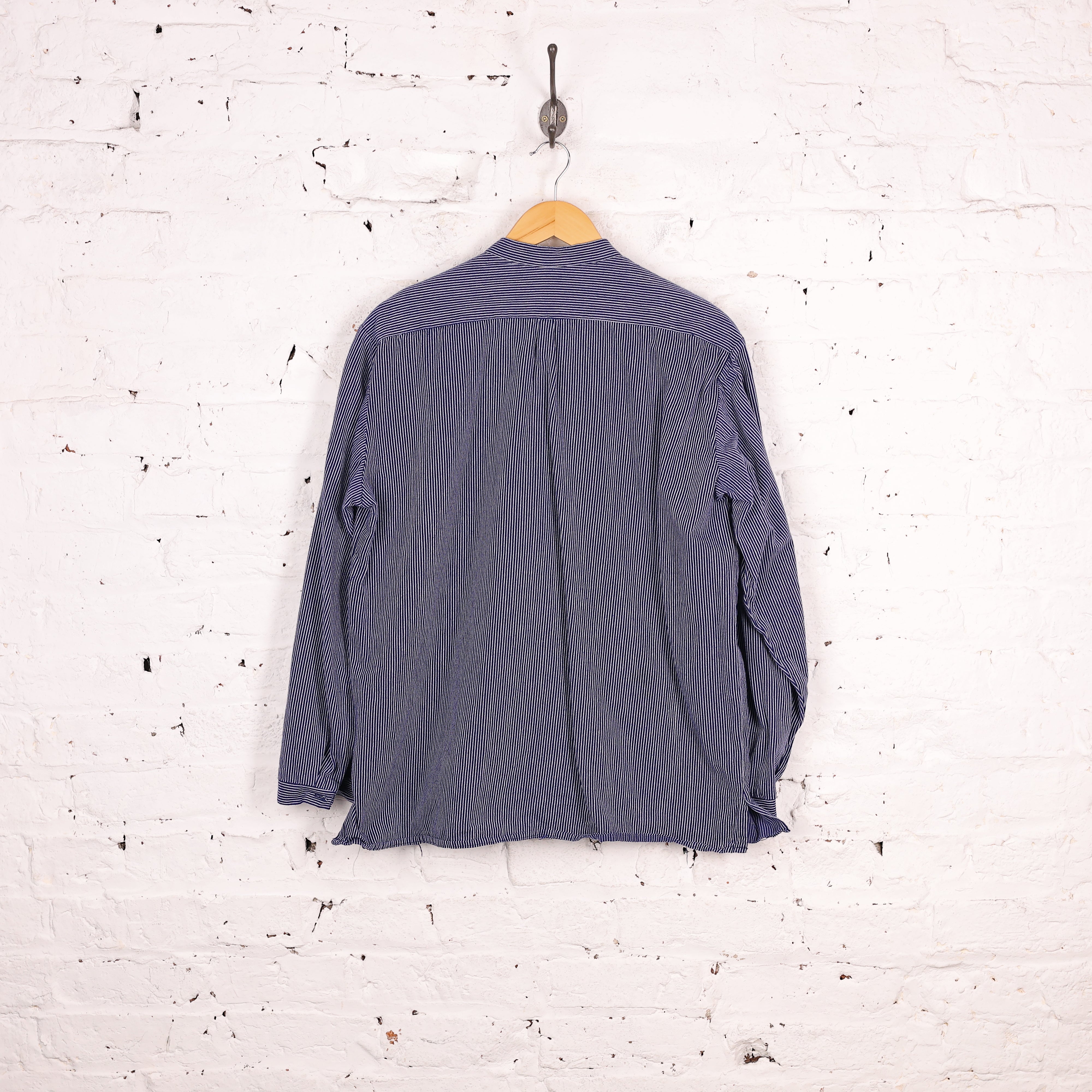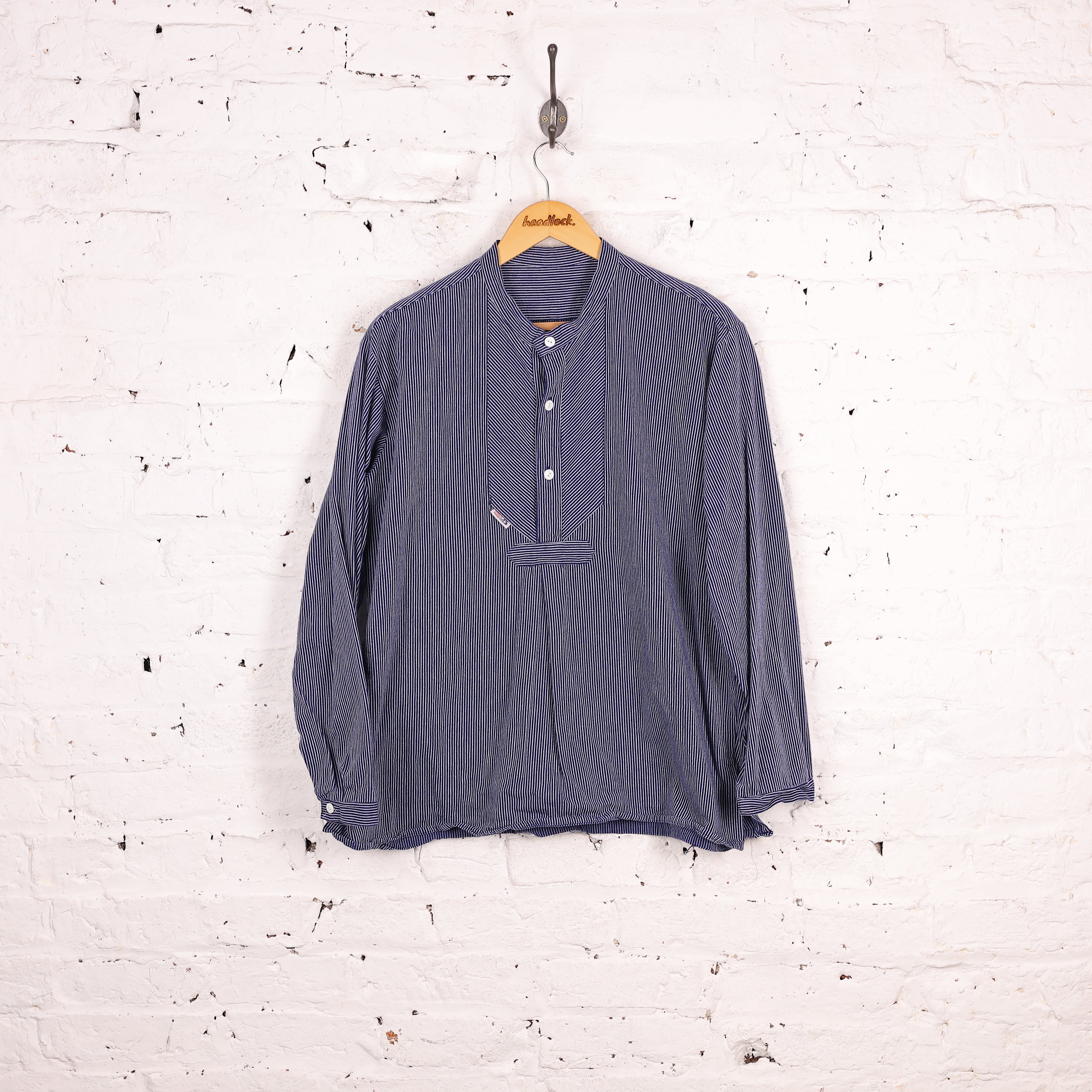 Fisherman Striped Grandad Collar Shirt - Blue - L