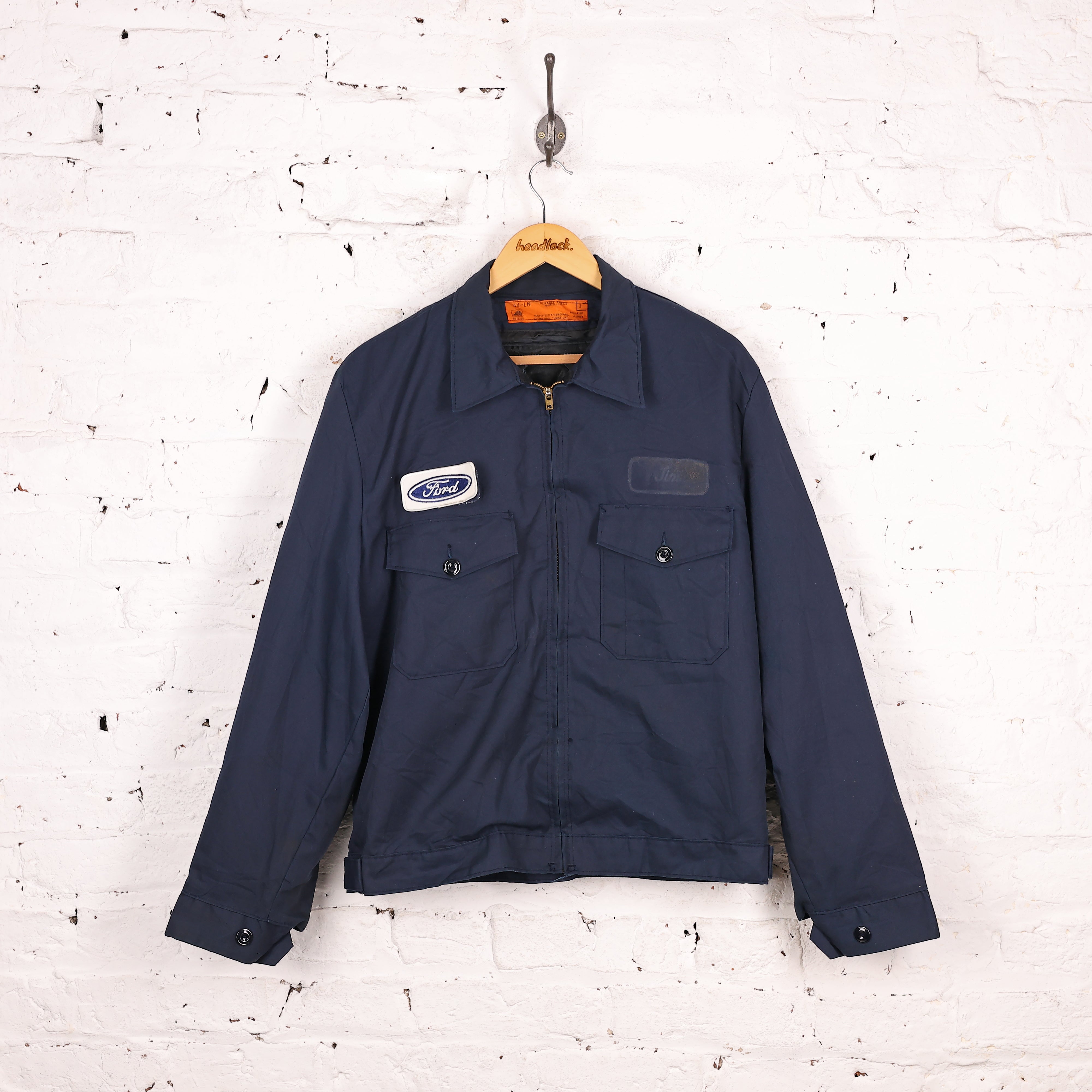 Good condition, badge peeling off slightly and slight mark where a badge has come off. American worker jacket in navy blue with two chest pocket and Ford workers badge.