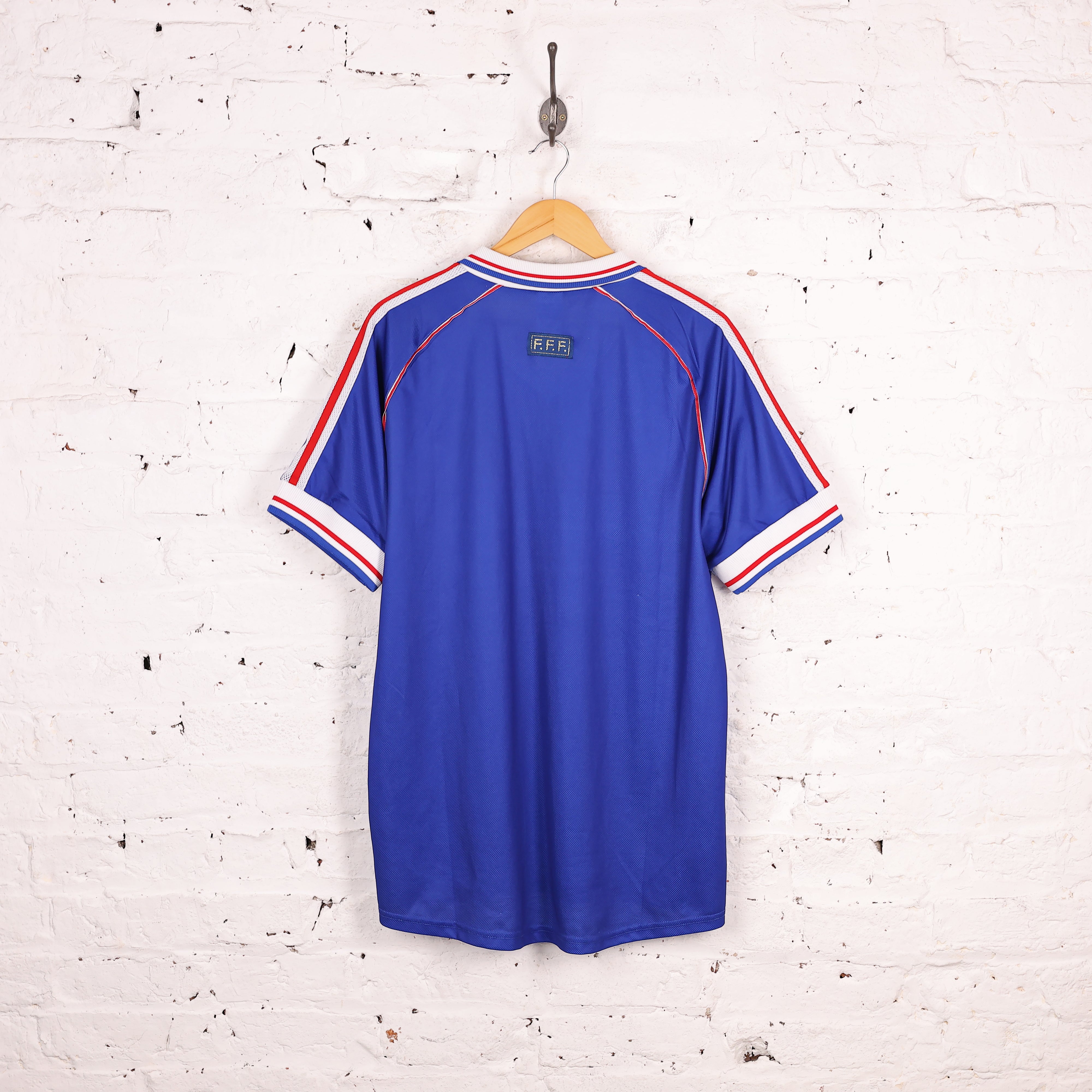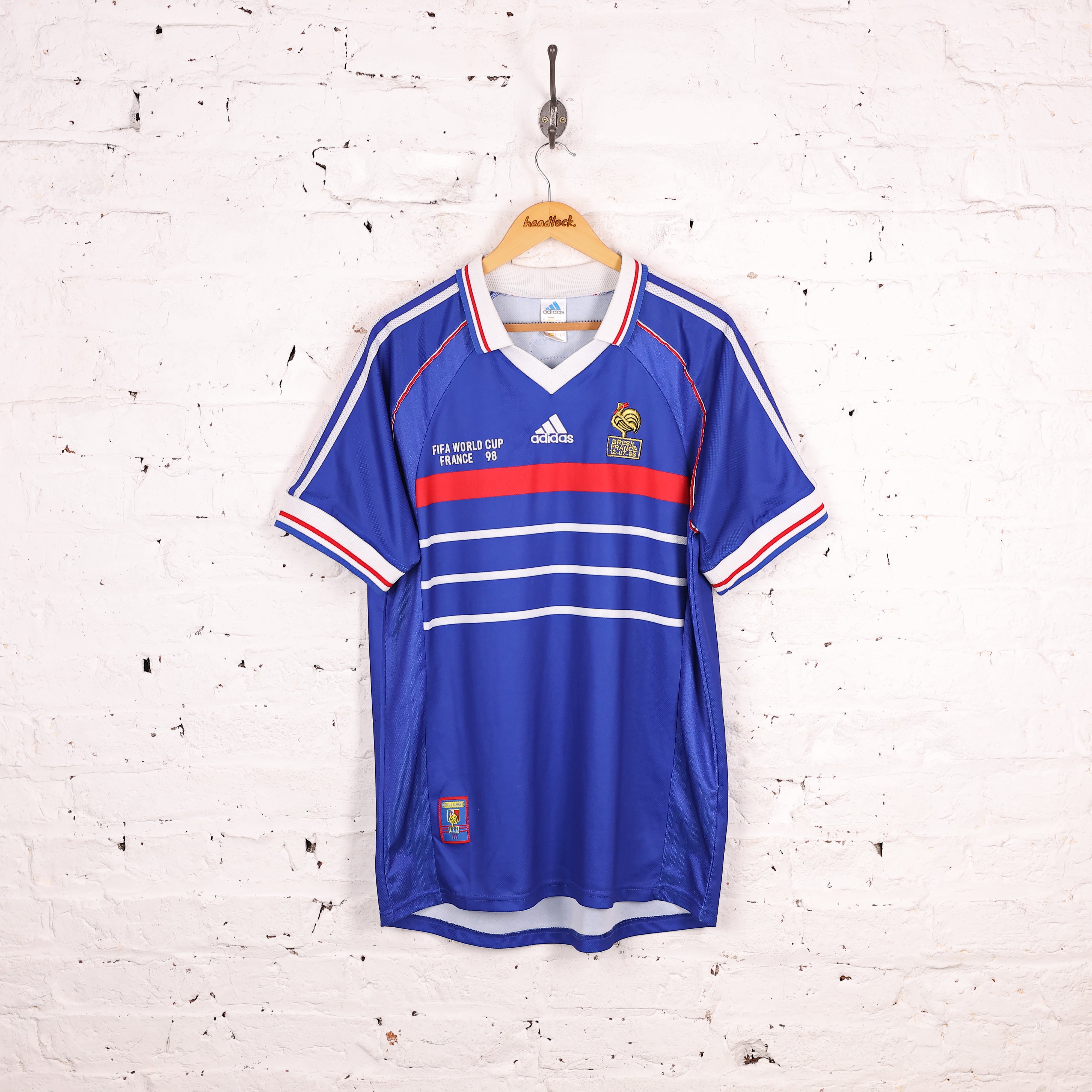 Excellent condition. France 1998 home football shirt in blue made by Adidas from FIFA World Cup 98, classic adidas shirt with the collar and stitched badges.