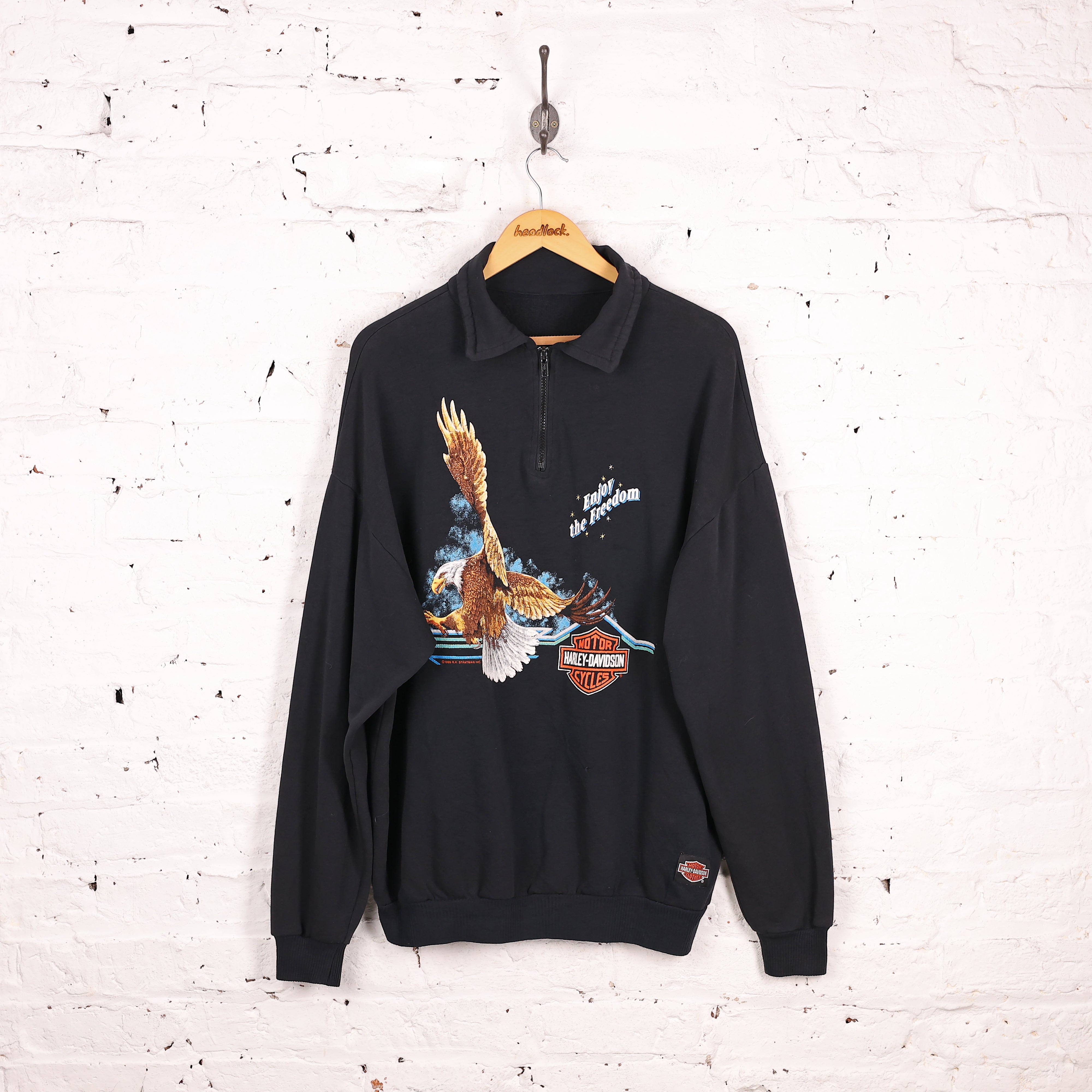 Harley Davidson 1990 Enjoy The Freedom 1/4 Zip Sweatshirt - Black - XL