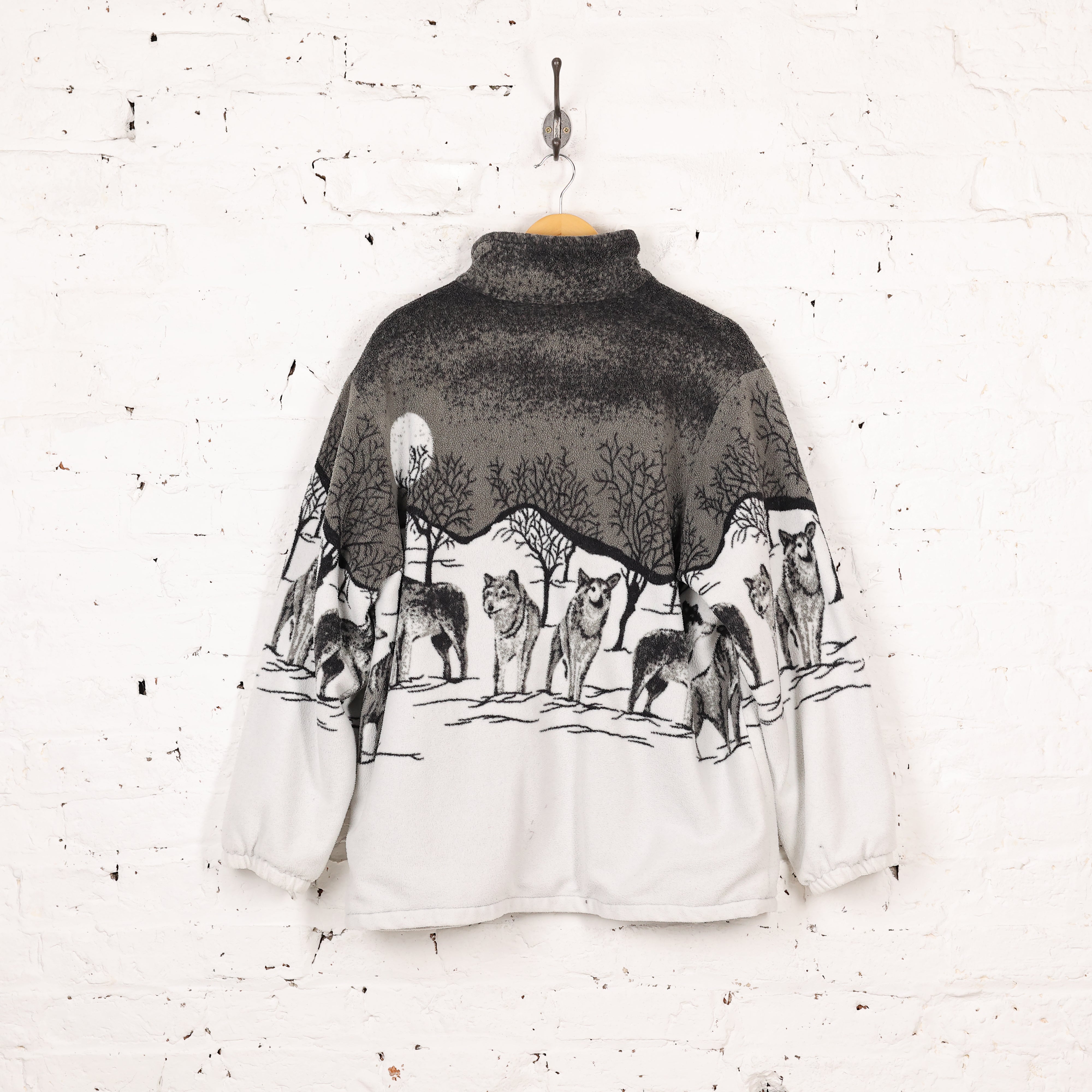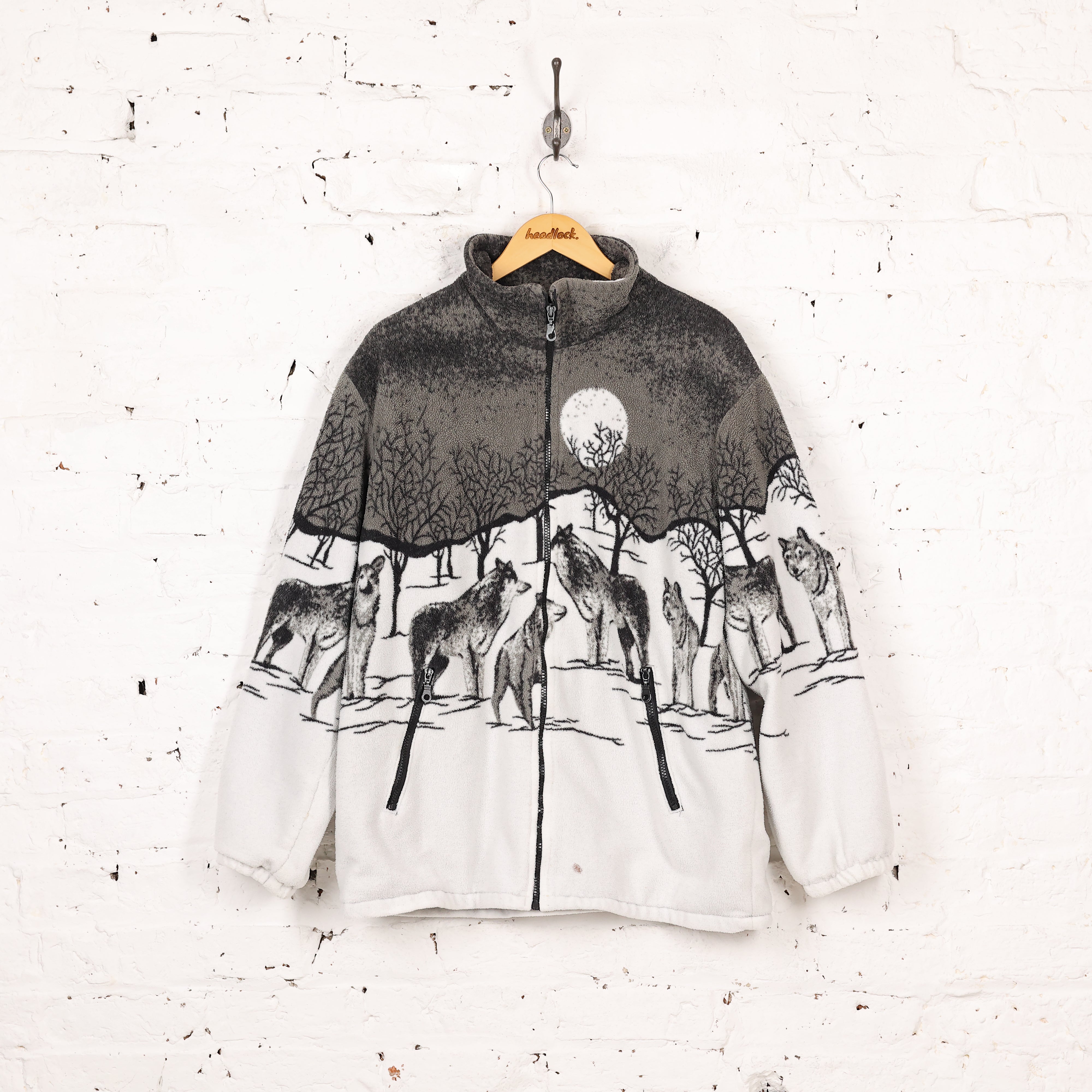 Good condition, small mark near the bottom. Wolf fleece with full zipper and two zip pockets